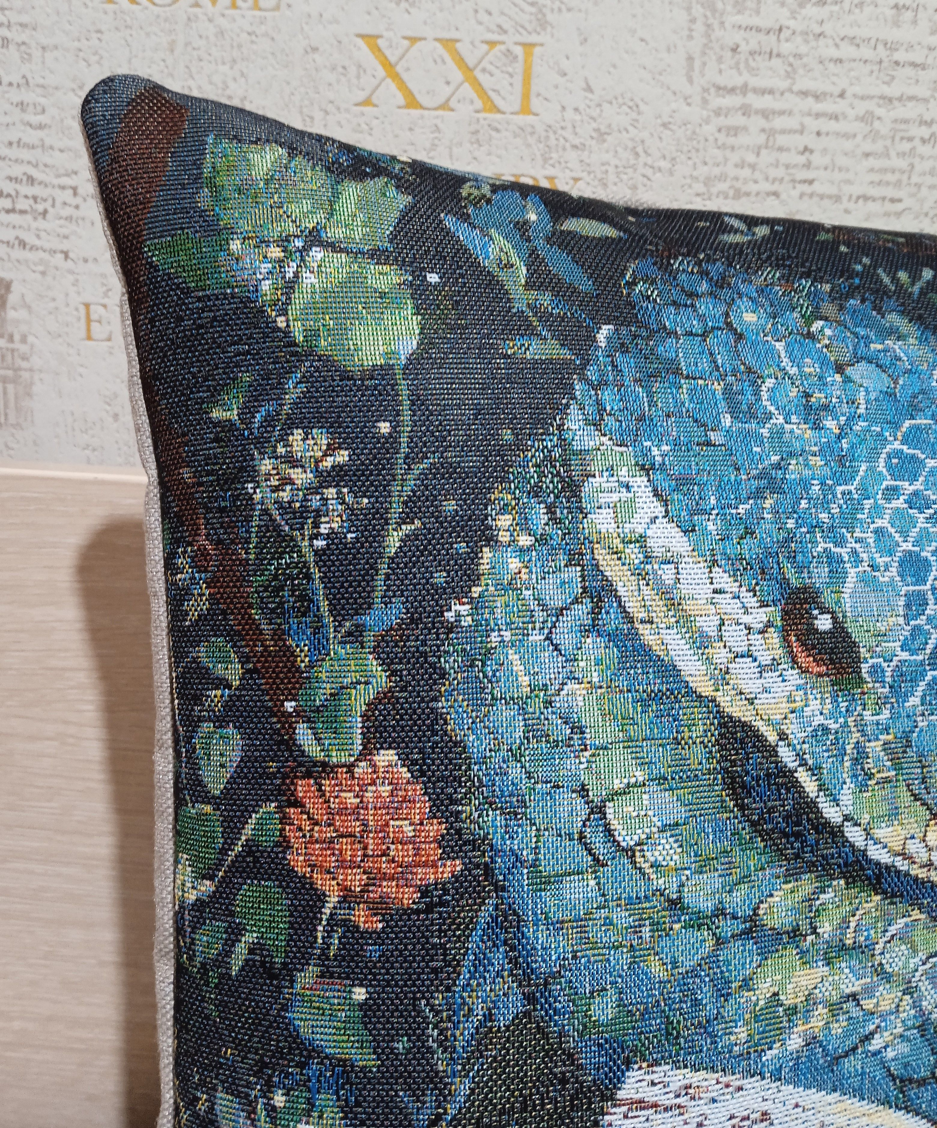Гобеленовая наволочка для декоративной подушки. Размер наволочки: 38x38см. производство Россия. Изделие собственного производства сшито из отечественной жаккардовой ткани. Задняя часть выполнена из мебельной рогожки так же Российского производства. Все ткани используемые для производства декоративной наволочки производятся с соблюдением ТУ и ГОСТ РФ. Собственное швейное производство позволяет контролировать качество продукции на всех этапах до поступления на склад и предлагать покупателям товары высокого качества по выгодным ценам. Состав ткани 100% полиэстер с добавлением люрекса. Плотность гобелена 380 г/кв.м. Наволочка подходит для подушек размером 40х40 см. Продается без подушки-наполнителя. Подушку-наполнитель так же можно купит у нас. Размер наволочки может отличаться от заявленного +/- 2 см. Допускается деликатная машинная стирка при температуре 30 градусов. Гладить при средней температуре.