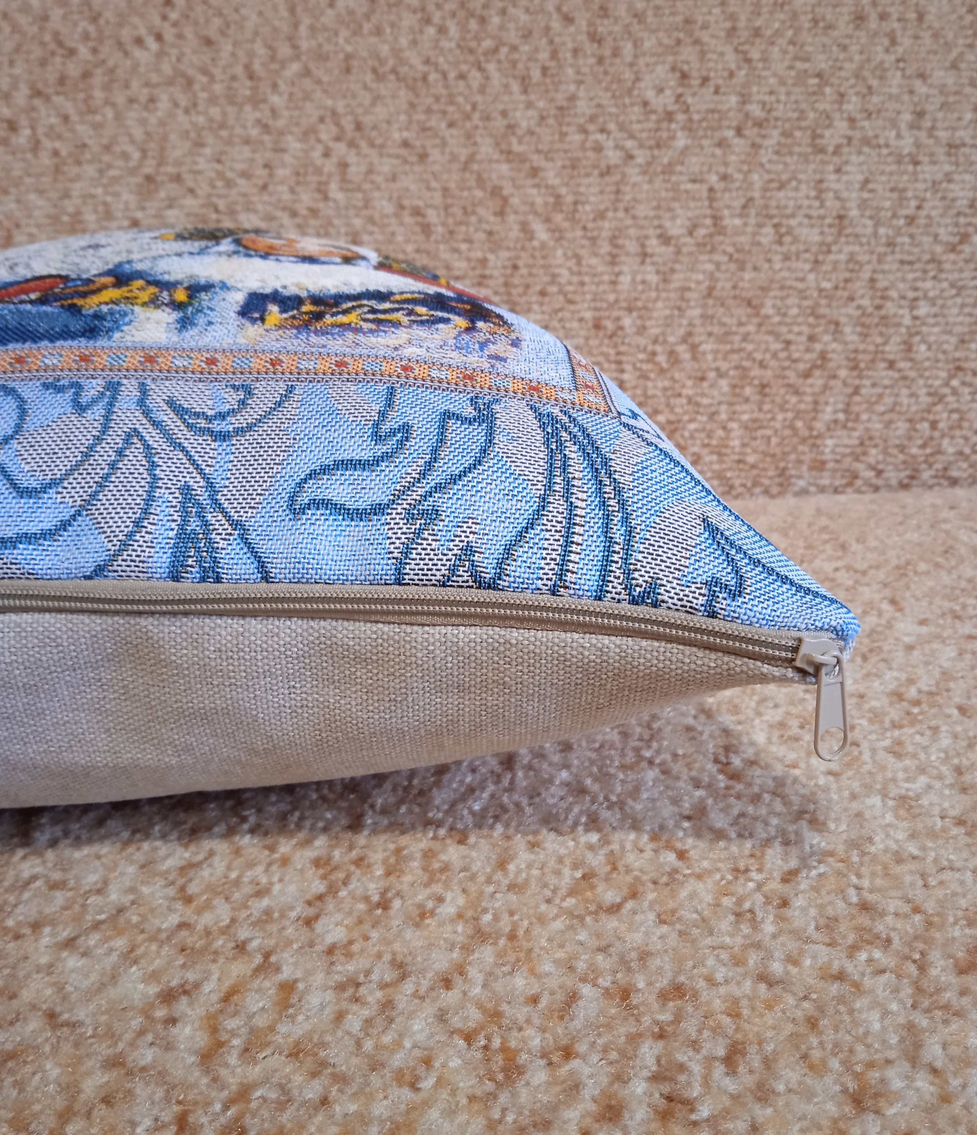 Гобеленовая наволочка для декоративной подушки. Размер наволочки: 38x38см. производство Россия. Изделие собственного производства сшито из отечественной жаккардовой ткани. Задняя часть выполнена из мебельной рогожки так же Российского производства. Все ткани используемые для производства декоративной наволочки производятся с соблюдением ТУ и ГОСТ РФ. Собственное швейное производство позволяет контролировать качество продукции на всех этапах до поступления на склад и предлагать покупателям товары высокого качества по выгодным ценам. Состав ткани 100% полиэстер. Плотность гобелена 380 г/кв.м. Наволочка подходит для подушек размером 40х40 см. Продается без подушки-наполнителя. Подушку-наполнитель так же можно купит у нас. Размер наволочки может отличаться от заявленного +/- 2 см. Допускается деликатная машинная стирка при температуре 30 градусов. Гладить при средней температуре.