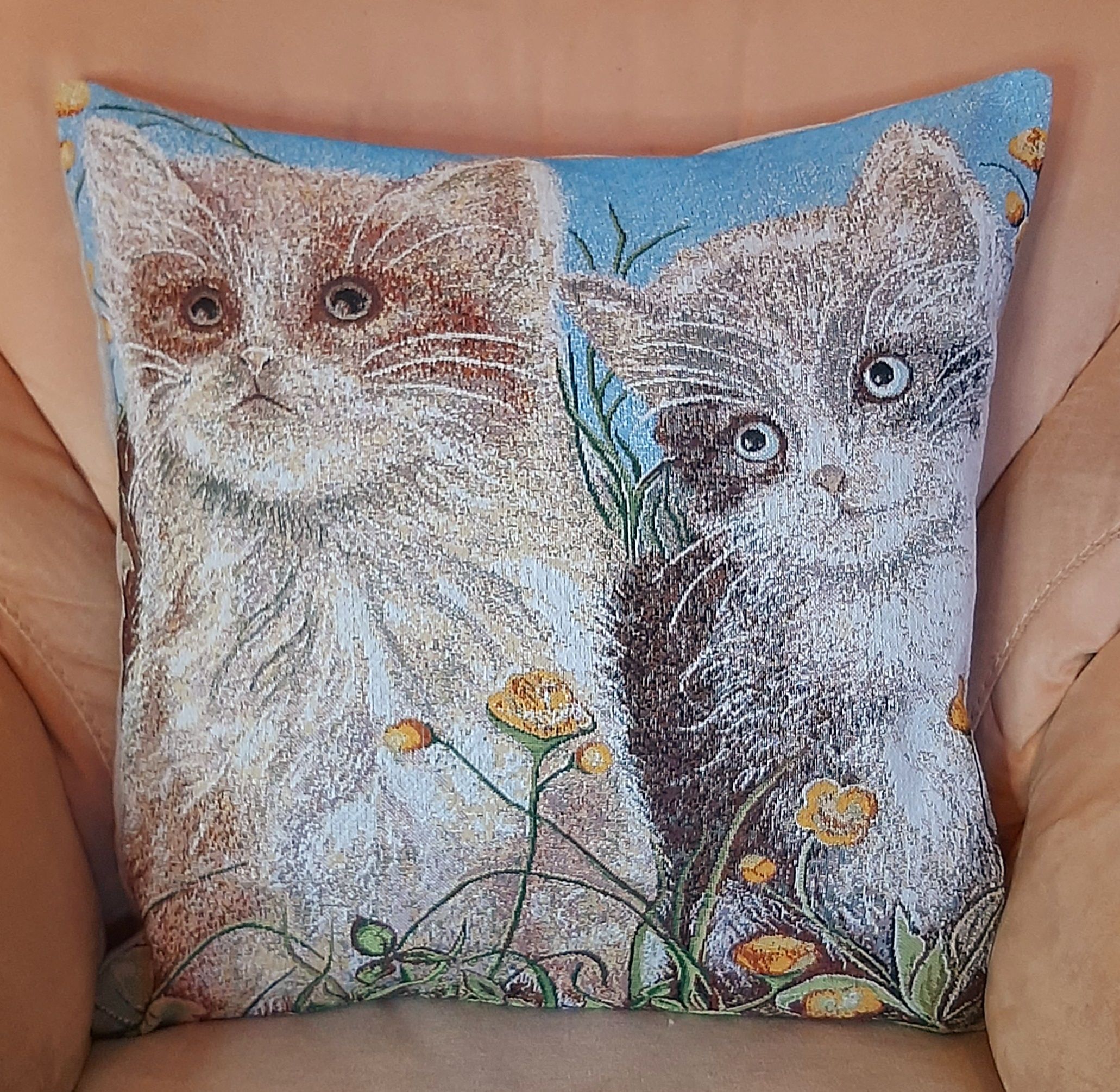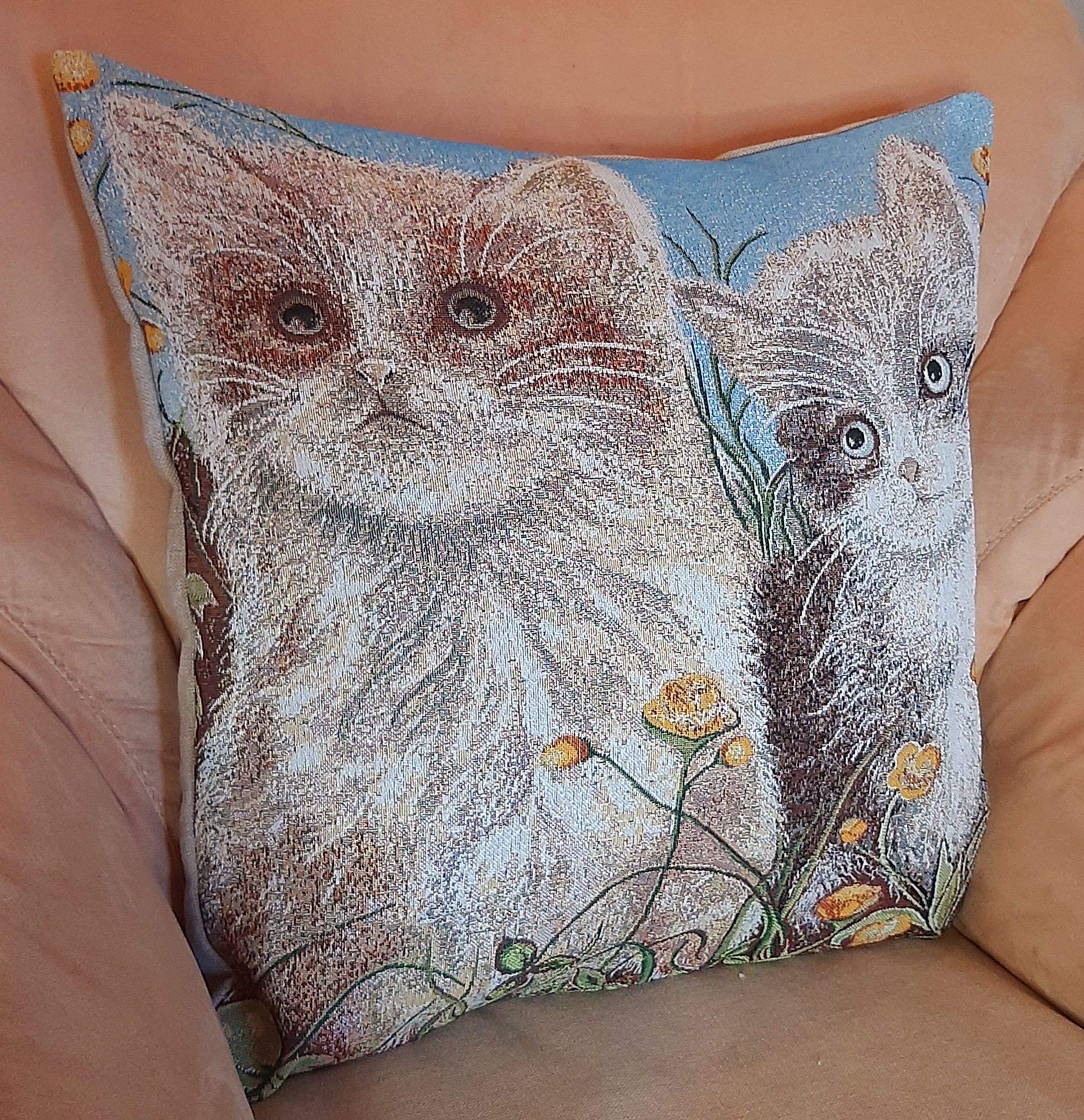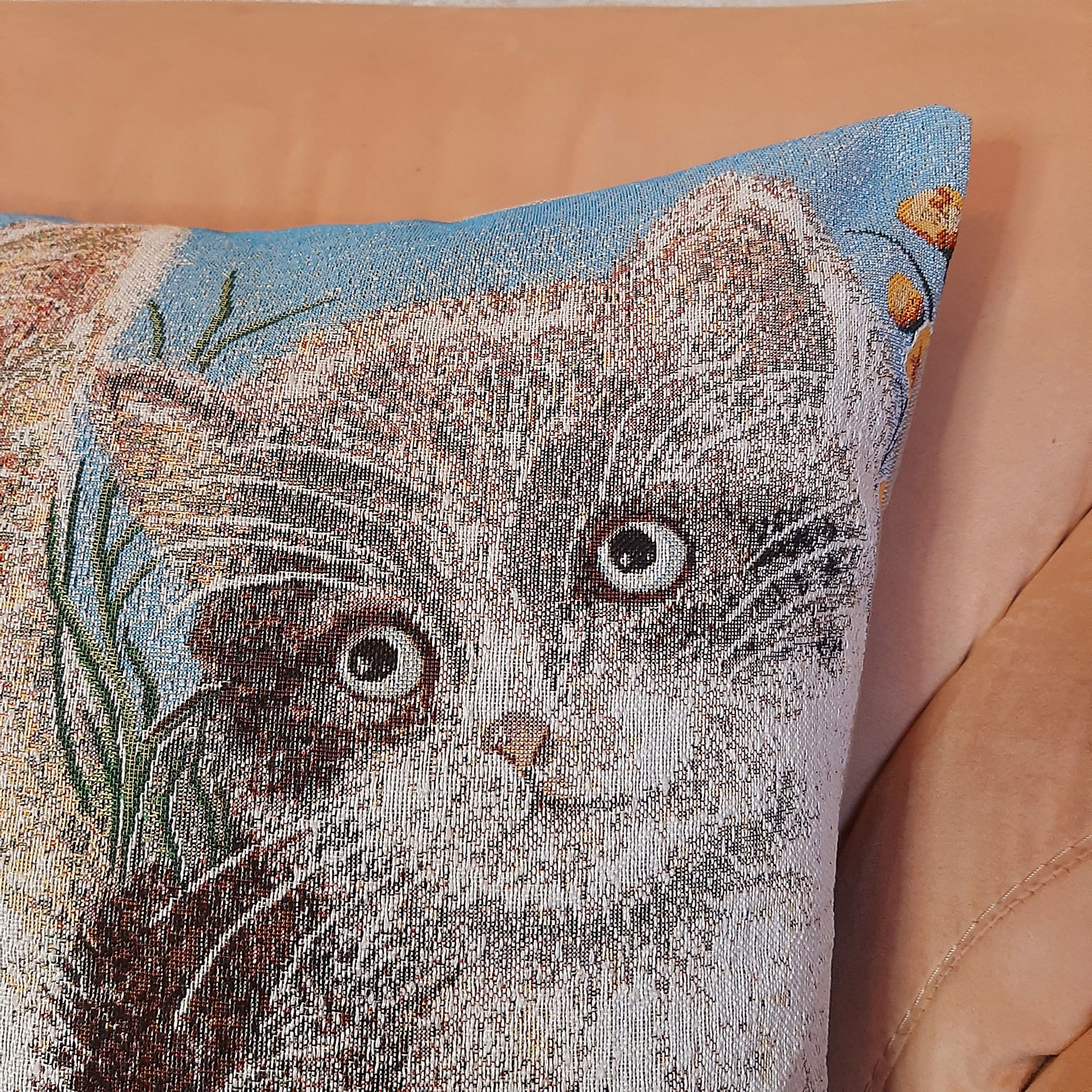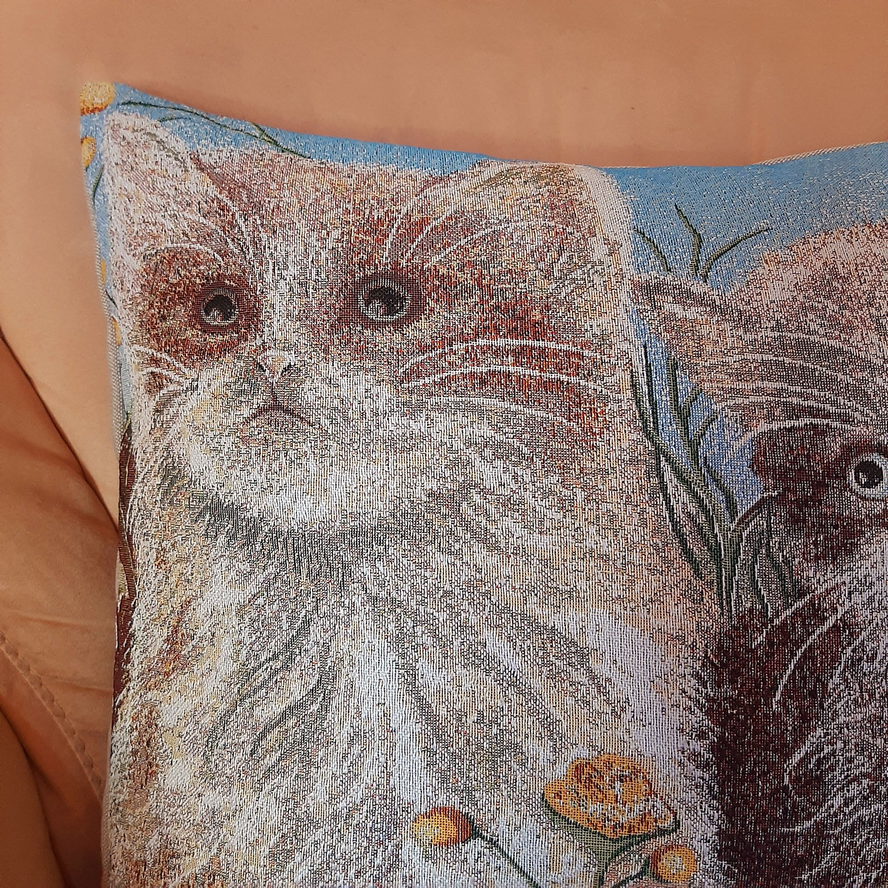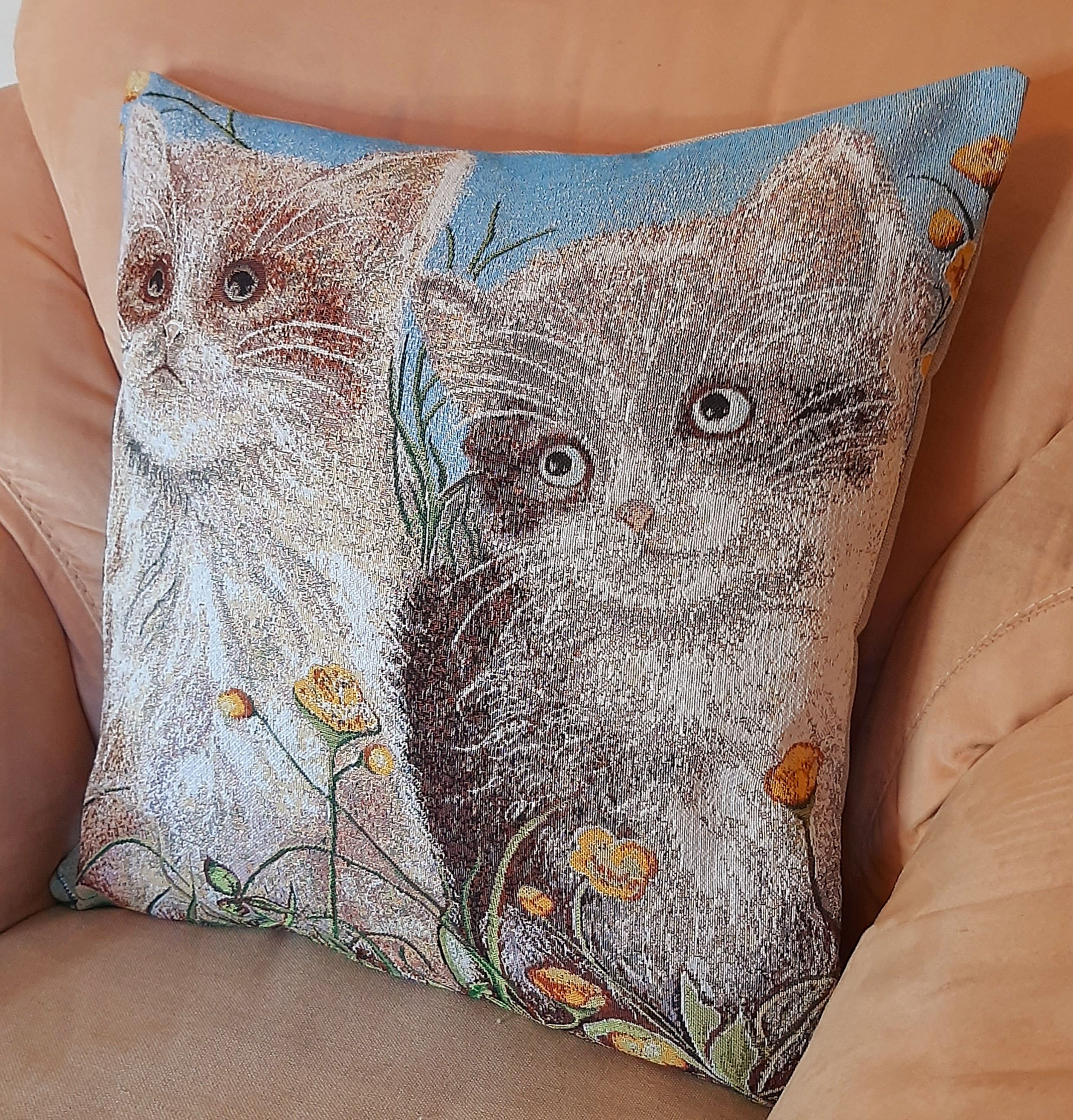 Гобеленовая декоративная наволочка с изображением двух котят подойдет для оформления домашнего интерьера в Новогодние праздники. Можно использовать для украшения гостиной, спальни, детской комнаты, кафе, отеля, гостиницы. Можно использовать как дополнительные подушки на диван, кресло, кровать, дачная лавка на веранде. Отличный подарок или сувенир для родных и близких, друзей, коллег по работе, маме, бабушке, теще, тете, сестре, сослуживцам на новый год, новоселье, день рождения, корпоративный подарок, 8 марта.
