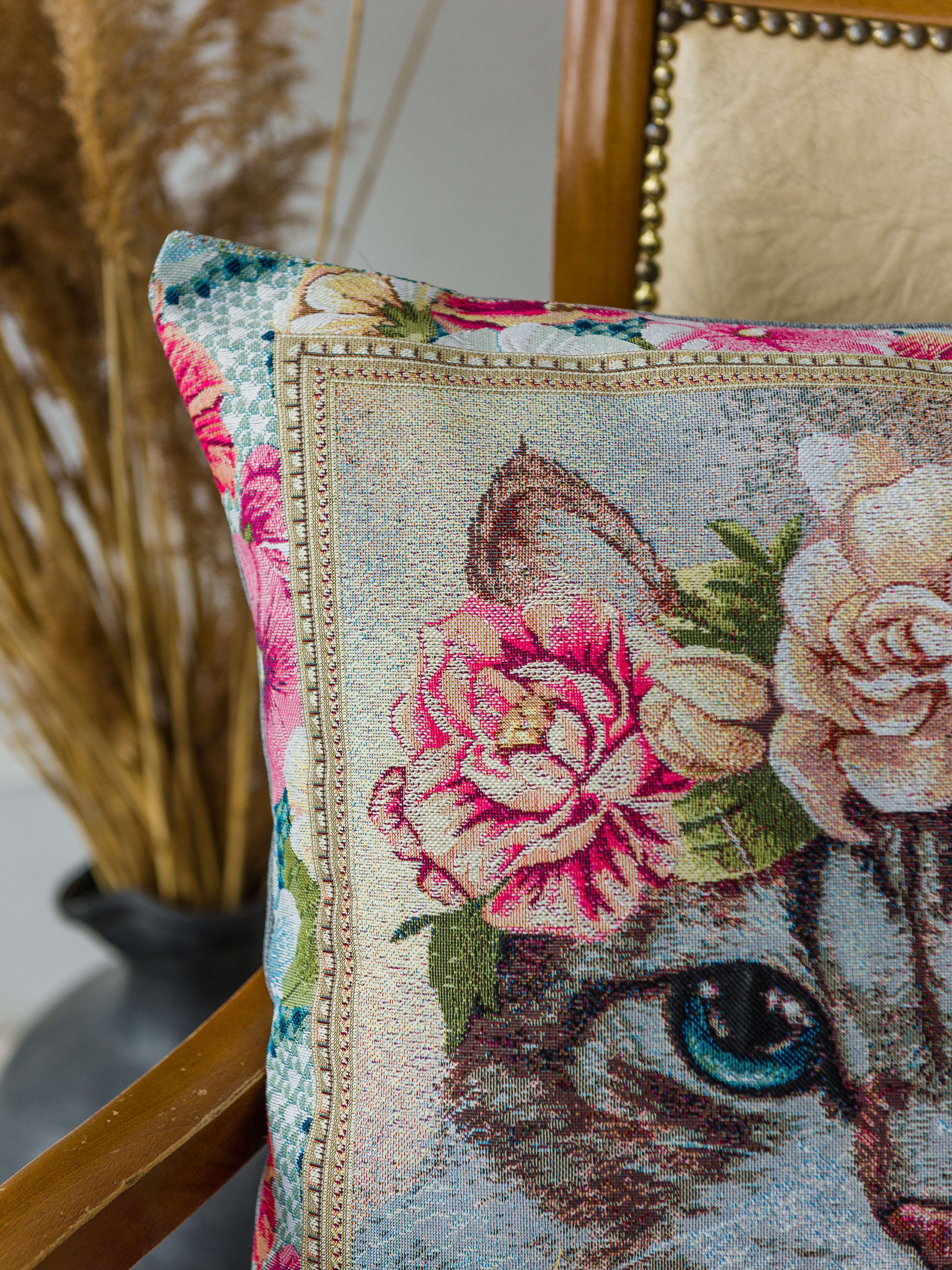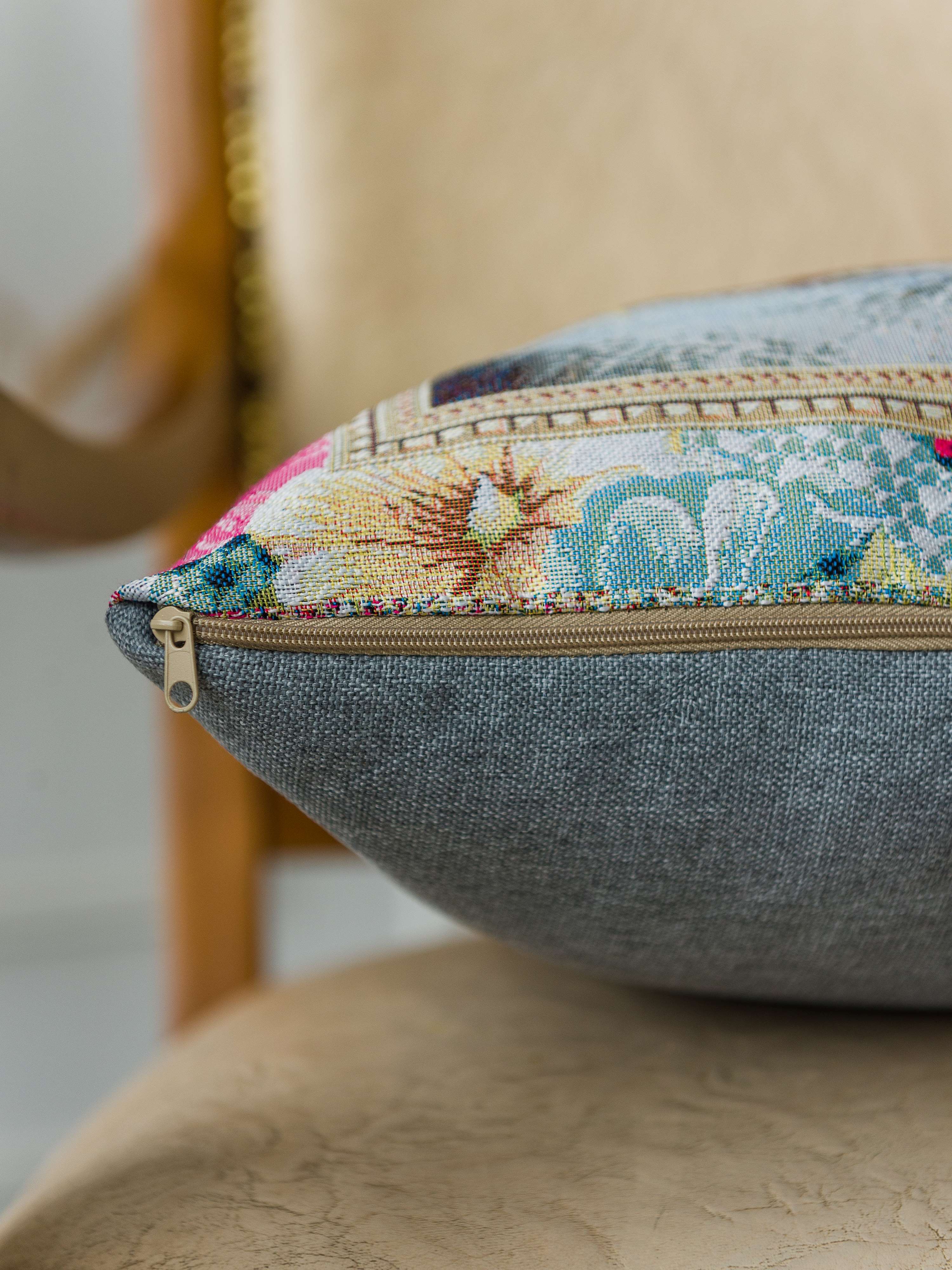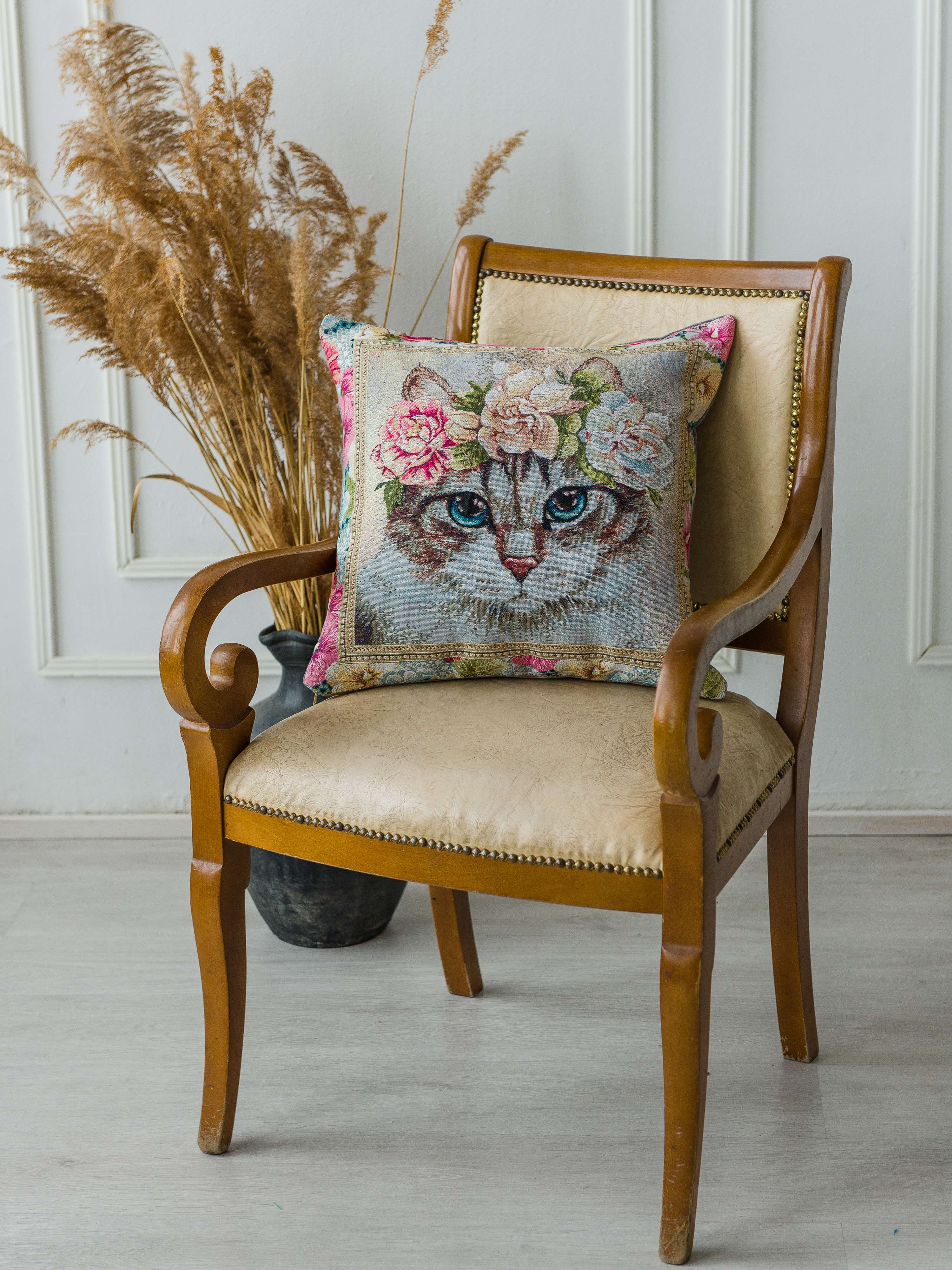 Гобеленовый чехол для декоративной подушки. Размер чехла: 47x47см. производство Россия. Изделие собственного производства сшито из отечественной жаккардовой ткани. Задняя часть выполнена из мебельной рогожки так же Российского производства. Все ткани используемые для производства декоративного чехла производятся с соблюдением ТУ и ГОСТ Р.Ф. Собственное швейное производство позволяет контролировать качество продукции на всех этапах до поступления на склад и предлагать покупателям товары высокого качества по выгодным ценам. Состав ткани 100% полиэстер. Плотность гобелена 380 г/кв.м. Чехол подходит для подушек размером от 45 до 50 см. Продается без подушки-наполнителя. Подушку-наполнитель так же можно купит у нас. Размер чехла может отличаться от заявленного +/- 2 см. Допускается деликатная машинная стирка при температуре 30 градусов. Гладить при средней температуре.