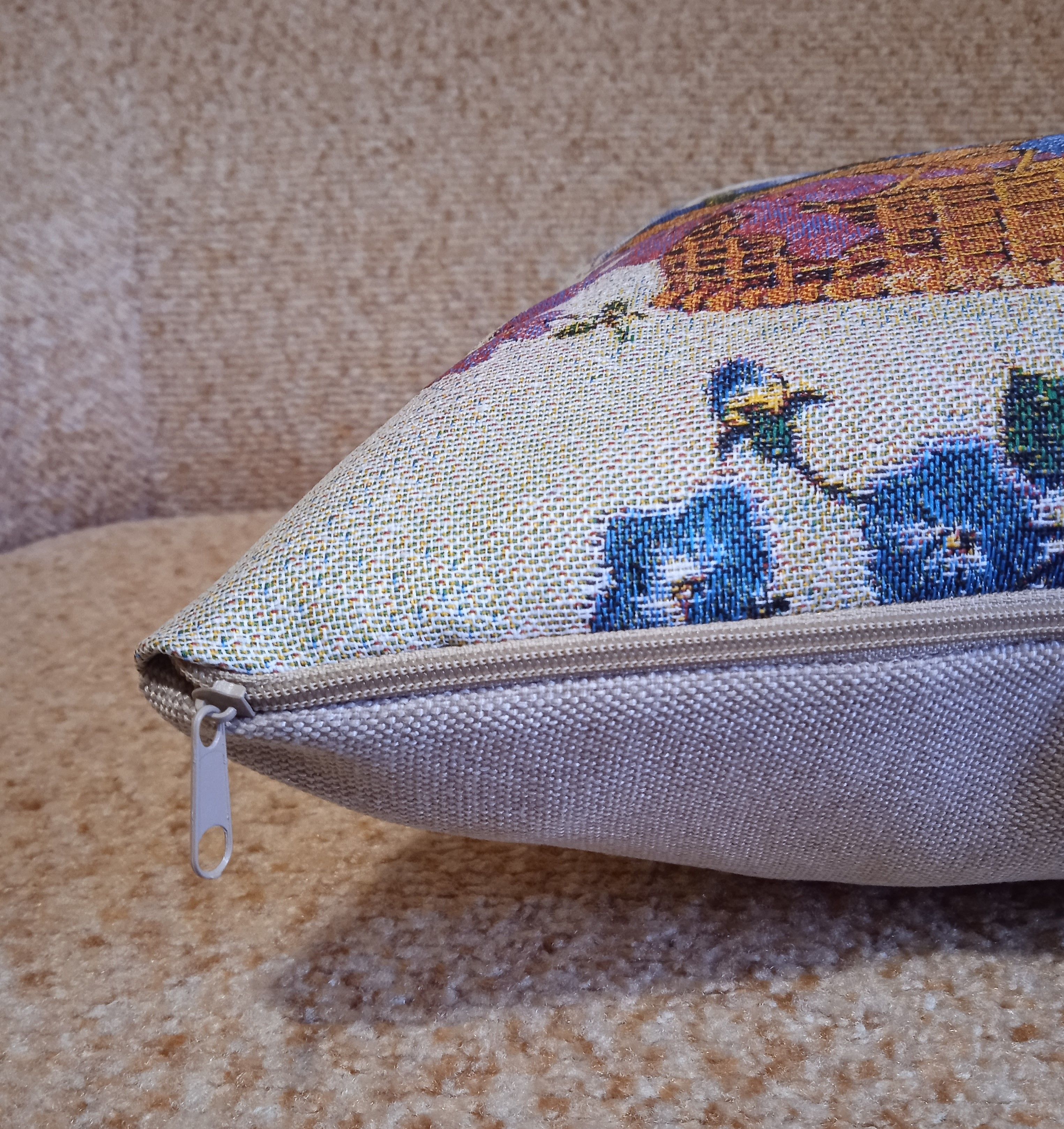 Гобеленовая наволочка для декоративной подушки. Размер наволочки: 38x38см. производство Россия. Изделие собственного производства сшито из отечественной жаккардовой ткани. Задняя часть выполнена из мебельной рогожки так же Российского производства. Все ткани используемые для производства декоративной наволочки производятся с соблюдением ТУ и ГОСТ РФ. Собственное швейное производство позволяет контролировать качество продукции на всех этапах до поступления на склад и предлагать покупателям товары высокого качества по выгодным ценам. Состав гобелена: 100% полиэстер. Плотность гобелена 340 г/кв.м. Наволочка подходит для подушек размером 40х40 см. Продается без подушки-наполнителя. Подушку-наполнитель так же можно купит у нас. Размер наволочки может отличаться от заявленного +/- 2 см. Допускается деликатная машинная стирка при температуре 30 градусов. Гладить при средней температуре.