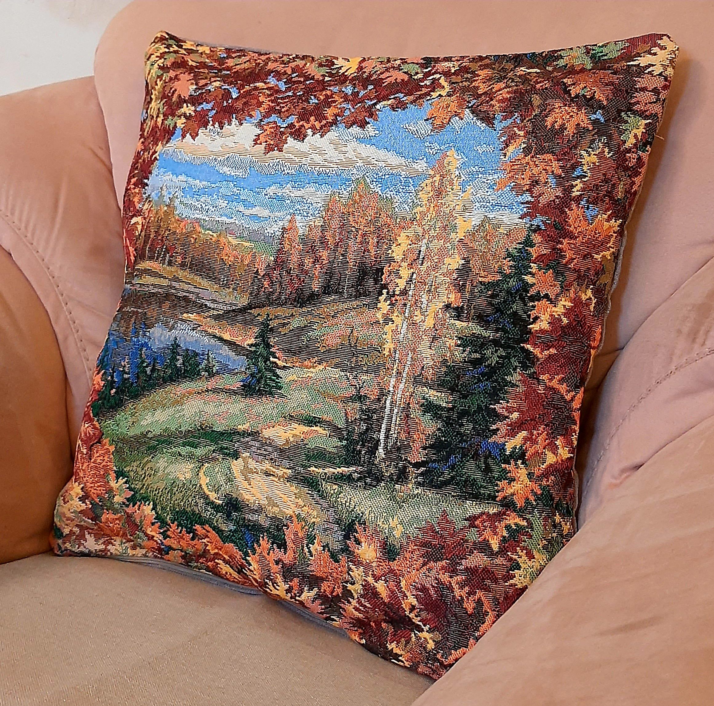 Гобеленовая декоративная наволочка с изображением пейзажа с Кленами подойдет для оформления домашнего интерьера в Новогодние праздники. Можно использовать для украшения гостиной, спальни, детской комнаты, кафе, отеля, гостиницы. Можно использовать как дополнительные подушки на диван, кресло, кровать, дачная лавка на веранде. Отличный подарок или сувенир для родных и близких, друзей, коллег по работе, маме, бабушке, теще, тете, сестре, сослуживцам на новый год, новоселье, день рождения, корпоративный подарок, 8 марта.