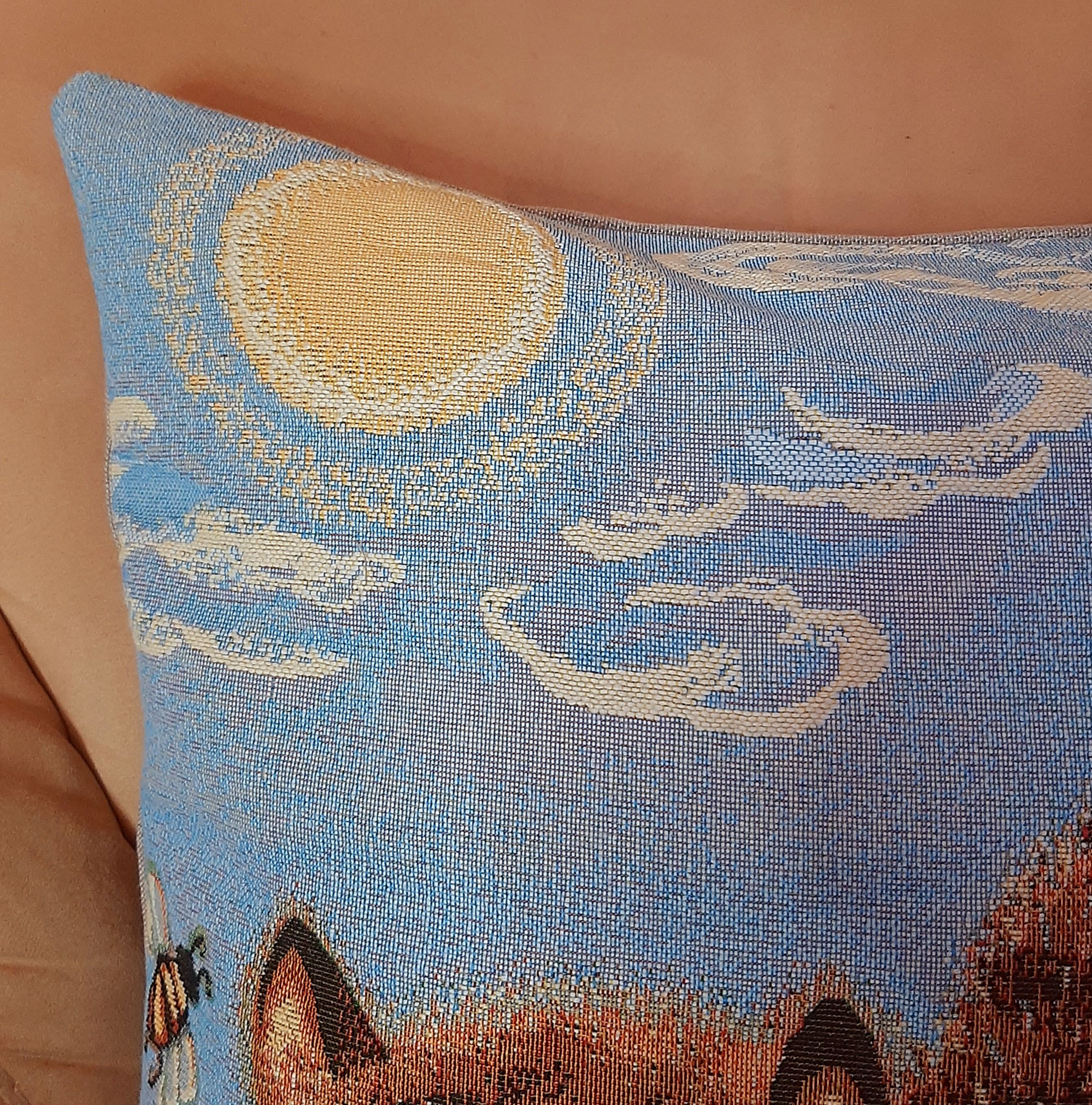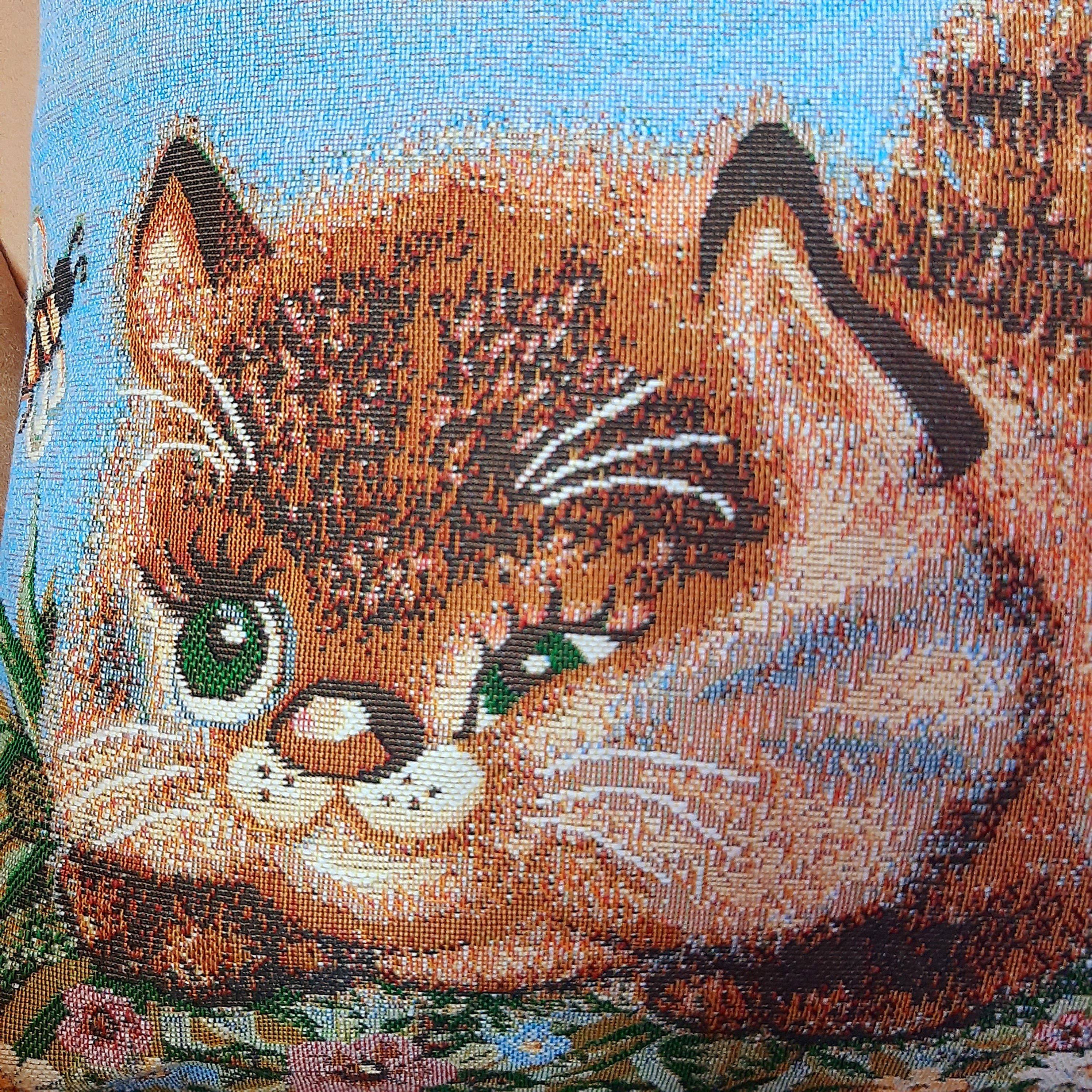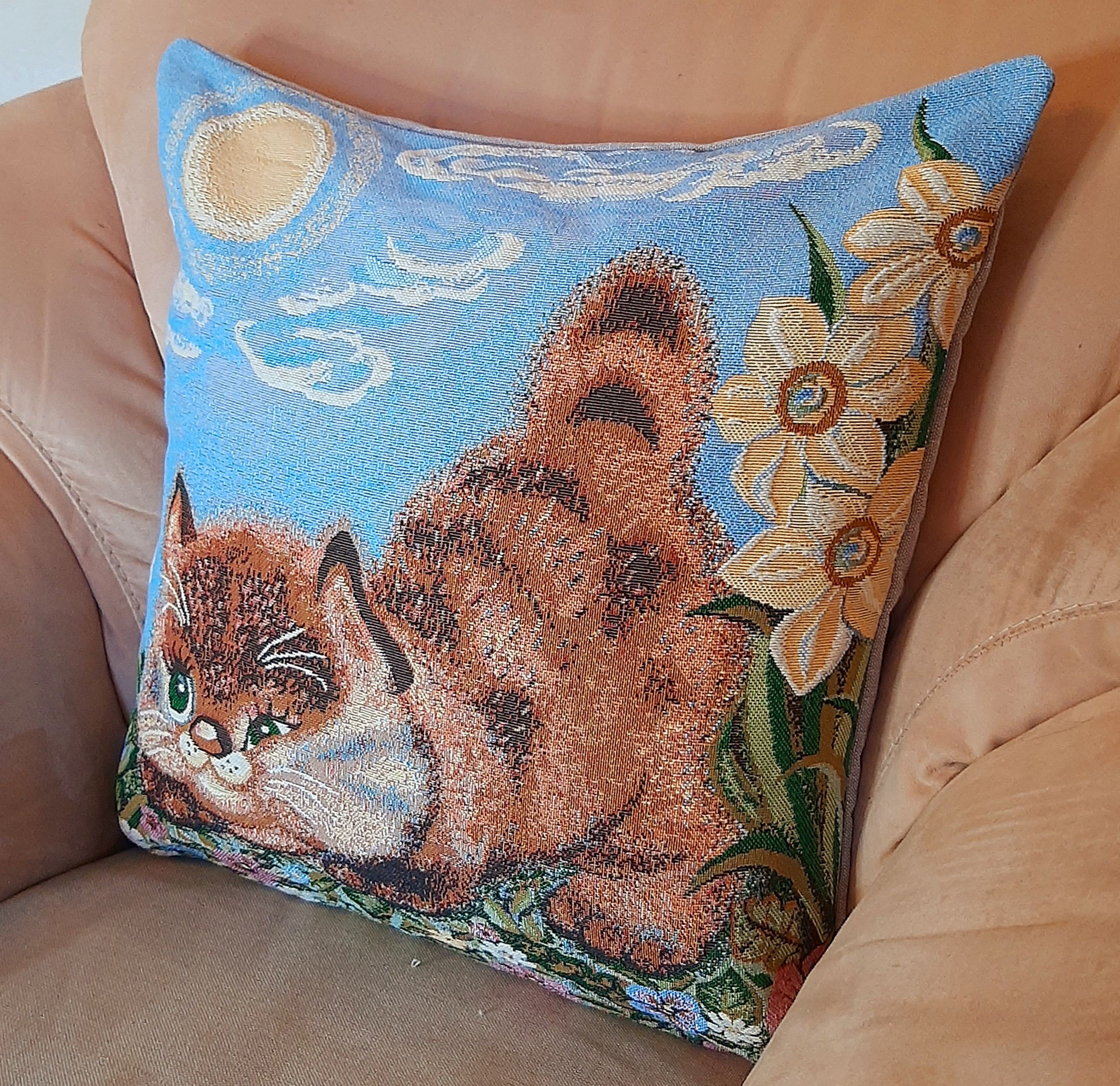 Гобеленовая декоративная наволочка с изображением котенка играющего с пчелой подойдет для оформления домашнего интерьера в Новогодние праздники. Можно использовать для украшения гостиной, спальни, детской комнаты, кафе, отеля, гостиницы. Можно использовать как дополнительные подушки на диван, кресло, кровать, дачная лавка на веранде. Отличный подарок или сувенир для родных и близких, друзей, коллег по работе, маме, бабушке, теще, тете, сестре, сослуживцам на новый год, новоселье, день рождения, корпоративный подарок, 8 марта.