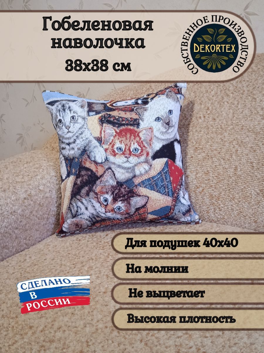 Гобеленовая наволочка для декоративной подушки. Размер наволочки: 38x38см. производство Россия. Изделие собственного производства сшито из отечественной жаккардовой ткани. Задняя часть выполнена из мебельной рогожки так же Российского производства. Все ткани используемые для производства декоративной наволочки производятся с соблюдением ТУ и ГОСТ РФ. Собственное швейное производство позволяет контролировать качество продукции на всех этапах до поступления на склад и предлагать покупателям товары высокого качества по выгодным ценам. Состав ткани 100% полиэстер. Плотность гобелена 380 г/кв.м. Наволочка подходит для подушек размером 40х40 см. Продается без подушки-наполнителя. Подушку-наполнитель так же можно купит у нас. Размер наволочки может отличаться от заявленного +/- 2 см. Допускается деликатная машинная стирка при температуре 30 градусов. Гладить при средней температуре.