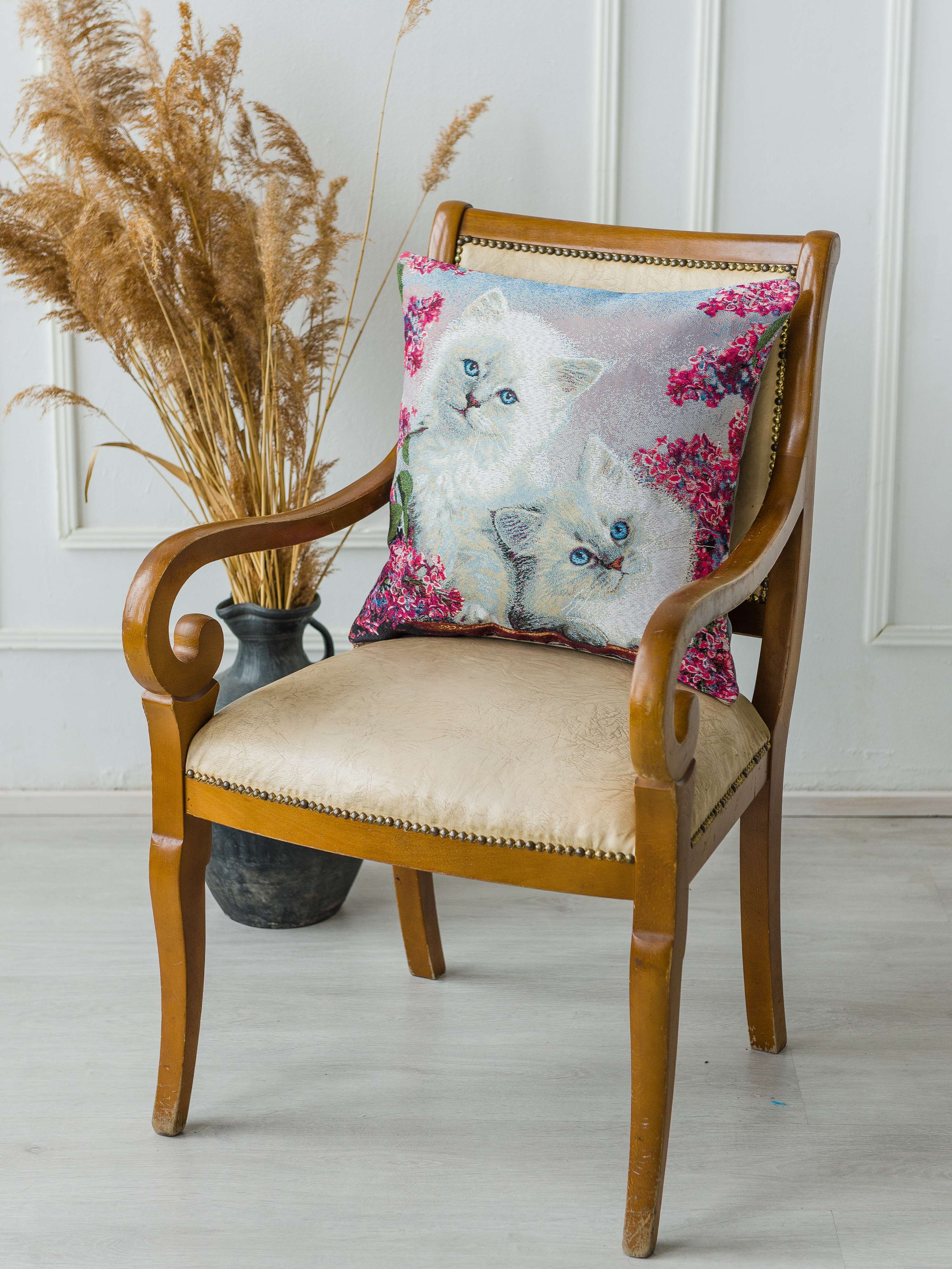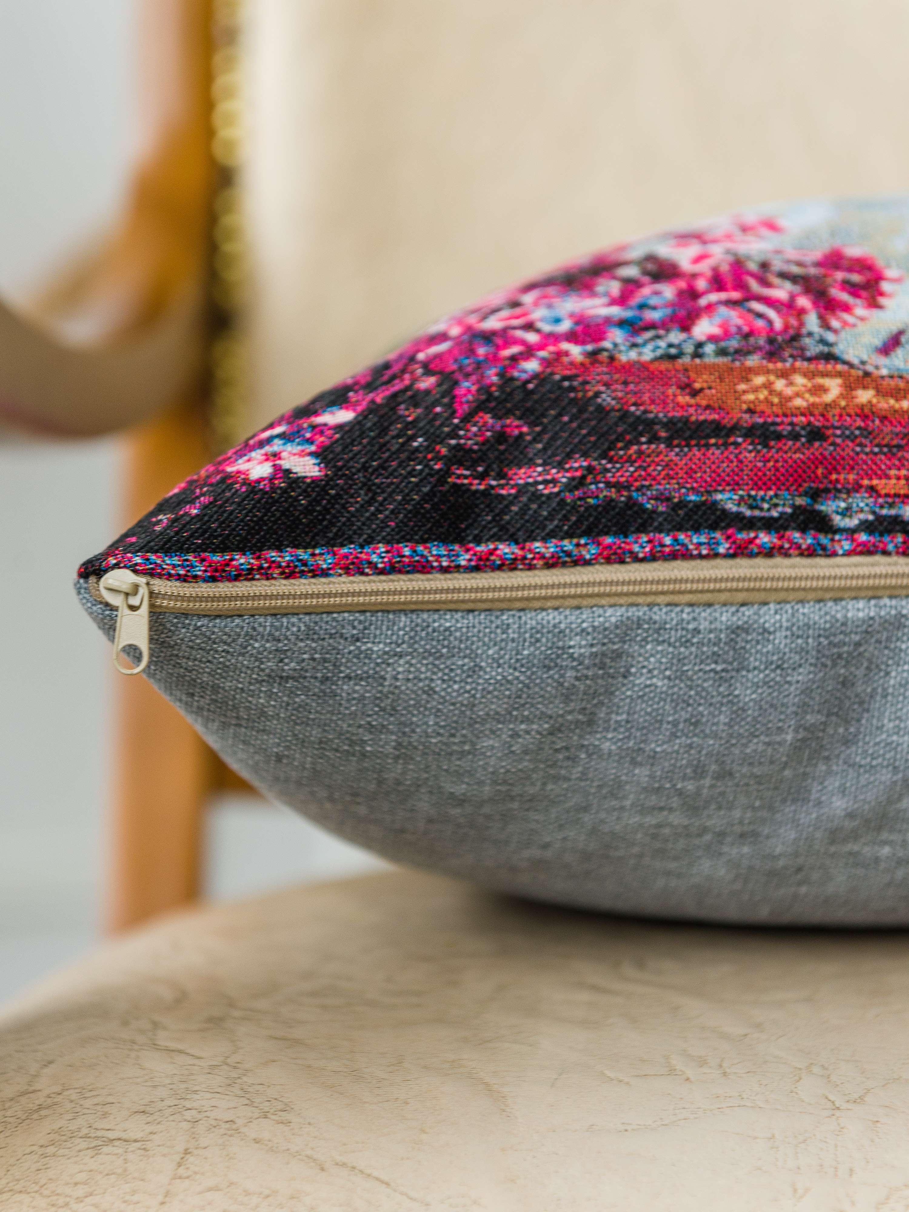 Гобеленовый чехол для декоративной подушки. Размер чехла: 47x47см. производство Россия. Изделие собственного производства сшито из отечественной жаккардовой ткани. Задняя часть выполнена из мебельной рогожки так же Российского производства. Все ткани используемые для производства декоративного чехла производятся с соблюдением ТУ и ГОСТ РФ. Собственное швейное производство позволяет контролировать качество продукции на всех этапах до поступления на склад и предлагать покупателям товары высокого качества по выгодным ценам. Состав ткани 100% полиэстер. Плотность гобелена 380 г/кв.м. Чехол подходит для подушек размером от 45 до 50 см. Продается без подушки-наполнителя. Подушку-наполнитель так же можно купит у нас. Размер чехла может отличаться от заявленного +/- 2 см. Допускается деликатная машинная стирка при температуре 30 градусов. Гладить при средней температуре.