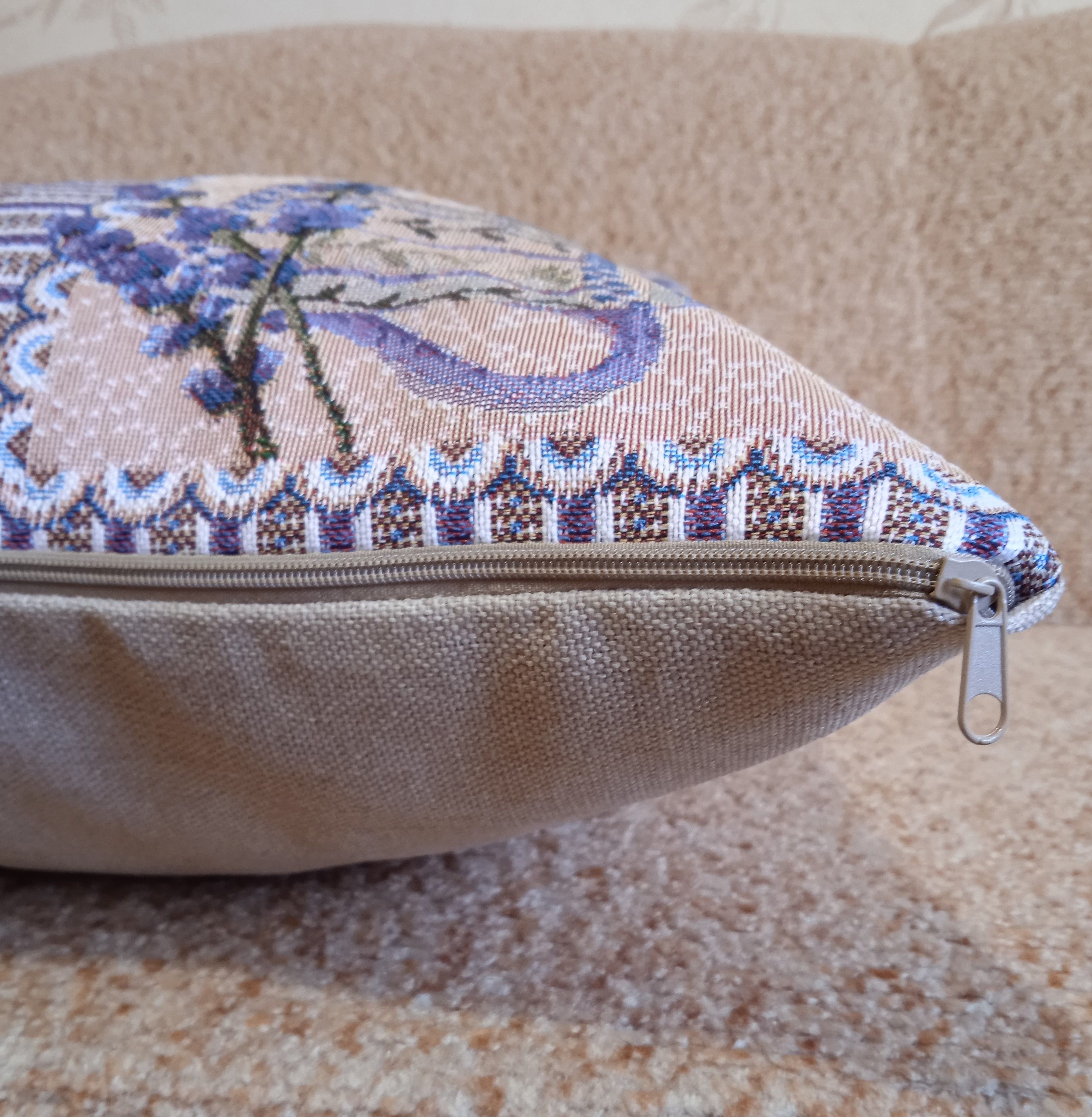 Гобеленовый чехол для декоративной подушки. Размер чехла: 37x58 см. производство Россия. Изделие собственного производства сшито из отечественной жаккардовой ткани. Задняя часть выполнена из мебельной рогожки так же Российского производства. Все ткани используемые для производства декоративного чехла производятся с соблюдением ТУ и ГОСТ Р.Ф. Собственное швейное производство позволяет контролировать качество продукции на всех этапах до поступления на склад и предлагать покупателям товары высокого качества по выгодным ценам. Состав ткани 100% полиэстер. Плотность гобелена 380 г/кв.м. Продается без подушки-наполнителя. Подушку-наполнитель так же можно купить у нас. Размер чехла может отличаться от заявленного +/- 2 см. Допускается деликатная машинная стирка при температуре 30 градусов. Гладить при средней температуре.