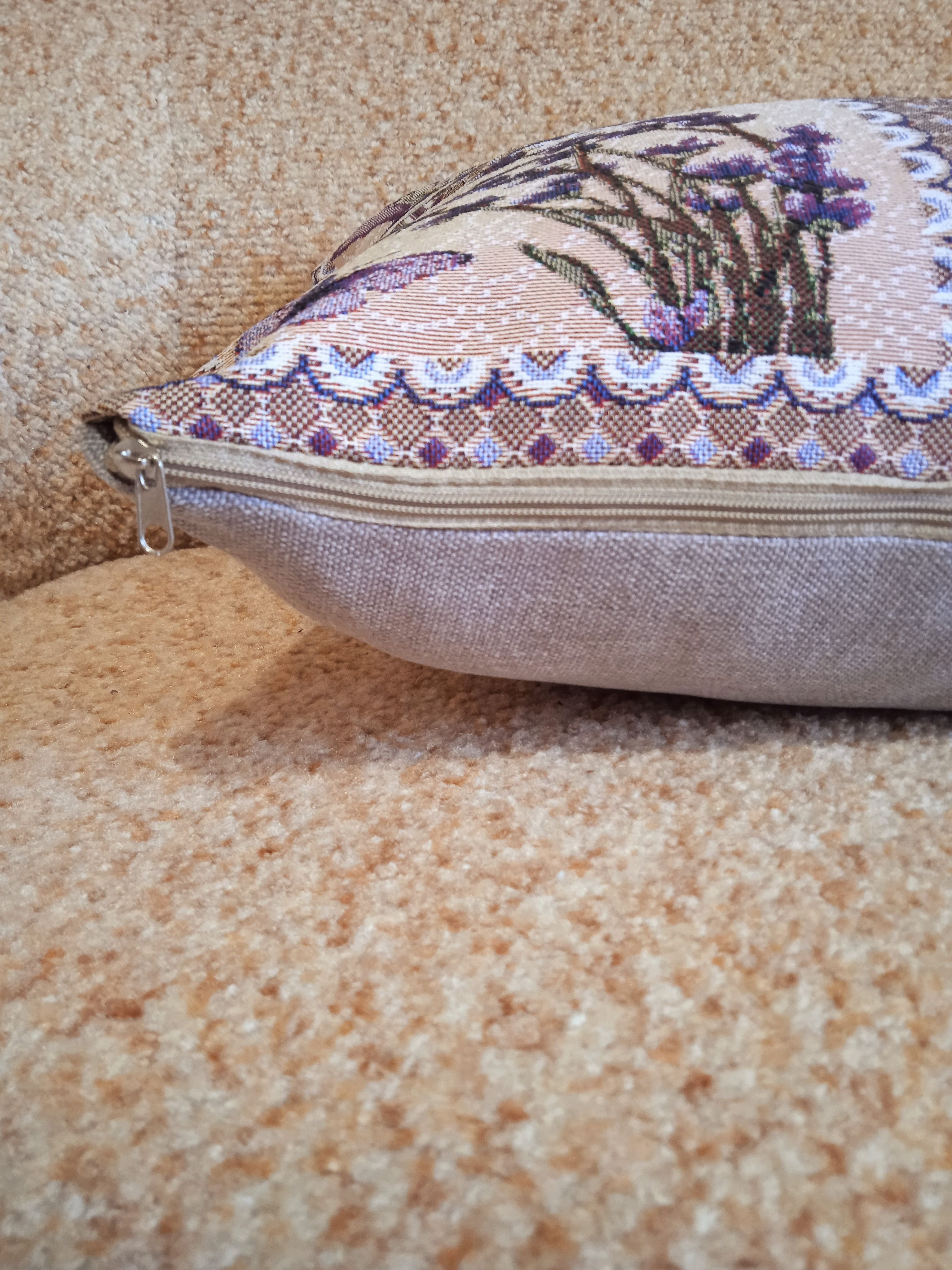 Гобеленовая наволочка для декоративной подушки. Размер наволочки: 38x38см. производство Россия. Изделие собственного производства сшито из отечественной жаккардовой ткани. Задняя часть выполнена из мебельной рогожки так же Российского производства. Все ткани используемые для производства декоративной наволочки производятся с соблюдением ТУ и ГОСТ Р.Ф. Собственное швейное производство позволяет контролировать качество продукции на всех этапах до поступления на склад и предлагать покупателям товары высокого качества по выгодным ценам. Состав ткани 100% полиэстер. Плотность гобелена 380 г/кв.м. Наволочка подходит для подушек размером 40х40 см. Продается без подушки-наполнителя. Подушку-наполнитель так же можно купит у нас. Размер наволочки может отличаться от заявленного +/- 2 см. Допускается деликатная машинная стирка при температуре 30 градусов. Гладить при средней температуре.