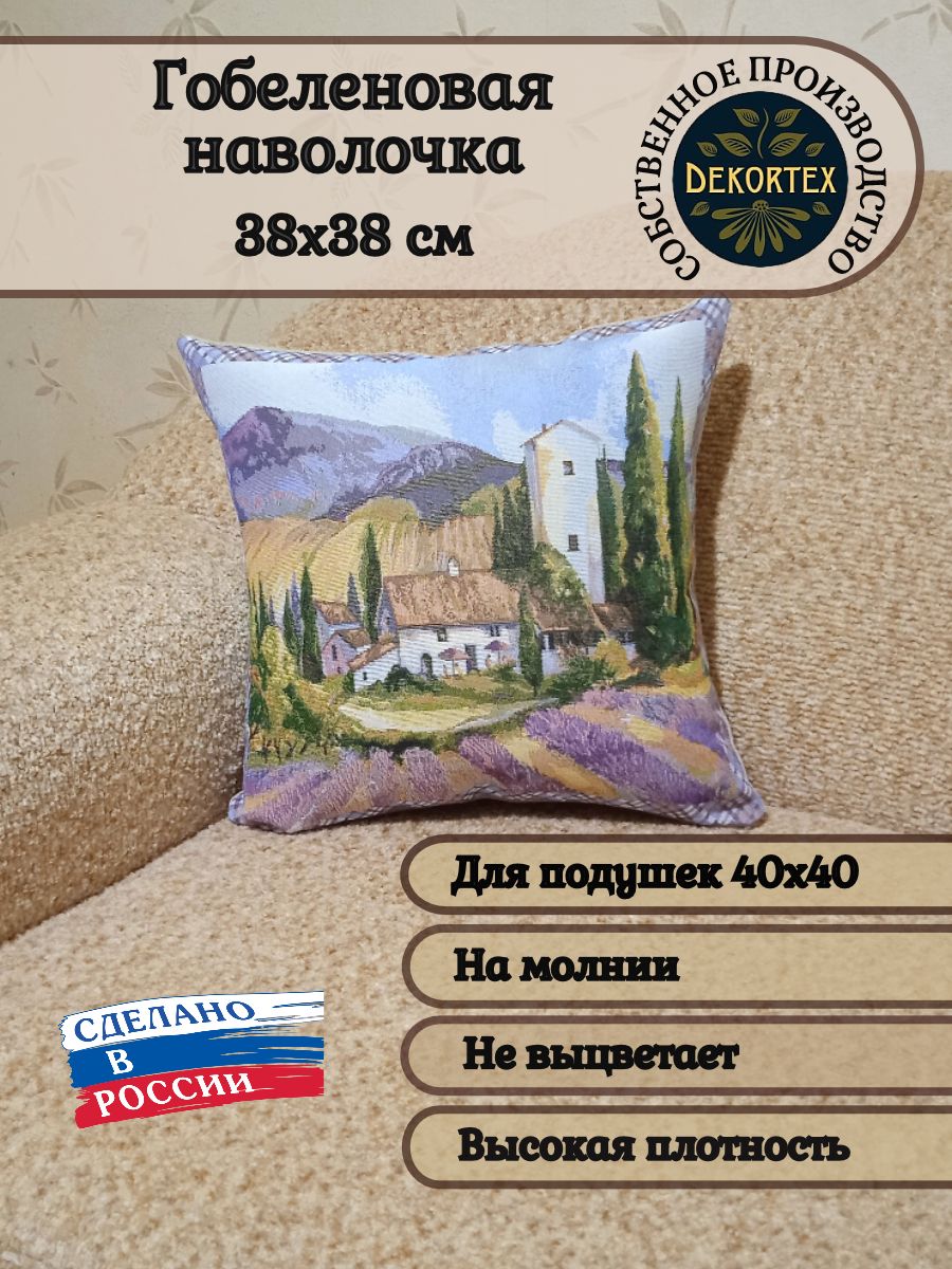 Гобеленовая наволочка для декоративной подушки. Размер наволочки: 38x38см. производство Россия. Изделие собственного производства сшито из отечественной жаккардовой ткани. Задняя часть выполнена из мебельной рогожки так же Российского производства. Все ткани используемые для производства декоративной наволочки производятся с соблюдением ТУ и ГОСТ РФ. Собственное швейное производство позволяет контролировать качество продукции на всех этапах до поступления на склад и предлагать покупателям товары высокого качества по выгодным ценам. Состав ткани 100% полиэстер. Плотность гобелена 380 г/кв.м. Наволочка подходит для подушек размером 40х40 см. Продается без подушки-наполнителя. Подушку-наполнитель так же можно купит у нас. Размер наволочки может отличаться от заявленного +/- 2 см. Допускается деликатная машинная стирка при температуре 30 градусов. Гладить при средней температуре.