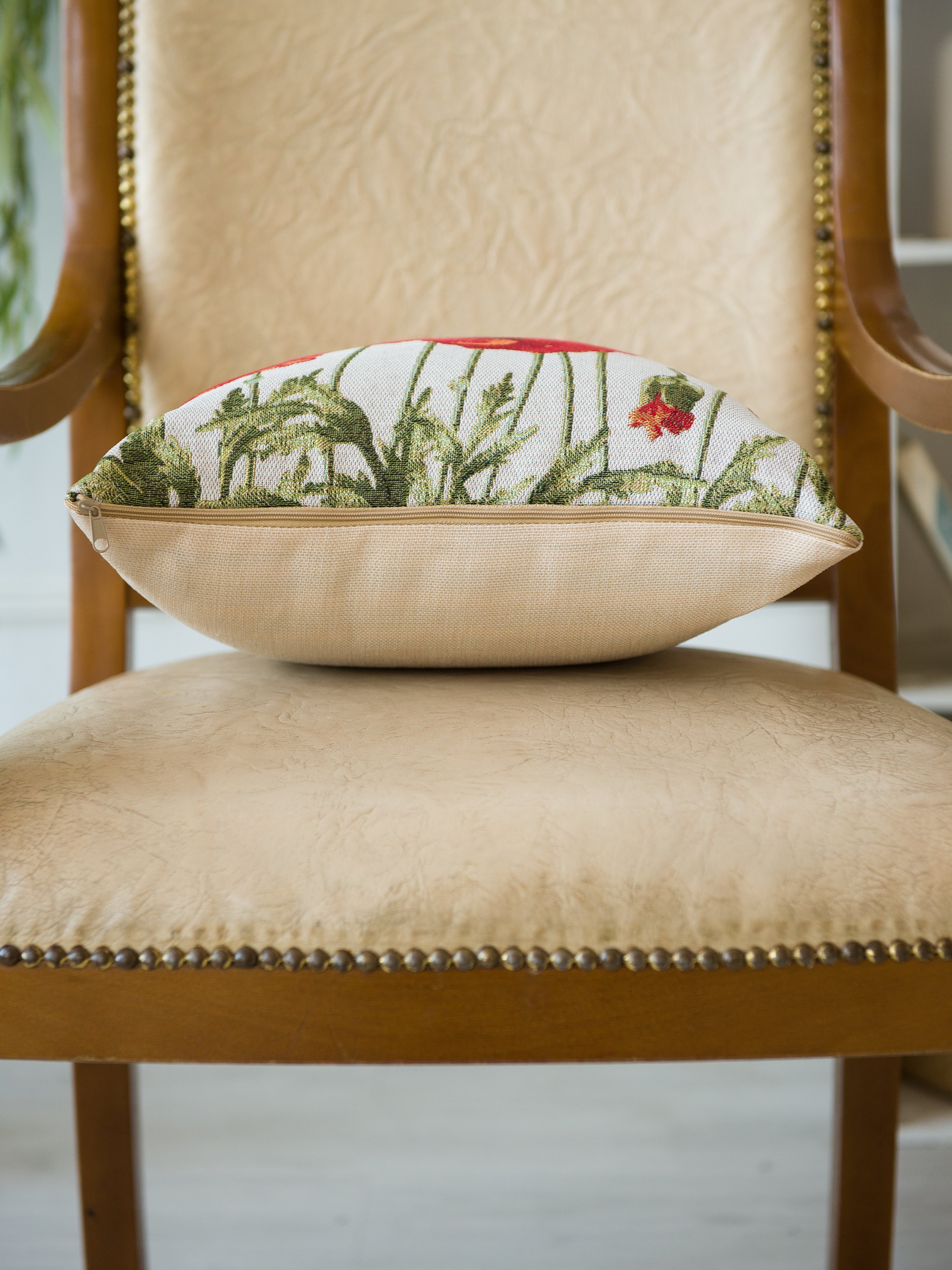 Гобеленовая наволочка для декоративной подушки. Размер наволочки: 38x38см. производство Россия. Изделие собственного производства сшито из отечественной жаккардовой ткани. Задняя часть выполнена из мебельной рогожки так же Российского производства. Все ткани используемые для производства декоративной наволочки производятся с соблюдением ТУ и ГОСТ Р.Ф. Собственное швейное производство позволяет контролировать качество продукции на всех этапах до поступления на склад и предлагать покупателям товары высокого качества по выгодным ценам. Состав ткани 100% полиэстер. Плотность гобелена 380 г/кв.м. Наволочка подходит для подушек размером от 36 до 40 см. Продается без подушки-наполнителя. Подушку-наполнитель так же можно купит у нас. Размер наволочки может отличаться от заявленного +/- 2 см. Допускается деликатная машинная стирка при температуре 30 градусов. Гладить при средней температуре.