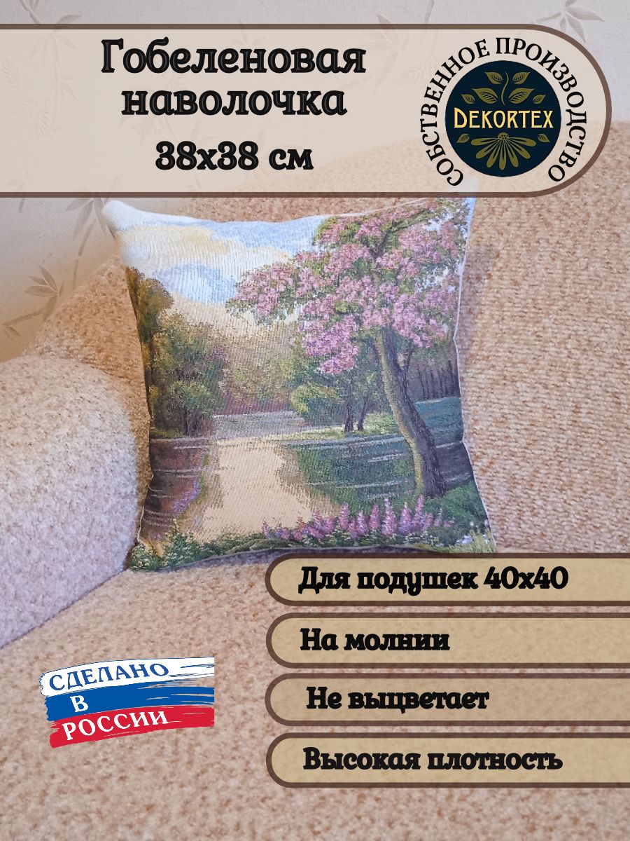 Гобеленовая наволочка для декоративной подушки. Размер наволочки: 38x38см. производство Россия. Изделие собственного производства сшито из отечественной жаккардовой ткани. Задняя часть выполнена из мебельной рогожки так же Российского производства. Все ткани используемые для производства декоративной наволочки производятся с соблюдением ТУ и ГОСТ РФ. Собственное швейное производство позволяет контролировать качество продукции на всех этапах до поступления на склад и предлагать покупателям товары высокого качества по выгодным ценам. Состав гобелена: 60% полиэстер, 40% хлопок. Плотность гобелена 380 г/кв.м. Наволочка подходит для подушек размером 40х40 см. Продается без подушки-наполнителя. Подушку-наполнитель так же можно купит у нас. Размер наволочки может отличаться от заявленного +/- 2 см. Допускается деликатная машинная стирка при температуре 30 градусов. Гладить при средней температуре.