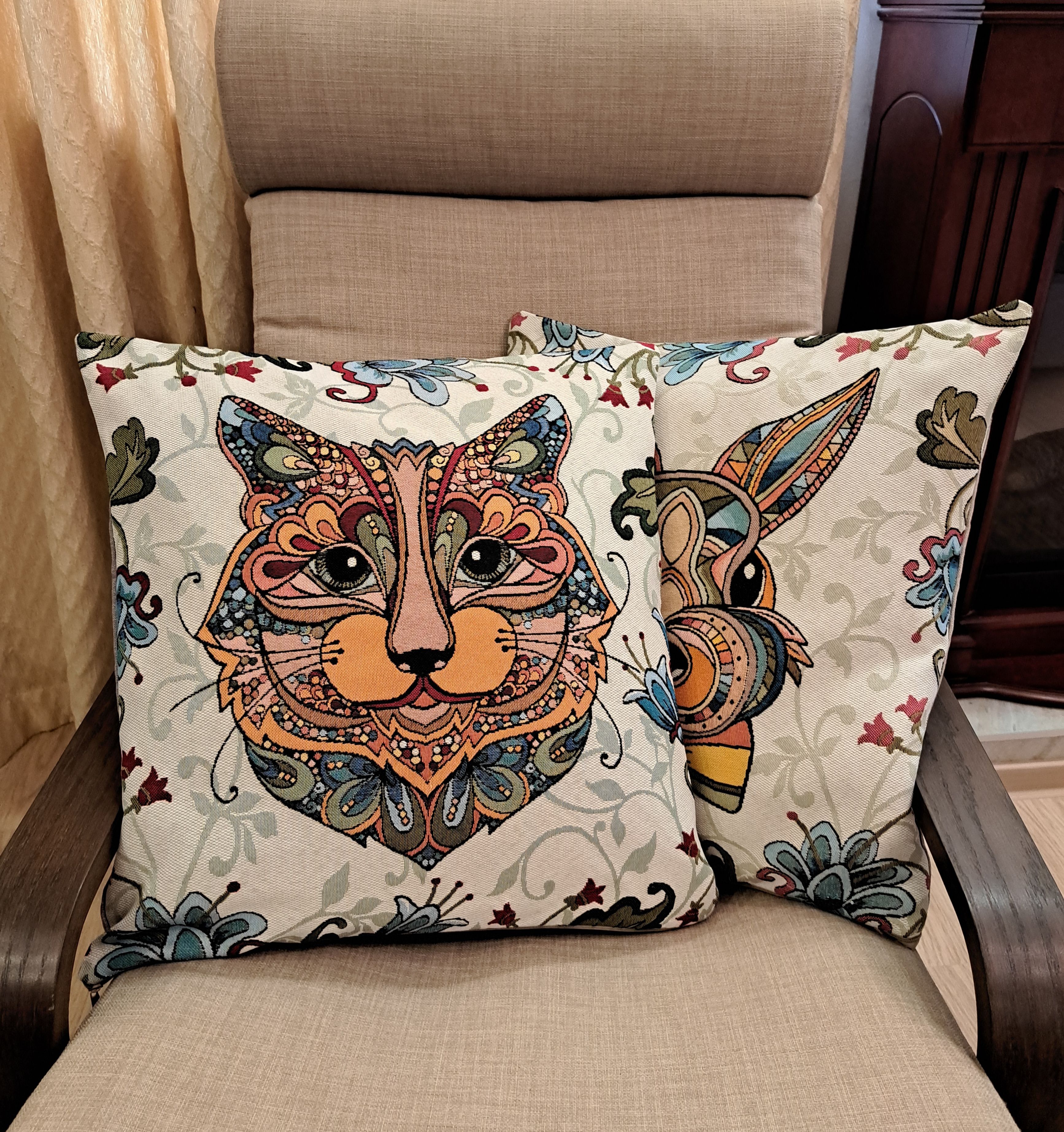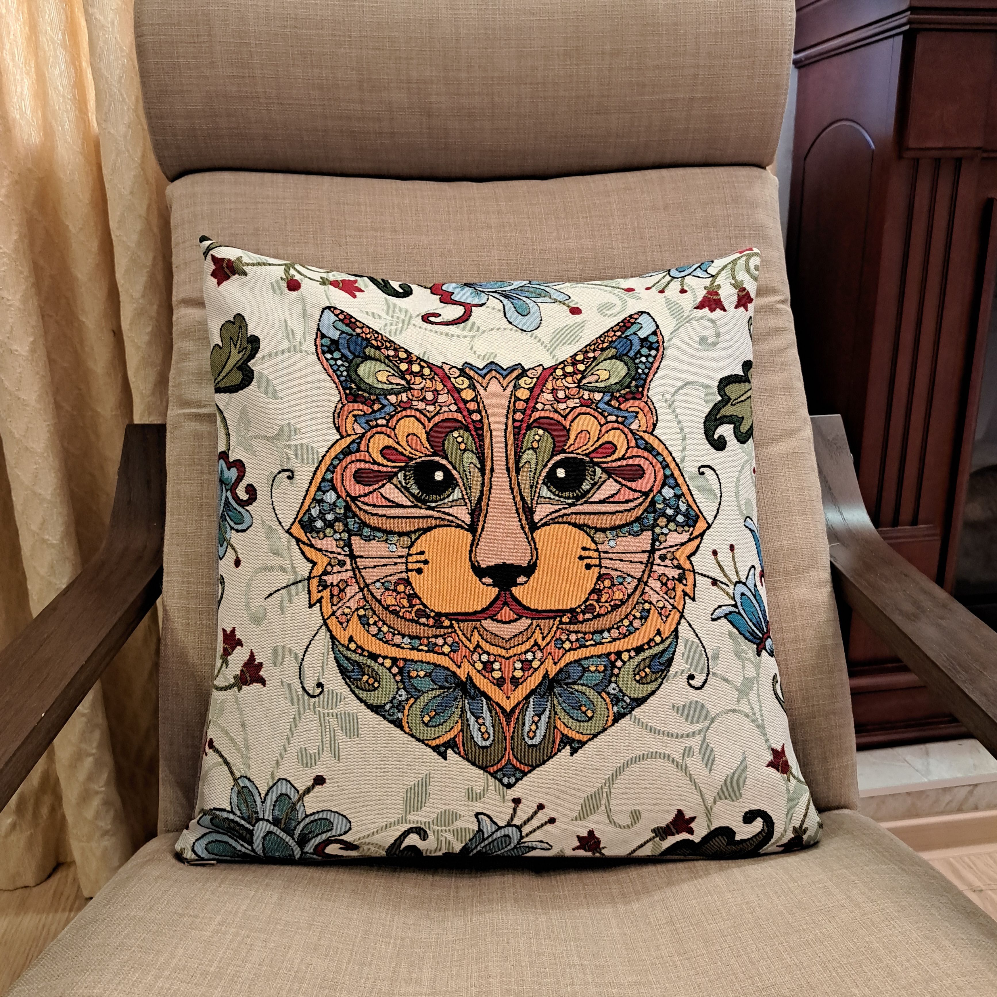 Гобеленовая декоративная наволочка с изображением Кота в стиле мозаика подойдет для оформления домашнего интерьера в Новогодние праздники. Можно использовать для украшения гостиной, спальни, детской комнаты, кафе, отеля, гостиницы. Можно использовать как дополнительные подушки на диван, кресло, кровать, дачная лавка на веранде. Отличный подарок или сувенир для родных и близких, друзей, коллег по работе, маме, бабушке, теще, тете, сестре, сослуживцам на новый год, новоселье, день рождения, корпоративный подарок, 8 марта.