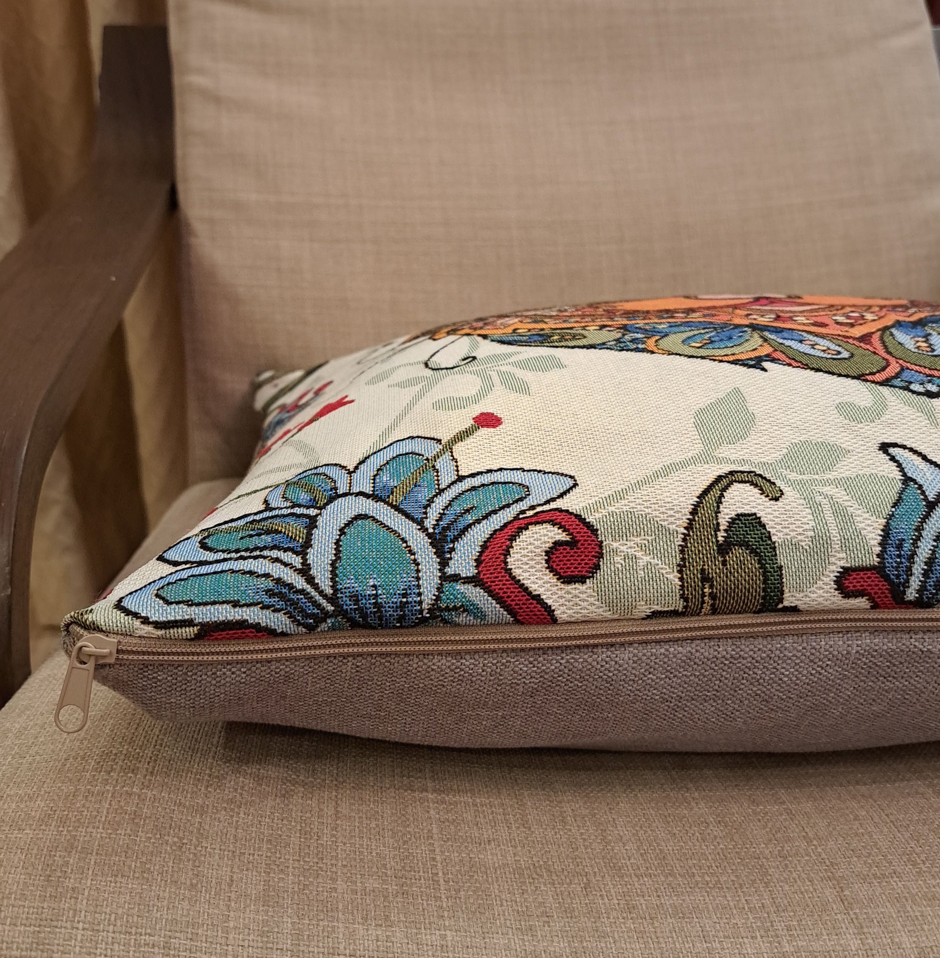 Гобеленовая наволочка для декоративной подушки. Размер наволочки: 47x47см. производство Россия. Изделие собственного производства сшито из отечественной жаккардовой ткани. Задняя часть выполнена из мебельной рогожки так же Российского производства. Все ткани используемые для производства декоративной наволочки производятся с соблюдением ТУ и ГОСТ РФ. Собственное швейное производство позволяет контролировать качество продукции на всех этапах до поступления на склад и предлагать покупателям товары высокого качества по выгодным ценам. Состав ткани 100% полиэстер. Плотность гобелена 380 г/кв.м. Наволочка подходит для подушек размером 50х50 см. Продается без подушки-наполнителя. Подушку-наполнитель так же можно купит у нас. Размер наволочки может отличаться от заявленного +/- 2 см. Допускается деликатная машинная стирка при температуре 30 градусов. Гладить при средней температуре.
