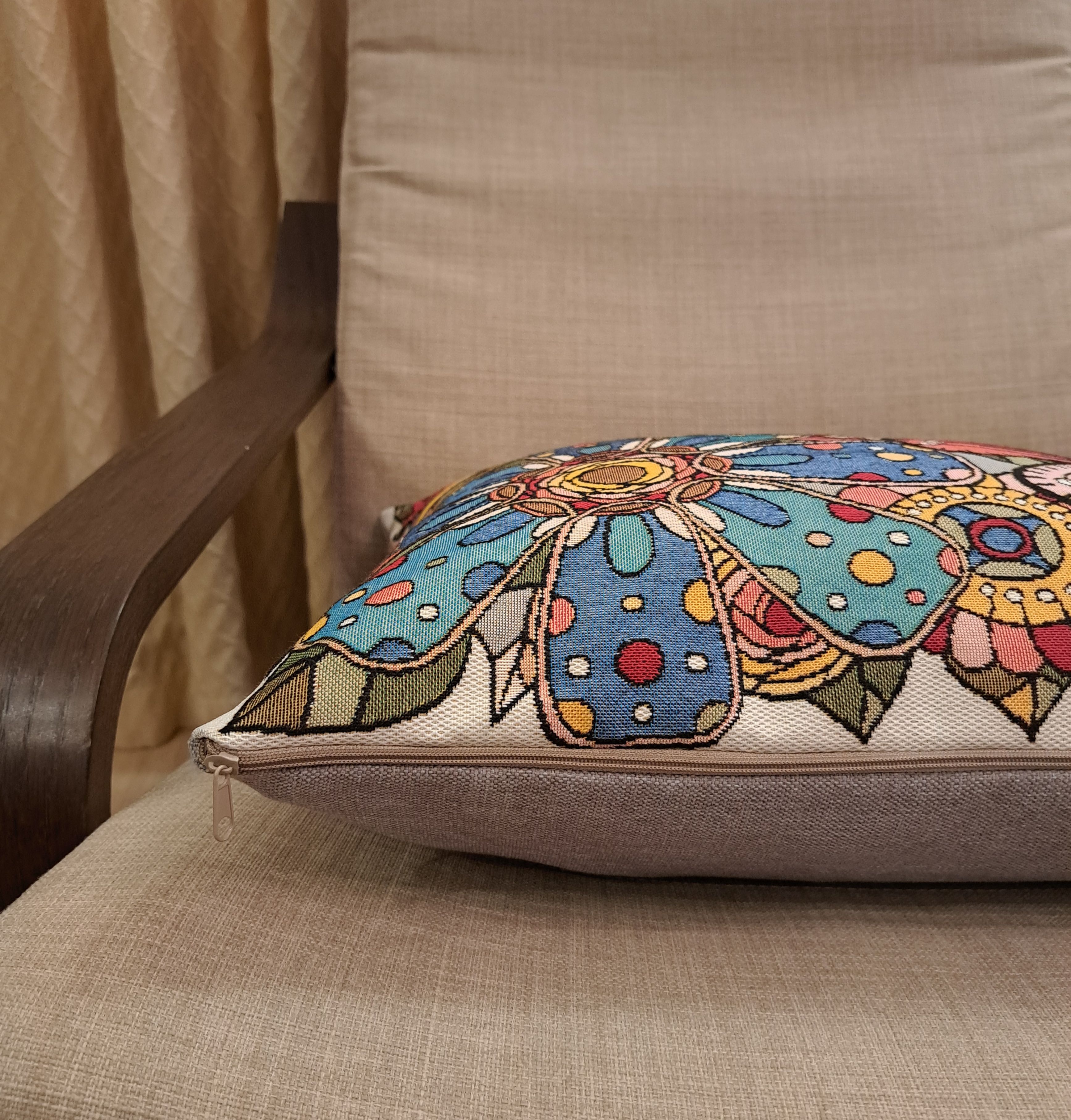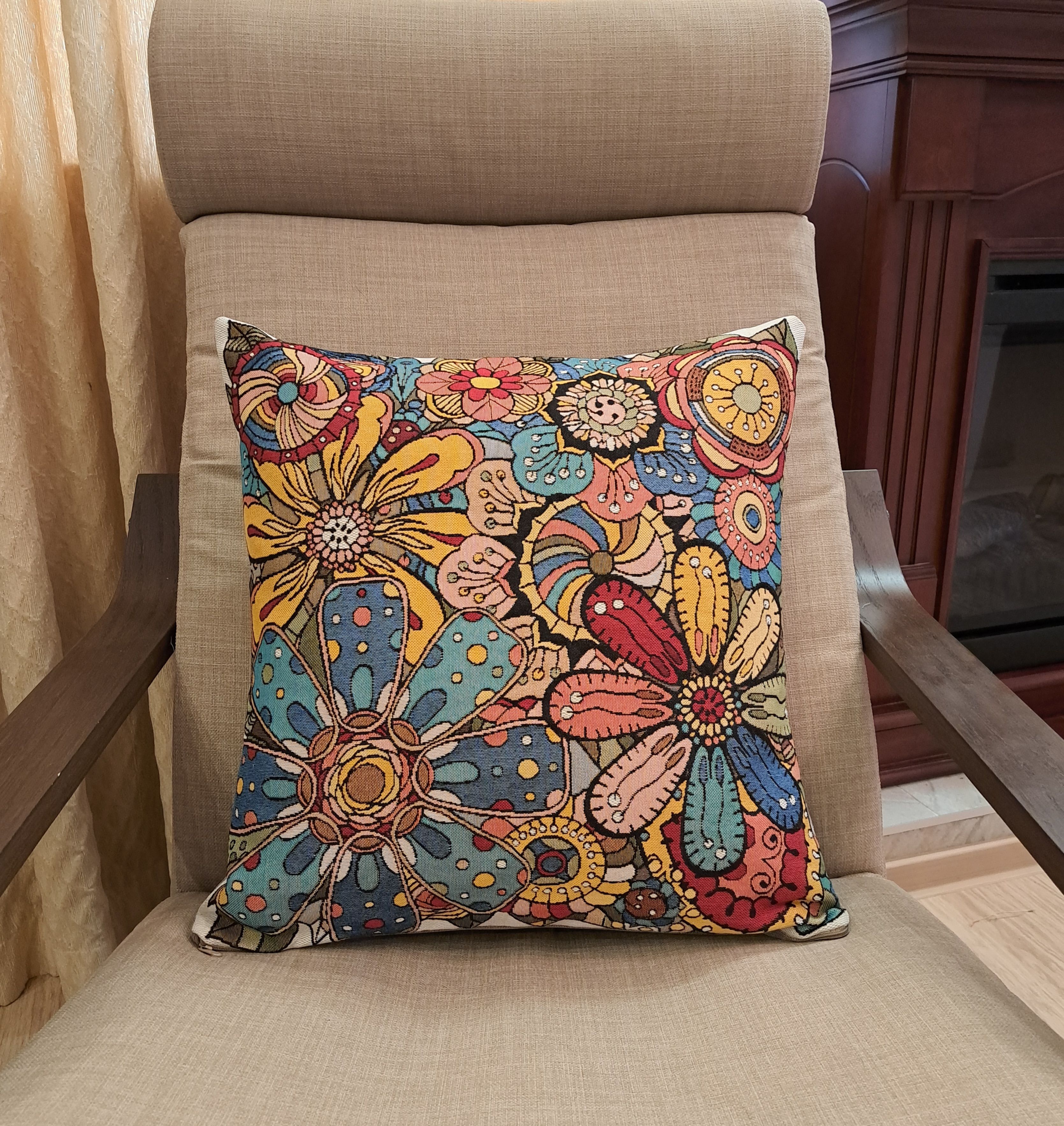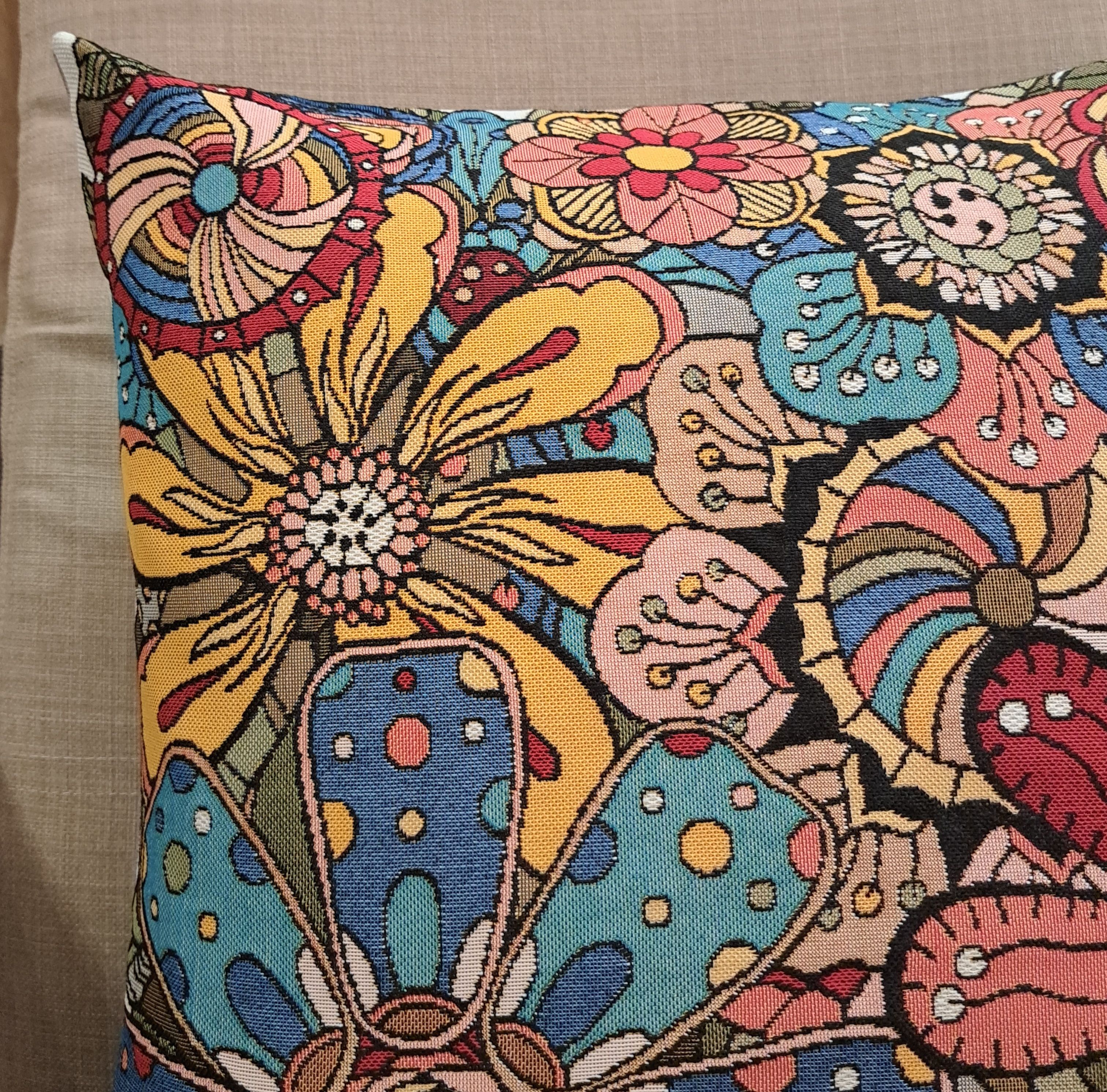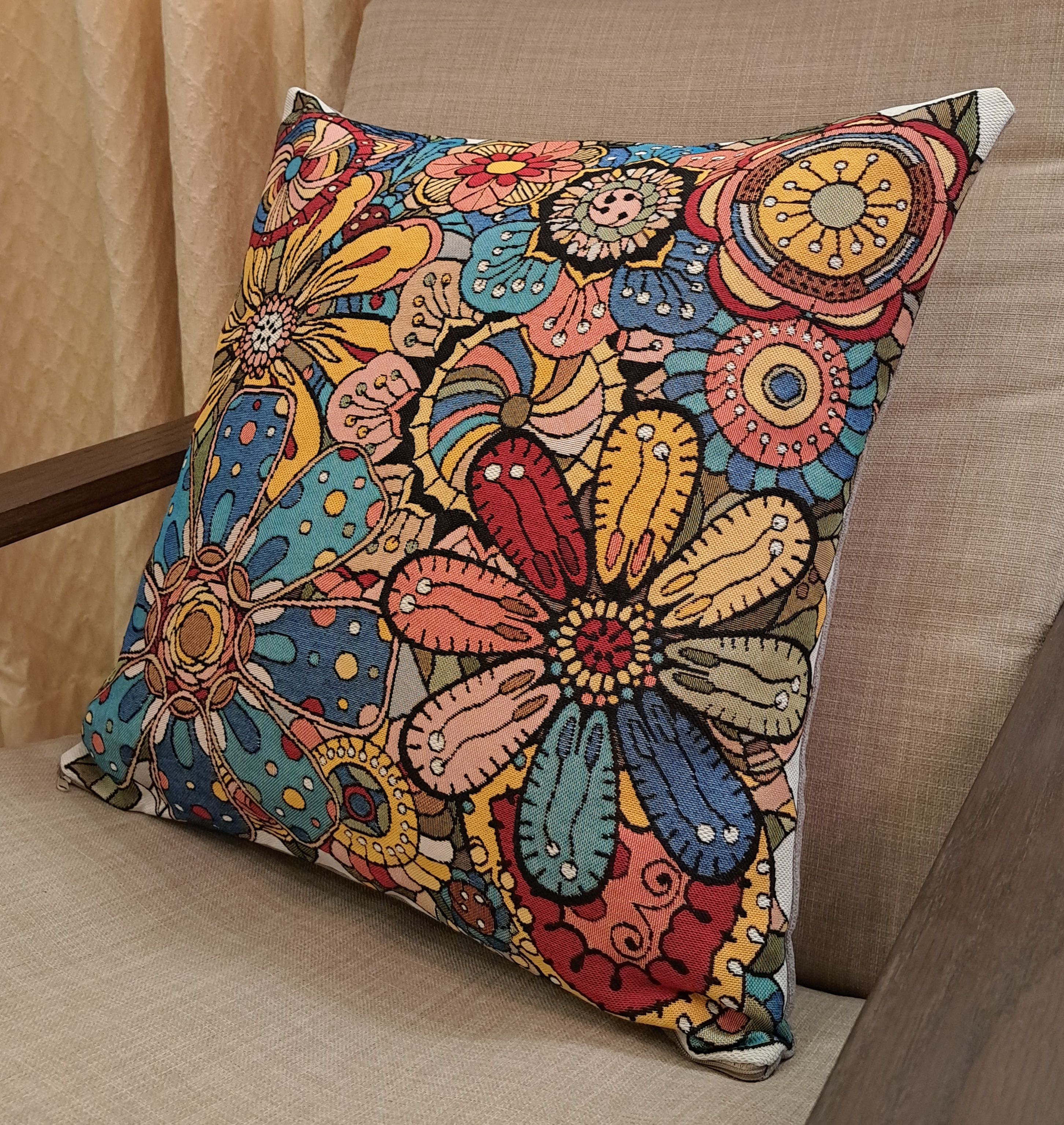 Гобеленовая декоративная наволочка с изображением Цветов в стиле мозаика подойдет для оформления домашнего интерьера в Новогодние праздники. Можно использовать для украшения гостиной, спальни, детской комнаты, кафе, отеля, гостиницы. Можно использовать как дополнительные подушки на диван, кресло, кровать, дачная лавка на веранде. Отличный подарок или сувенир для родных и близких, друзей, коллег по работе, маме, бабушке, теще, тете, сестре, сослуживцам на новый год, новоселье, день рождения, корпоративный подарок, 8 марта.