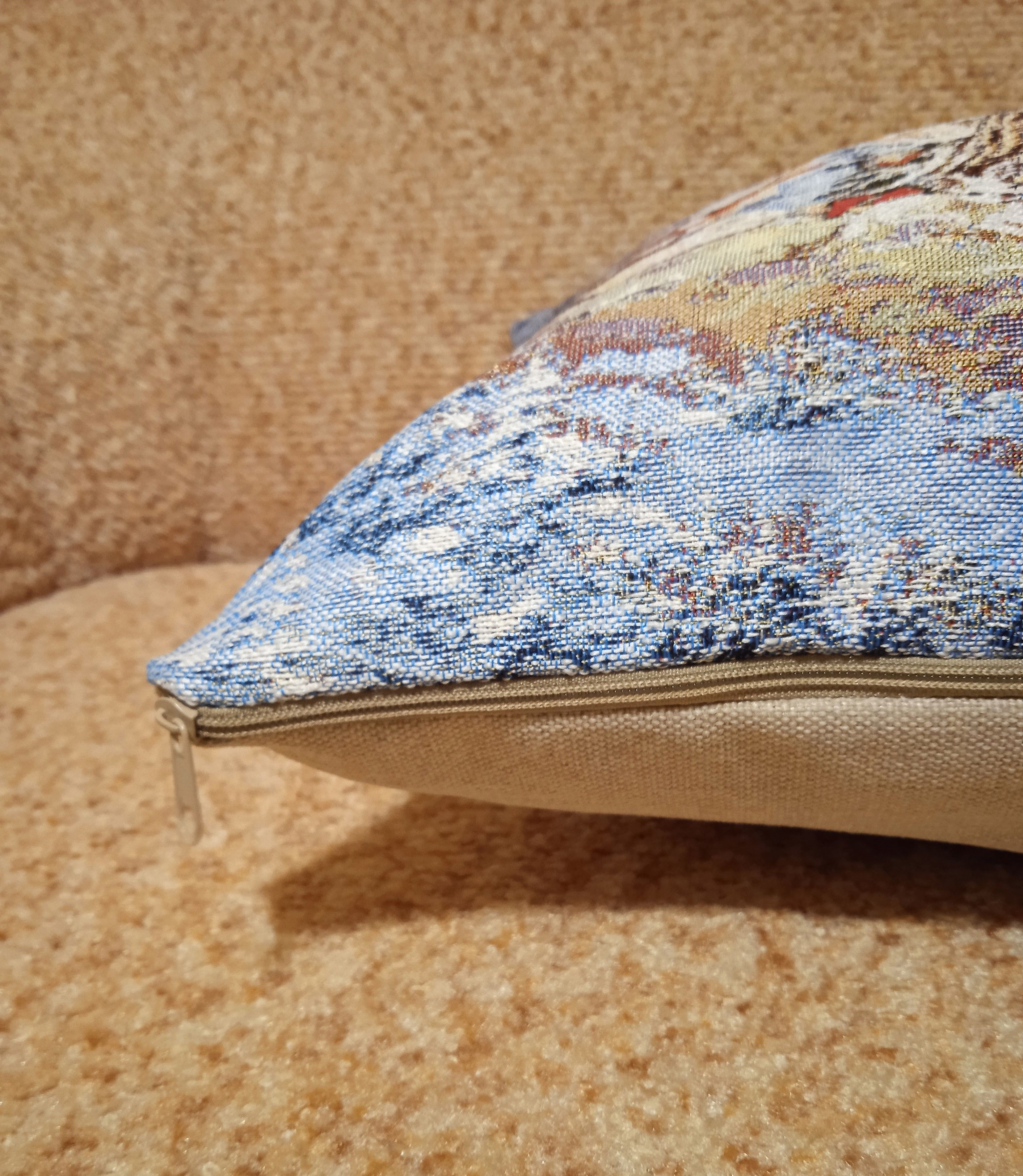 Гобеленовый чехол для декоративной подушки. Размер наволочки: 38x38см. производство Россия. Изделие собственного производства сшито из отечественной жаккардовой ткани. Задняя часть выполнена из мебельной рогожки так же Российского производства. Все ткани используемые для производства декоративной наволочки производятся с соблюдением ТУ и ГОСТ Р.Ф. Собственное швейное производство позволяет контролировать качество продукции на всех этапах до поступления на склад и предлагать покупателям товары высокого качества по выгодным ценам. Состав ткани 100% полиэстер. Плотность гобелена 380 г/кв.м. Наволочка подходит для подушек размером от 37 до 40 см. Продается без подушки-наполнителя. Подушку-наполнитель так же можно купит у нас. Размер наволочки может отличаться от заявленного +/- 2 см. Допускается деликатная машинная стирка при температуре 30 градусов. Гладить при средней температуре.