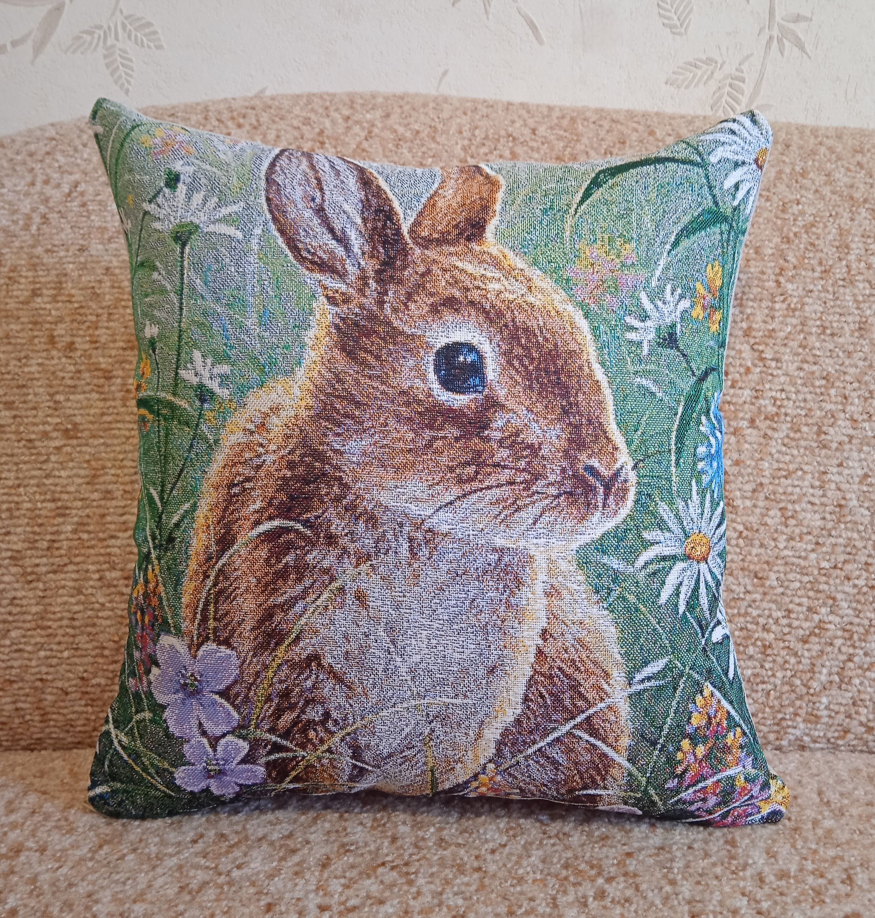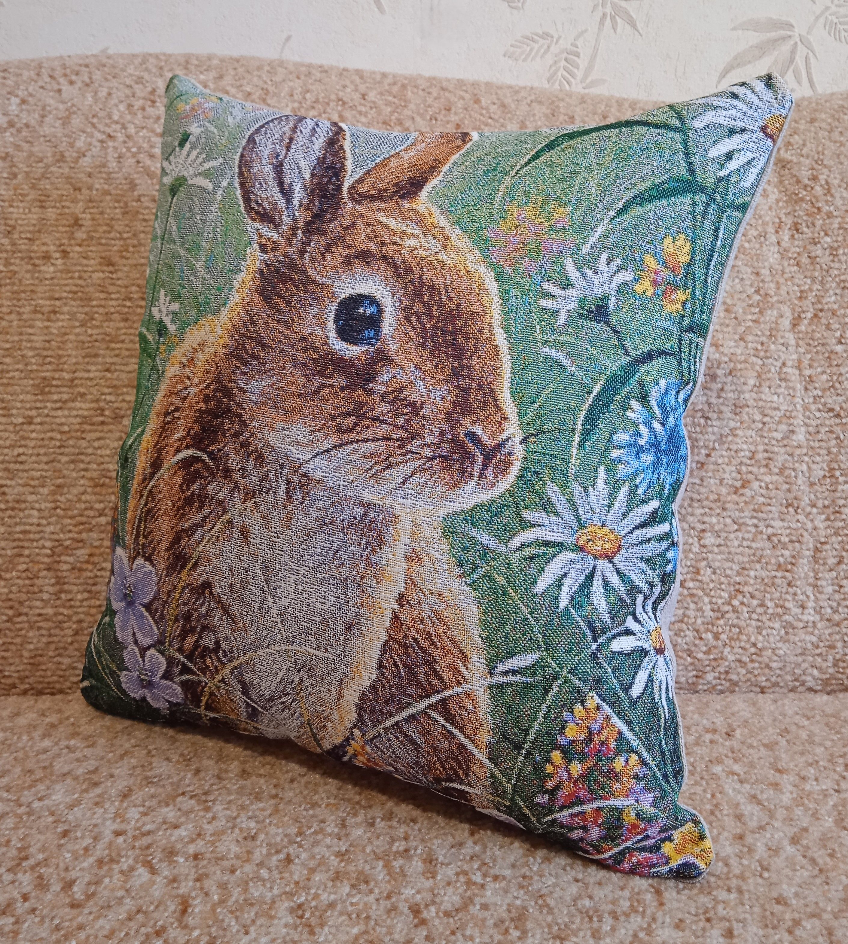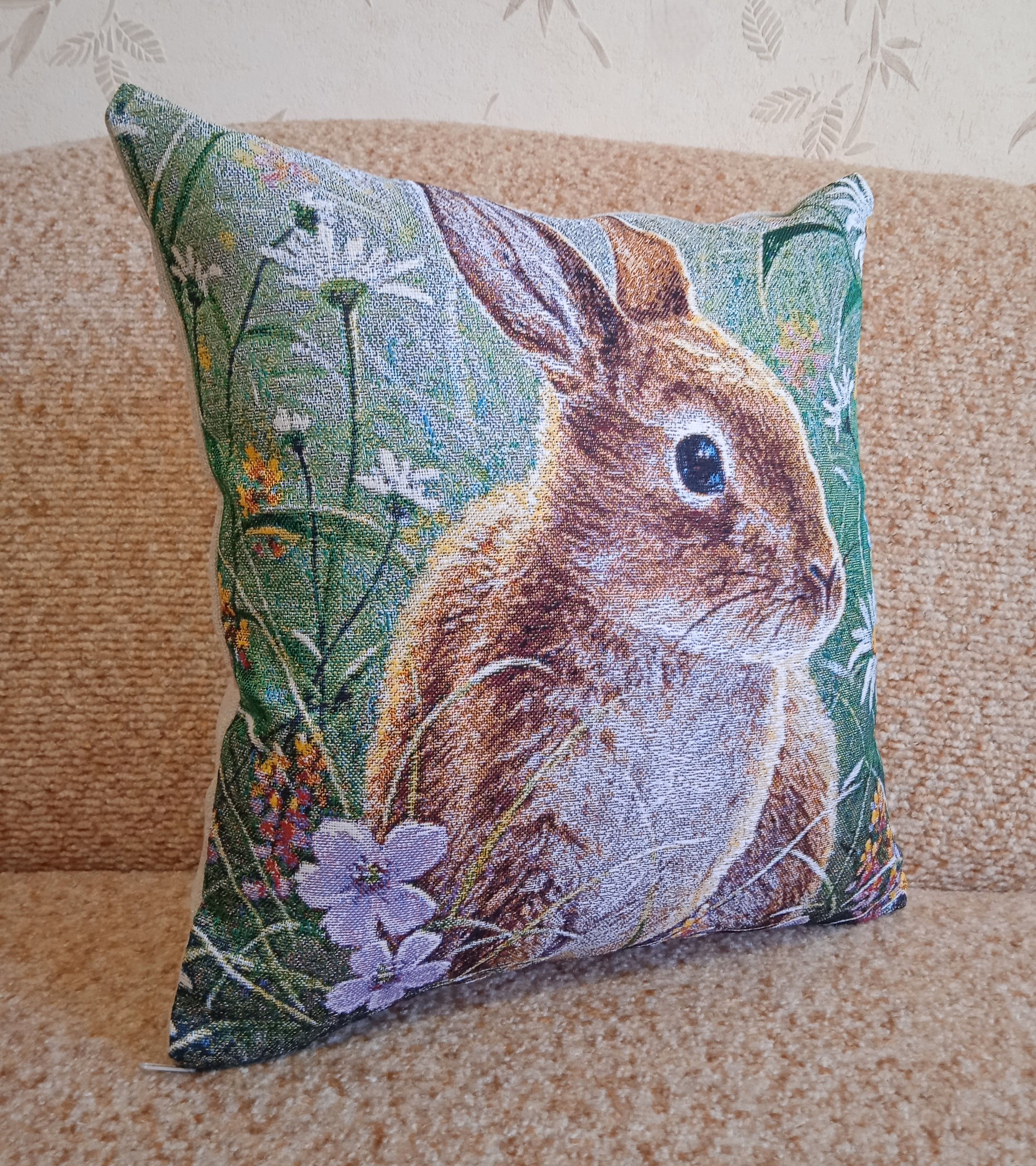 Гобеленовая декоративная наволочка с изображением пушистого серого зайчика в луговых цветах подойдет для оформления домашнего интерьера в Новогодние праздники. Можно использовать для украшения гостиной, спальни, детской комнаты, кафе, отеля, гостиницы. Можно использовать как дополнительные подушки на диван, кресло, кровать, дачная лавка на веранде. Отличный подарок или сувенир для родных и близких, друзей, коллег по работе, маме, бабушке, теще, тете, сестре, сослуживцам на новый год, новоселье, день рождения, корпоративный подарок, 8 марта.