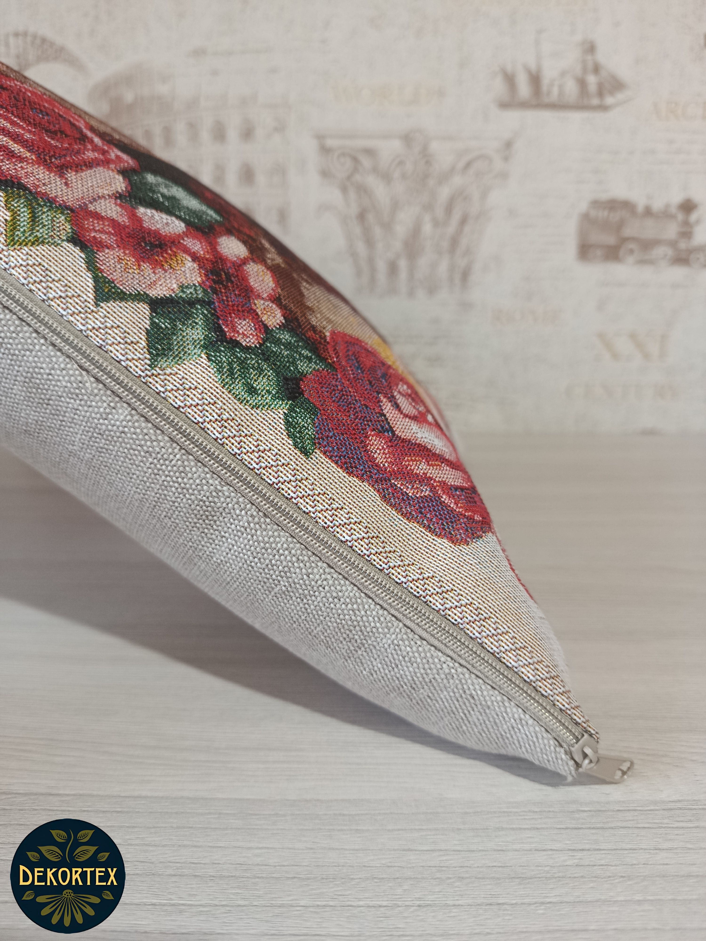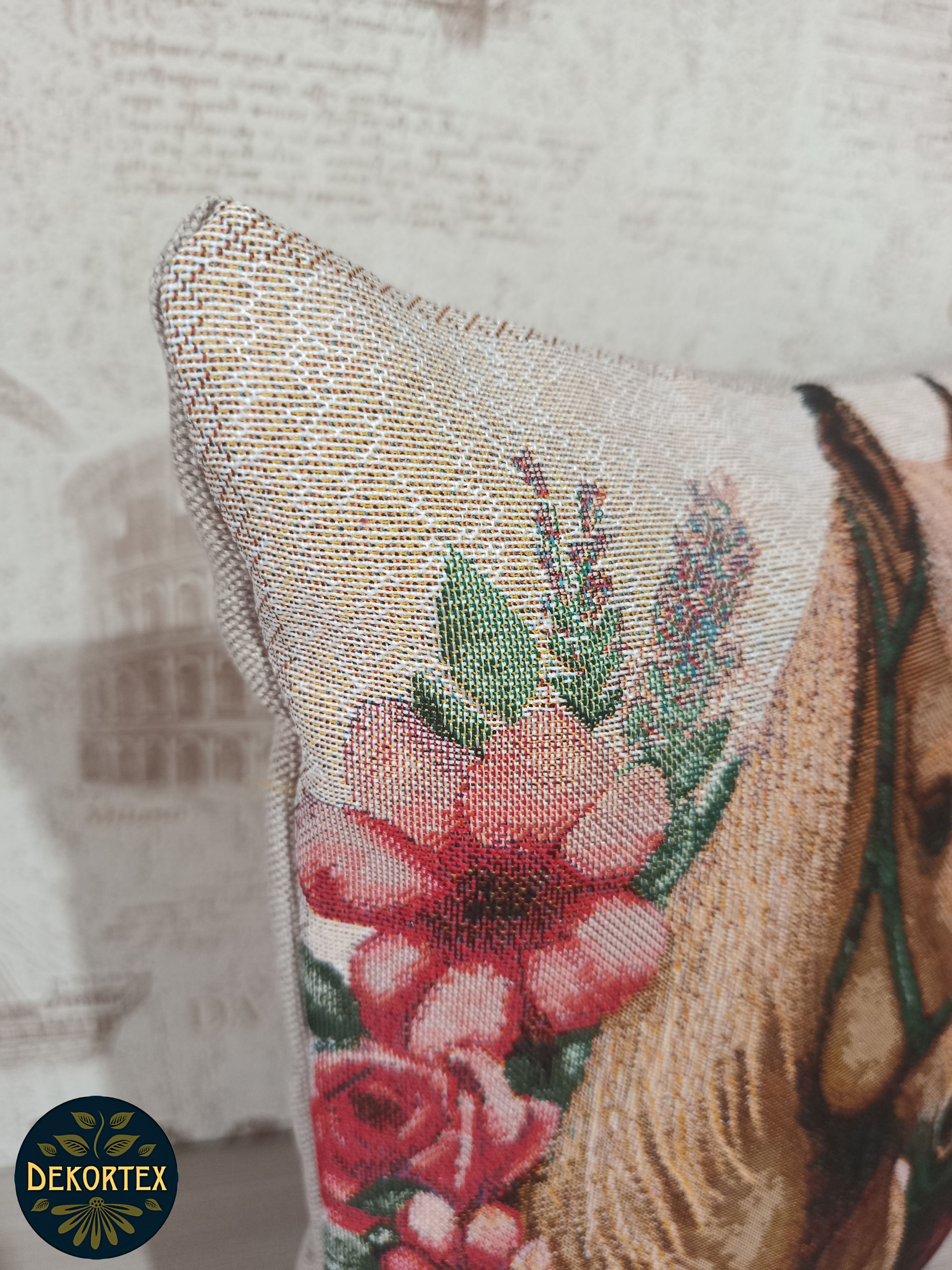 Гобеленовая наволочка для декоративной подушки. Размер наволочки: 38x38см. производство Россия. Изделие собственного производства сшито из отечественной жаккардовой ткани. Задняя часть выполнена из мебельной рогожки так же Российского производства. Все ткани используемые для производства декоративной наволочки производятся с соблюдением ТУ и ГОСТ РФ. Собственное швейное производство позволяет контролировать качество продукции на всех этапах до поступления на склад и предлагать покупателям товары высокого качества по выгодным ценам. Состав ткани 100% полиэстер с добавлением люрекса. Плотность гобелена 380 г/кв.м. Наволочка подходит для подушек размером 40х40 см. Продается без подушки-наполнителя. Подушку-наполнитель так же можно купит у нас. Размер наволочки может отличаться от заявленного +/- 2 см. Допускается деликатная машинная стирка при температуре 30 градусов. Гладить при средней температуре.