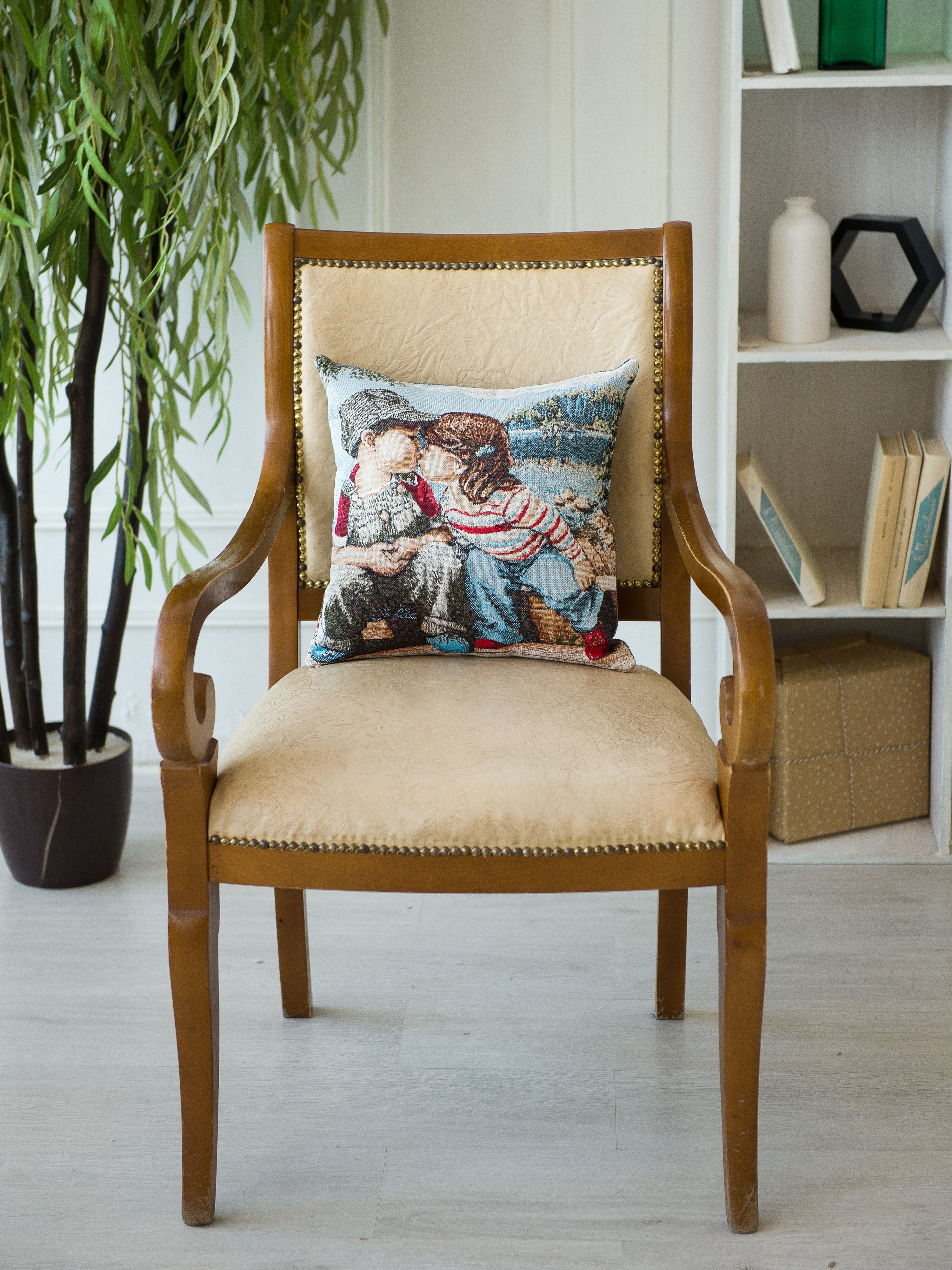 Гобеленовая наволочка для декоративной подушки. Размер наволочки: 38x38см. производство Россия. Изделие собственного производства сшито из отечественной жаккардовой ткани. Задняя часть выполнена из мебельной рогожки так же Российского производства. Все ткани используемые для производства декоративной наволочки производятся с соблюдением ТУ и ГОСТ Р.Ф. Собственное швейное производство позволяет контролировать качество продукции на всех этапах до поступления на склад и предлагать покупателям товары высокого качества по выгодным ценам. Состав ткани 100% полиэстер. Плотность гобелена 380 г/кв.м. Наволочка подходит для подушек размером от 36 до 40 см. Продается без подушки-наполнителя. Подушку-наполнитель так же можно купит у нас. Размер наволочки может отличаться от заявленного +/- 2 см. Допускается деликатная машинная стирка при температуре 30 градусов. Гладить при средней температуре.