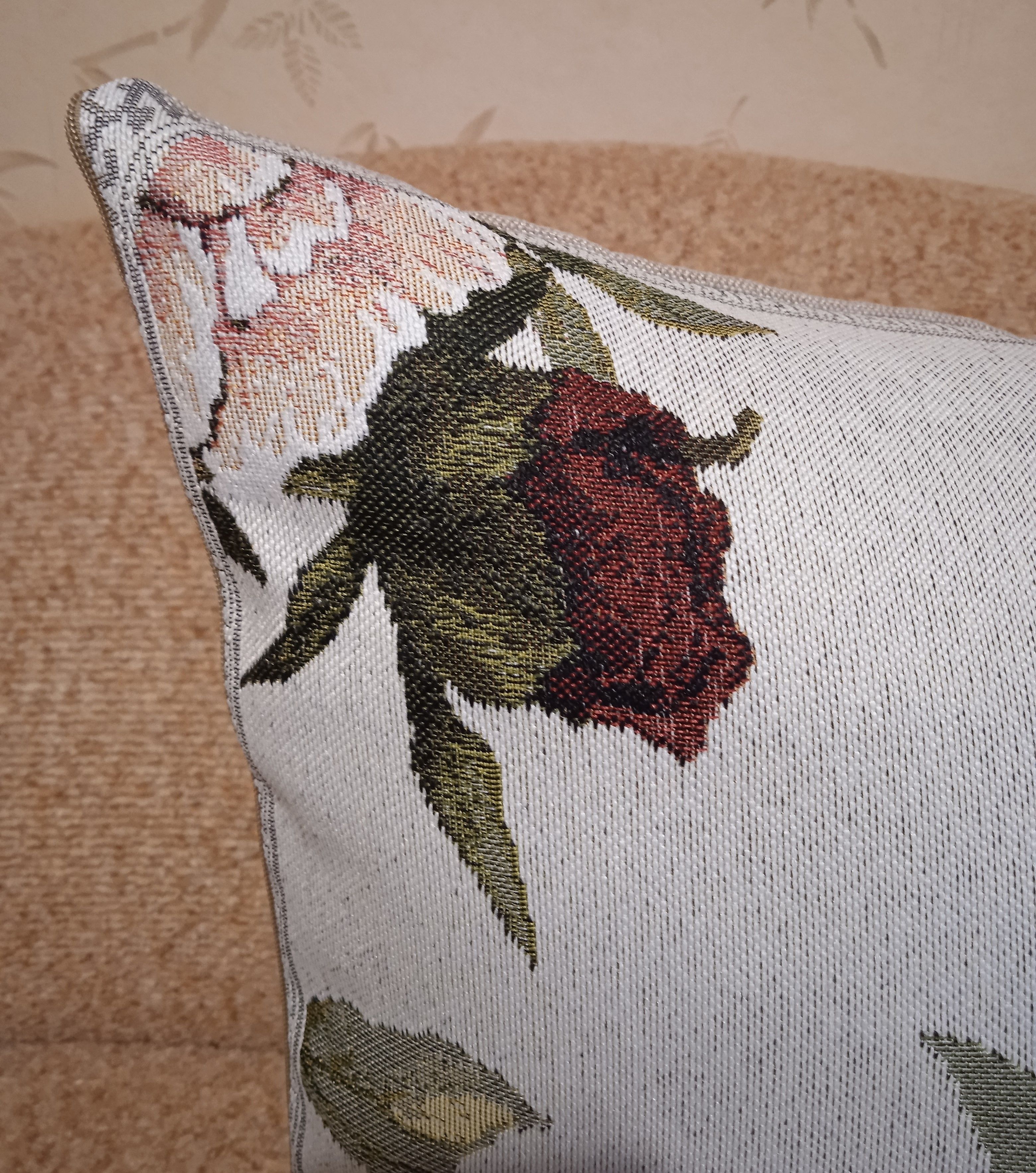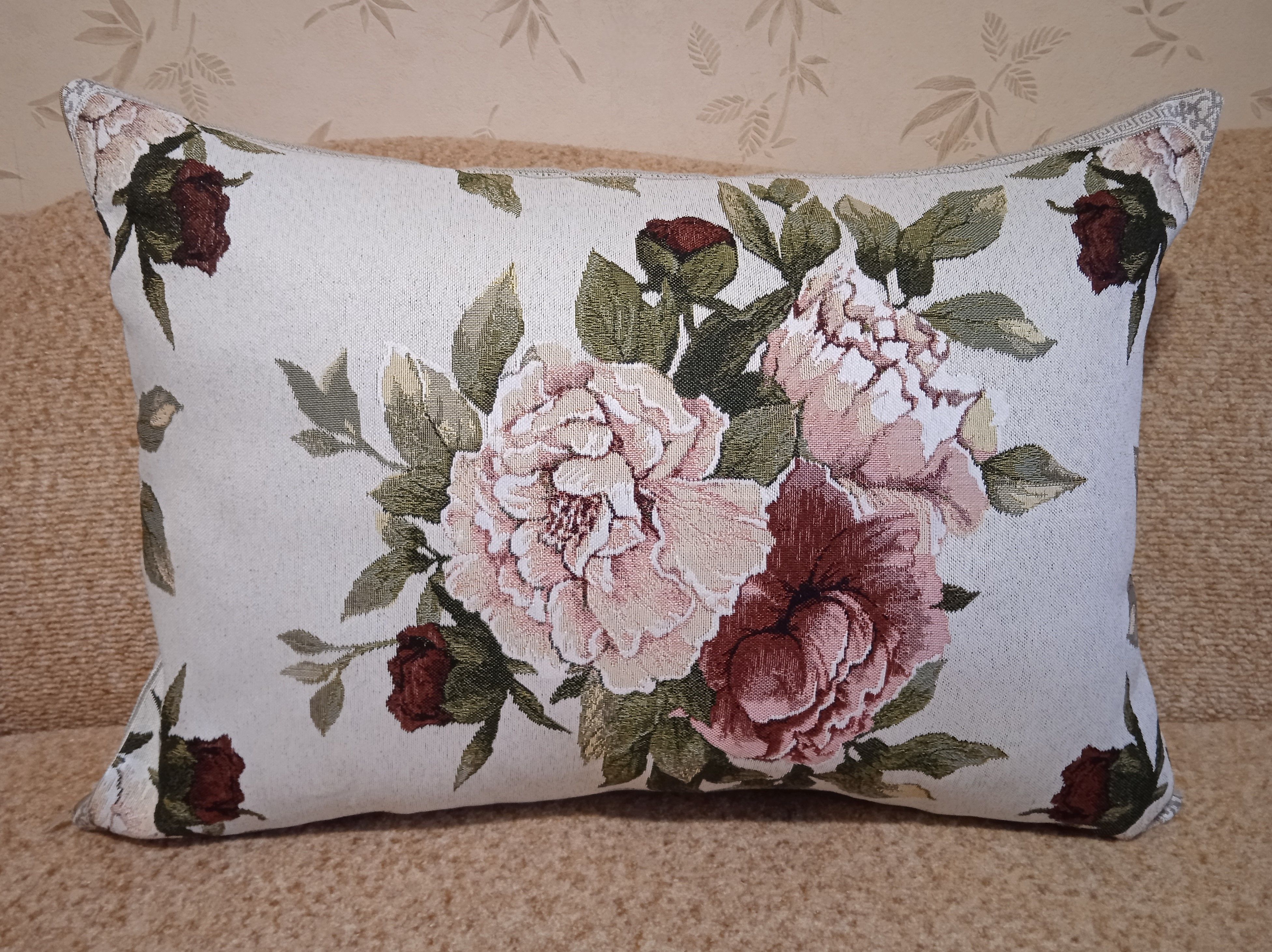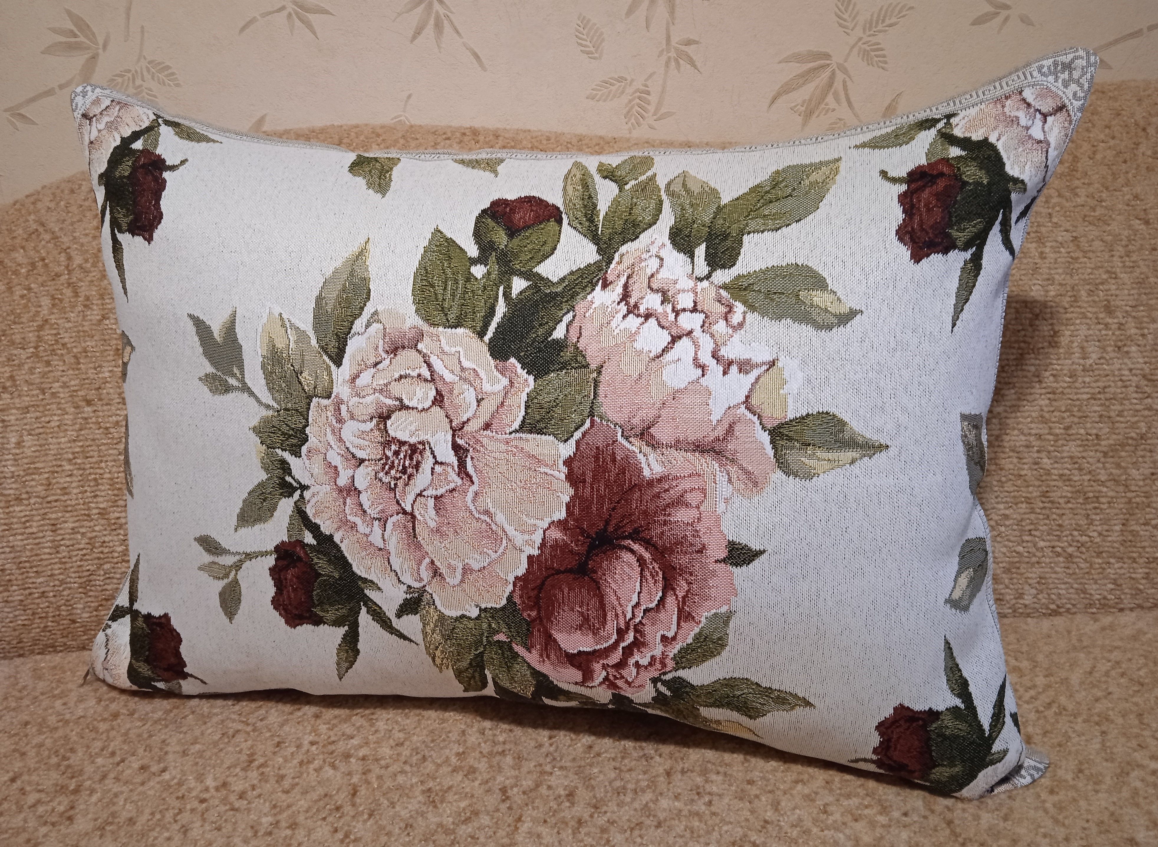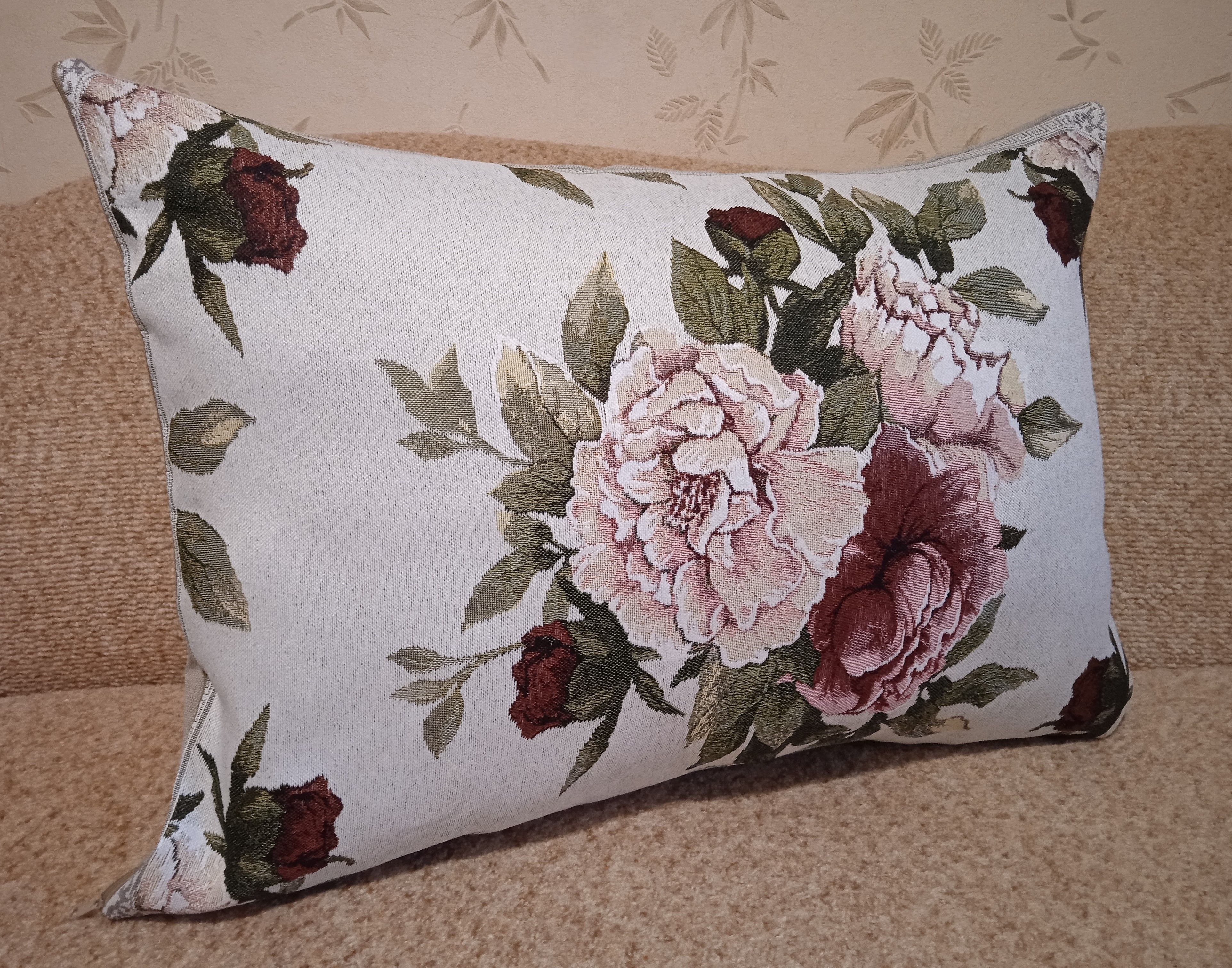 Гобеленовый чехол для декоративной подушки. Размер чехла: 50x70 см. производство Россия. Изделие собственного производства сшито из отечественной жаккардовой ткани. Задняя часть выполнена из мебельной рогожки так же Российского производства. Все ткани используемые для производства декоративного чехла производятся с соблюдением ТУ и ГОСТ Р.Ф. Собственное швейное производство позволяет контролировать качество продукции на всех этапах до поступления на склад и предлагать покупателям товары высокого качества по выгодным ценам. Состав ткани 100% полиэстер. Плотность гобелена 380 г/кв.м. Чехол подходит для подушек размером 70х50 см. Продается без подушки-наполнителя. Подушку-наполнитель так же можно купит у нас. Размер чехла может отличаться от заявленного +/- 2 см. Допускается деликатная машинная стирка при температуре 30 градусов. Гладить при средней температуре.