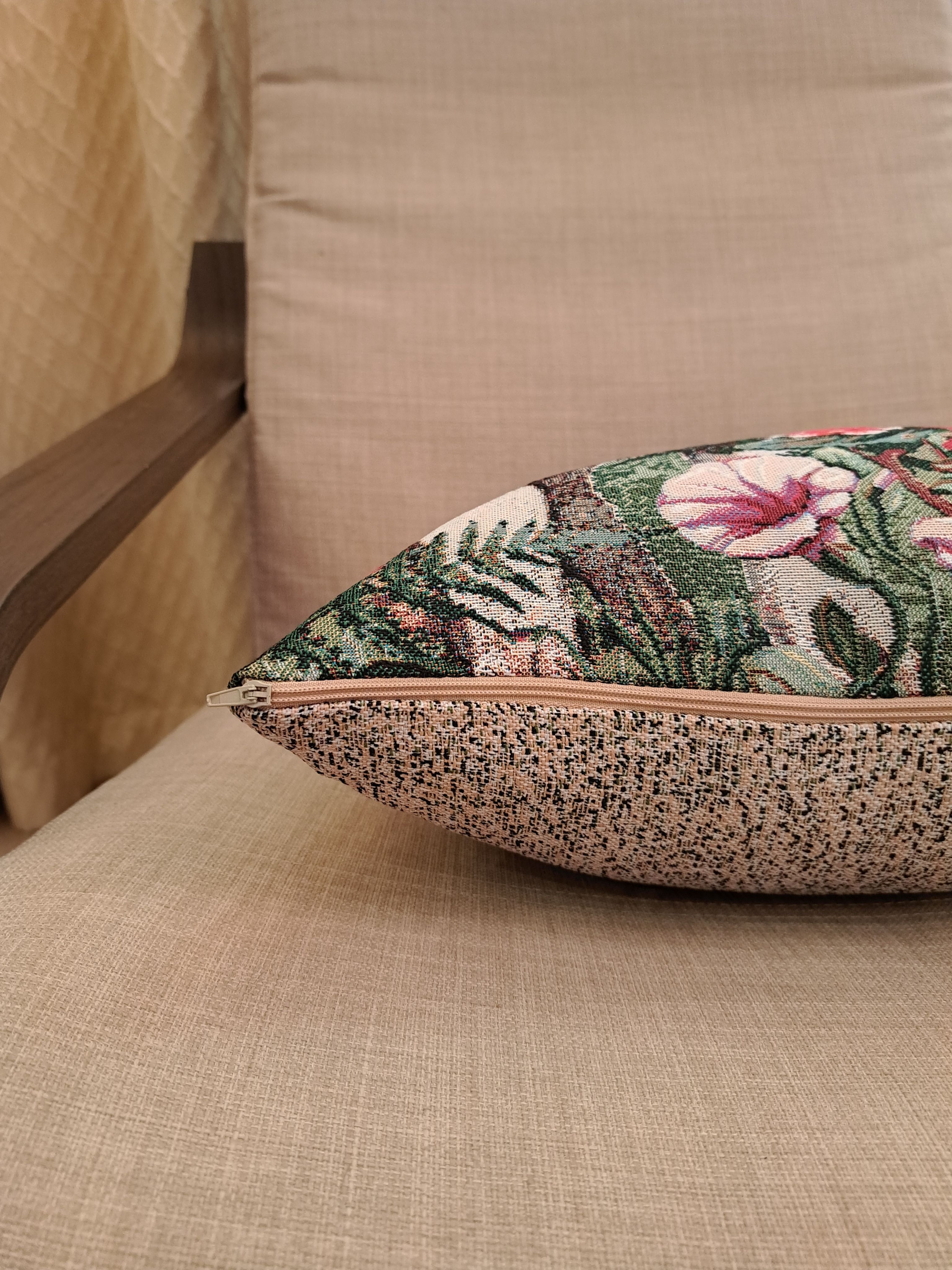 Гобеленовая наволочка для декоративной подушки. Размер наволочки: 38x38см. производство Россия. Изделие собственного производства сшито из отечественной жаккардовой ткани. Задняя часть выполнена из мебельной рогожки так же Российского производства. Все ткани используемые для производства декоративной наволочки производятся с соблюдением ТУ и ГОСТ РФ. Собственное швейное производство позволяет контролировать качество продукции на всех этапах до поступления на склад и предлагать покупателям товары высокого качества по выгодным ценам. Состав ткани 100% полиэстер. Плотность гобелена 380 г/кв.м. Наволочка подходит для подушек размером 40х40 см. Продается без подушки-наполнителя. Подушку-наполнитель так же можно купит у нас. Размер наволочки может отличаться от заявленного +/- 2 см. Допускается деликатная машинная стирка при температуре 30 градусов. Гладить при средней температуре.