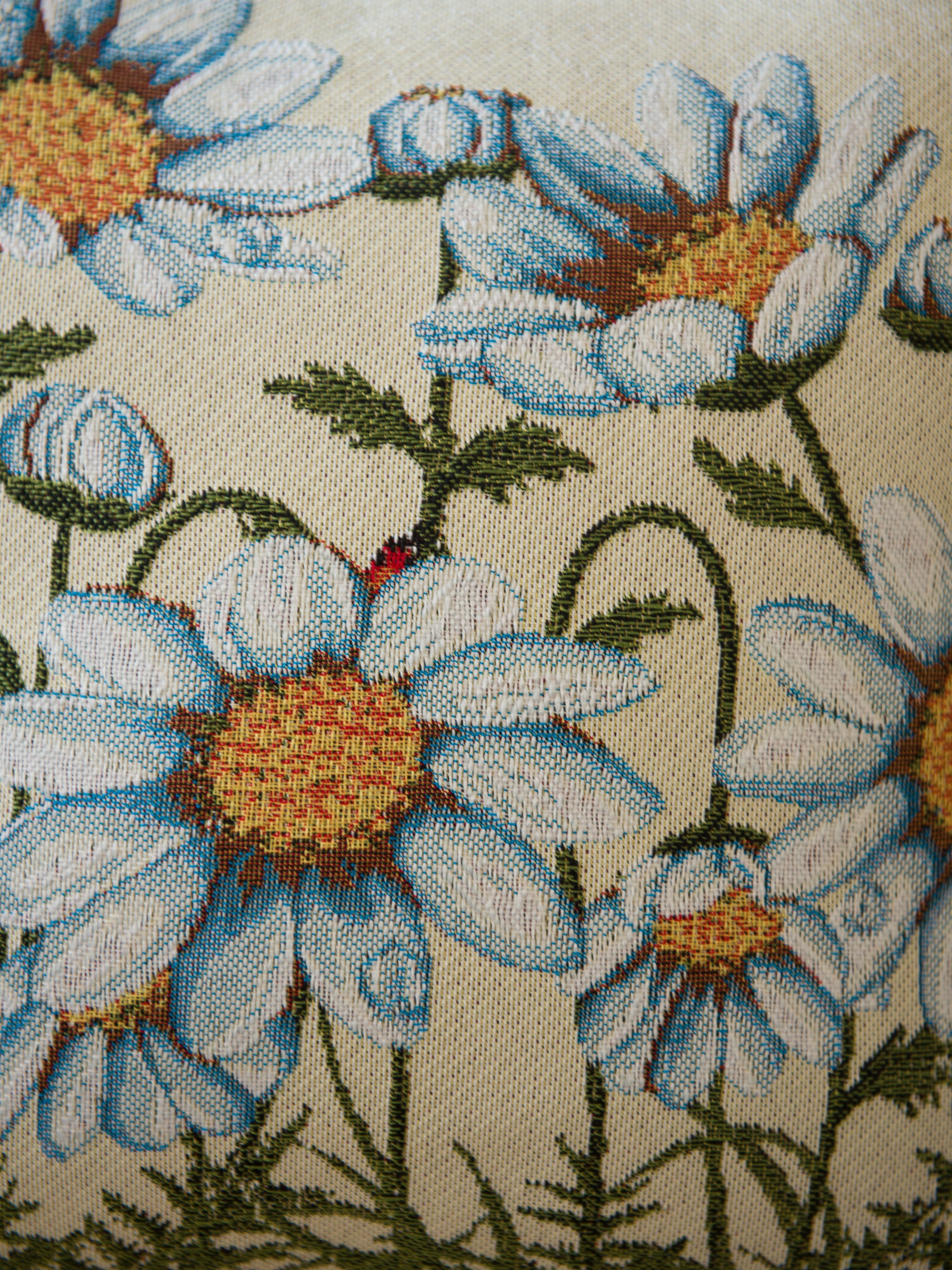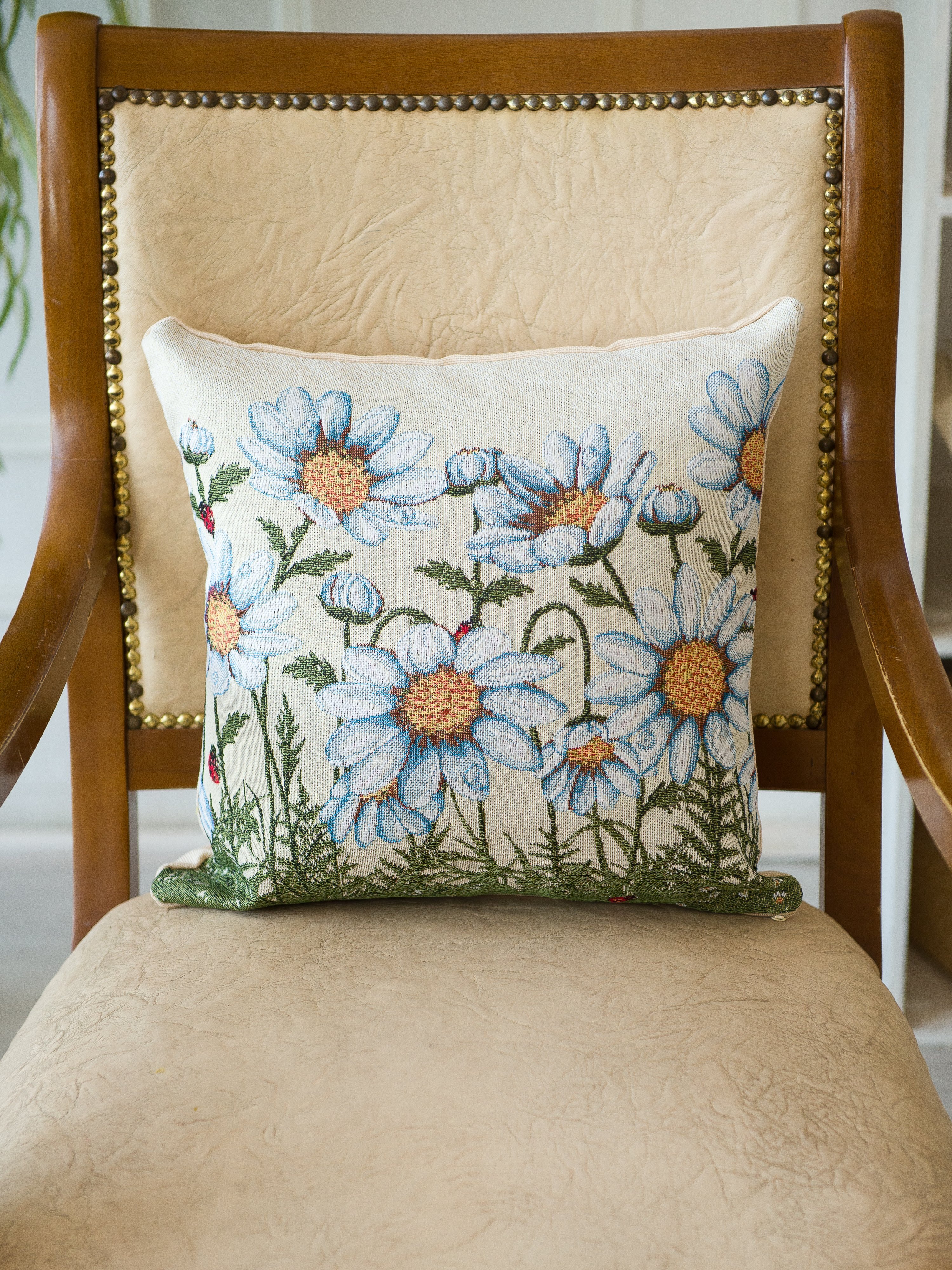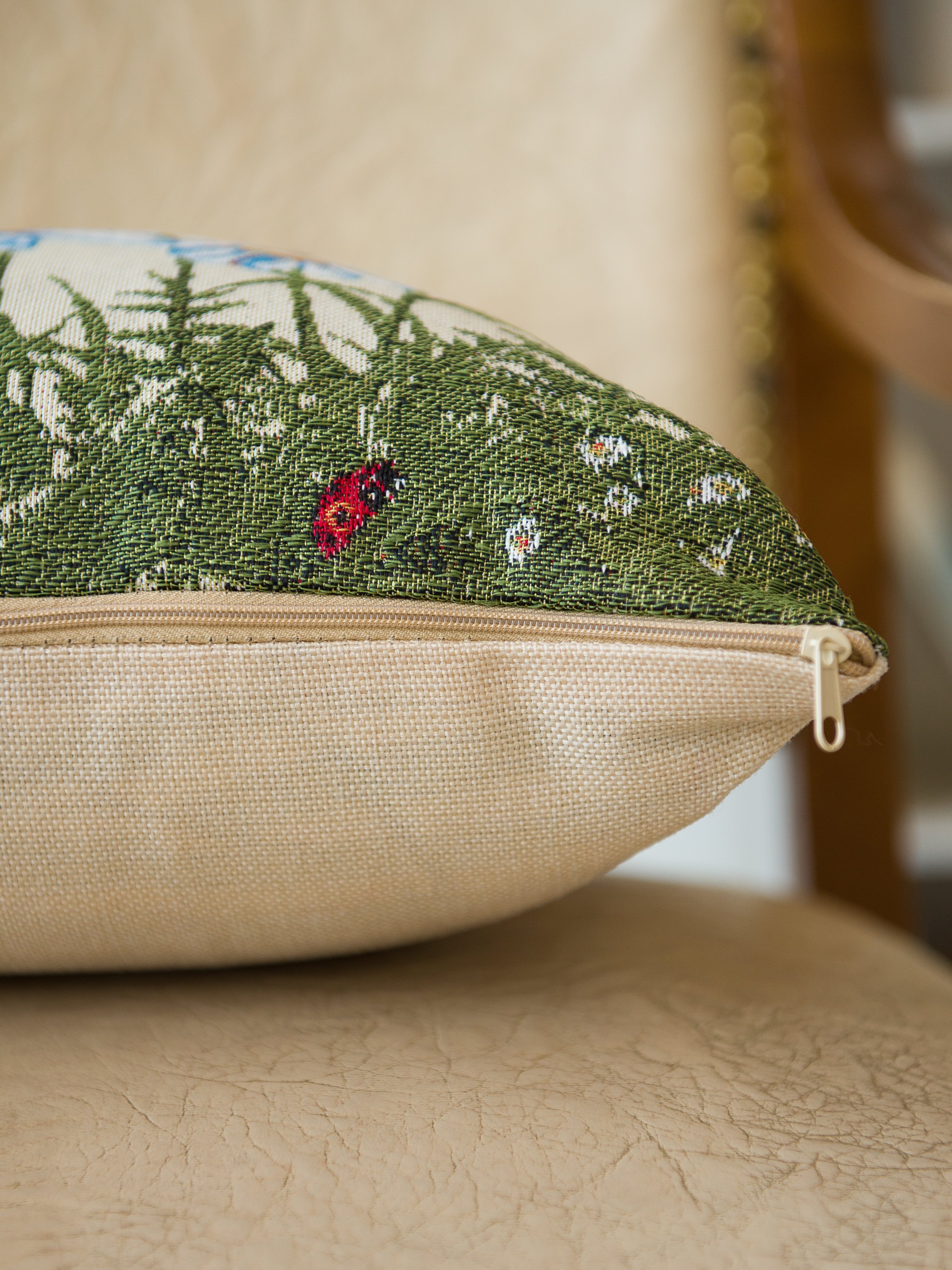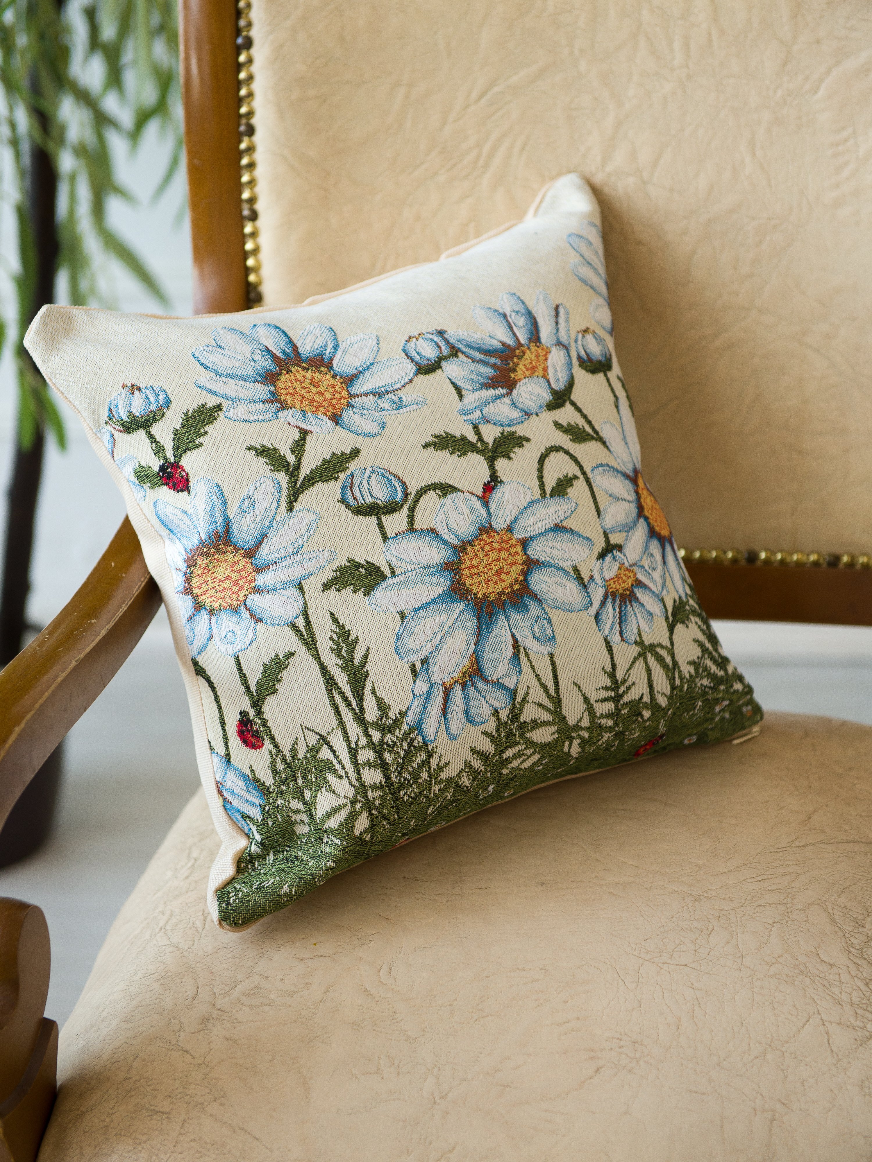 Гобеленовая наволочка для декоративной подушки. Размер наволочки: 38x38см. производство Россия. Изделие собственного производства сшито из отечественной жаккардовой ткани. Задняя часть выполнена из мебельной рогожки так же Российского производства. Все ткани используемые для производства декоративной наволочки производятся с соблюдением ТУ и ГОСТ Р.Ф. Собственное швейное производство позволяет контролировать качество продукции на всех этапах до поступления на склад и предлагать покупателям товары высокого качества по выгодным ценам. Состав ткани 100% полиэстер. Плотность гобелена 380 г/кв.м. Наволочка подходит для подушек размером от 37 до 40 см. Продается без подушки-наполнителя. Подушку-наполнитель так же можно купит у нас. Размер наволочки может отличаться от заявленного +/- 2 см. Допускается деликатная машинная стирка при температуре 30 градусов. Гладить при средней температуре.