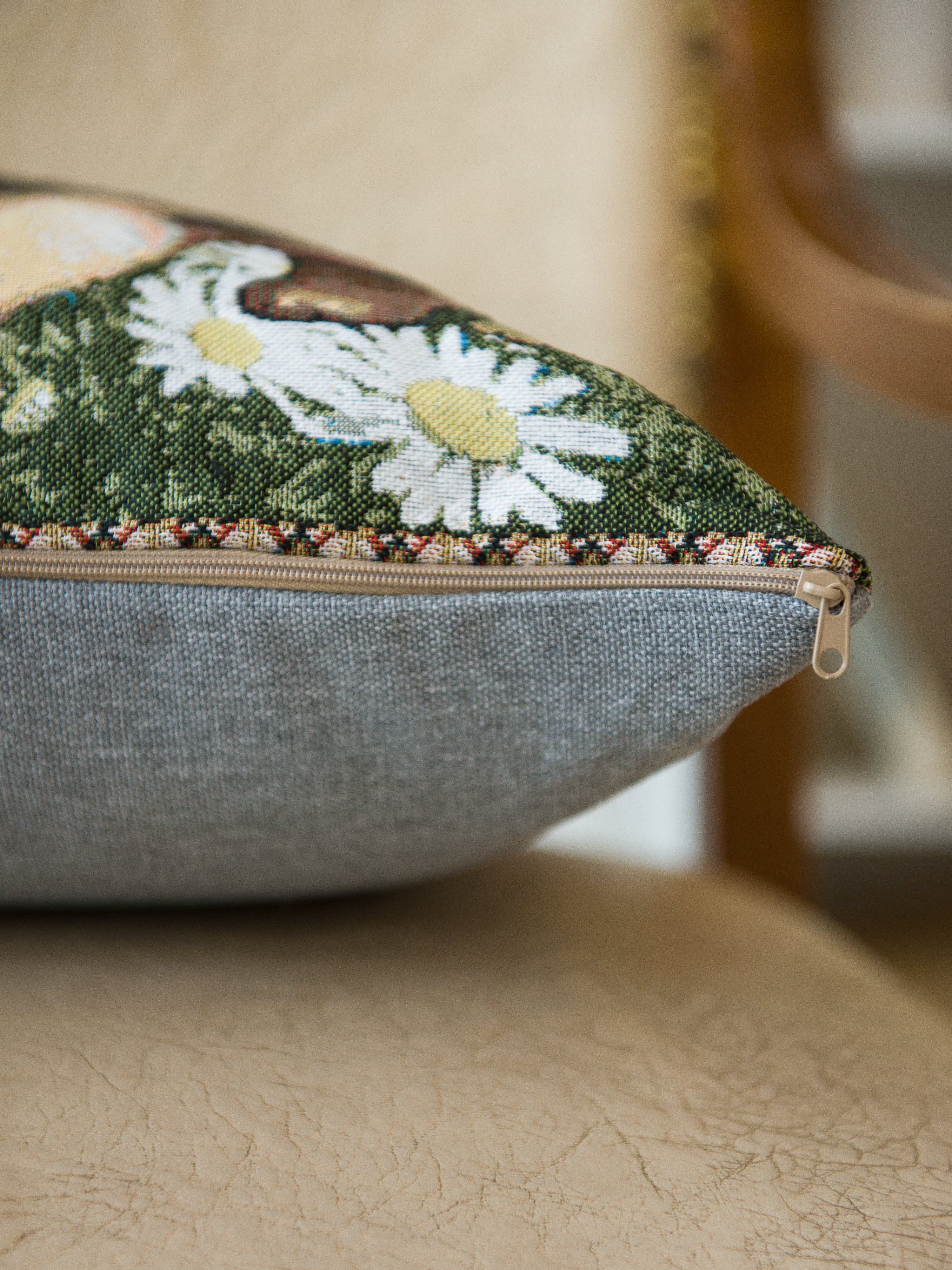 Гобеленовая наволочка для декоративной подушки. Размер наволочки: 38x38см. производство Россия. Изделие собственного производства сшито из отечественной жаккардовой ткани. Задняя часть выполнена из мебельной рогожки так же Российского производства. Все ткани используемые для производства декоративной наволочки производятся с соблюдением ТУ и ГОСТ Р.Ф. Собственное швейное производство позволяет контролировать качество продукции на всех этапах до поступления на склад и предлагать покупателям товары высокого качества по выгодным ценам. Состав ткани 100% полиэстер. Плотность гобелена 380 г/кв.м. Наволочка подходит для подушек размером от 36 до 40 см. Продается без подушки-наполнителя. Подушку-наполнитель так же можно купит у нас. Размер наволочки может отличаться от заявленного +/- 2 см. Допускается деликатная машинная стирка при температуре 30 градусов. Гладить при средней температуре.