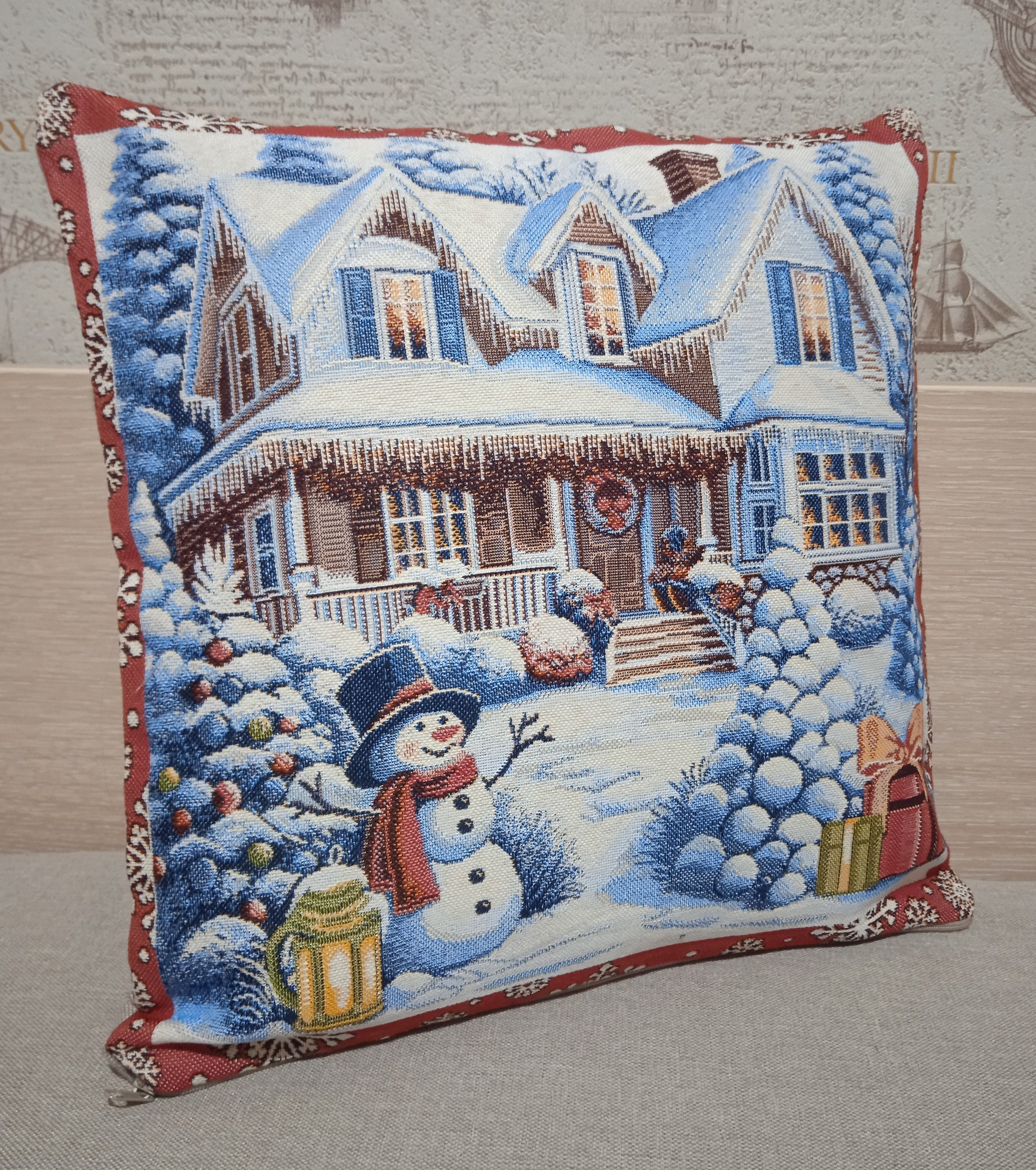 Гобеленовая декоративная наволочка подойдет для оформления домашнего интерьера в Новогодние праздники. Можно использовать для украшения гостиной, спальни, детской комнаты, кафе, отеля, гостиницы. Можно использовать как дополнительные подушки на диван, кресло, кровать, дачная лавка на веранде. Отличный подарок или сувенир для родных и близких, друзей, коллег по работе, маме, бабушке, теще, тете, сестре, сослуживцам на новый год, новоселье, день рождения, корпоративный подарок, 8 марта.