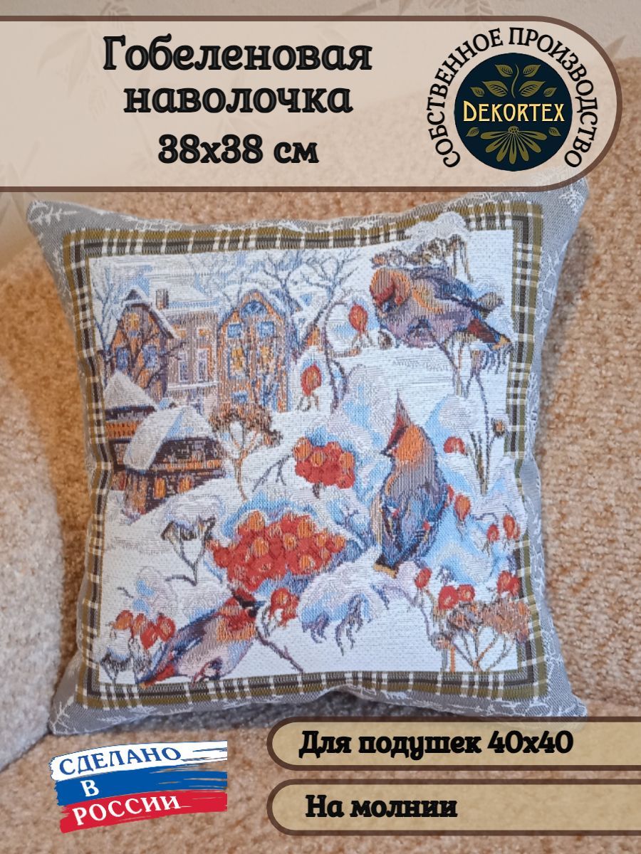 Гобеленовая наволочка для декоративной подушки. Размер наволочки: 38x38см. производство Россия. Изделие собственного производства сшито из отечественной жаккардовой ткани. Задняя часть выполнена из мебельной рогожки так же Российского производства. Все ткани используемые для производства декоративной наволочки производятся с соблюдением ТУ и ГОСТ РФ. Собственное швейное производство позволяет контролировать качество продукции на всех этапах до поступления на склад и предлагать покупателям товары высокого качества по выгодным ценам. Состав ткани 100% полиэстер с добавлением люрекса. Плотность гобелена 380 г/кв.м. Наволочка подходит для подушек размером 40х40 см. Продается без подушки-наполнителя. Подушку-наполнитель так же можно купит у нас. Размер наволочки может отличаться от заявленного +/- 2 см. Допускается деликатная машинная стирка при температуре 30 градусов. Гладить при средней температуре.
