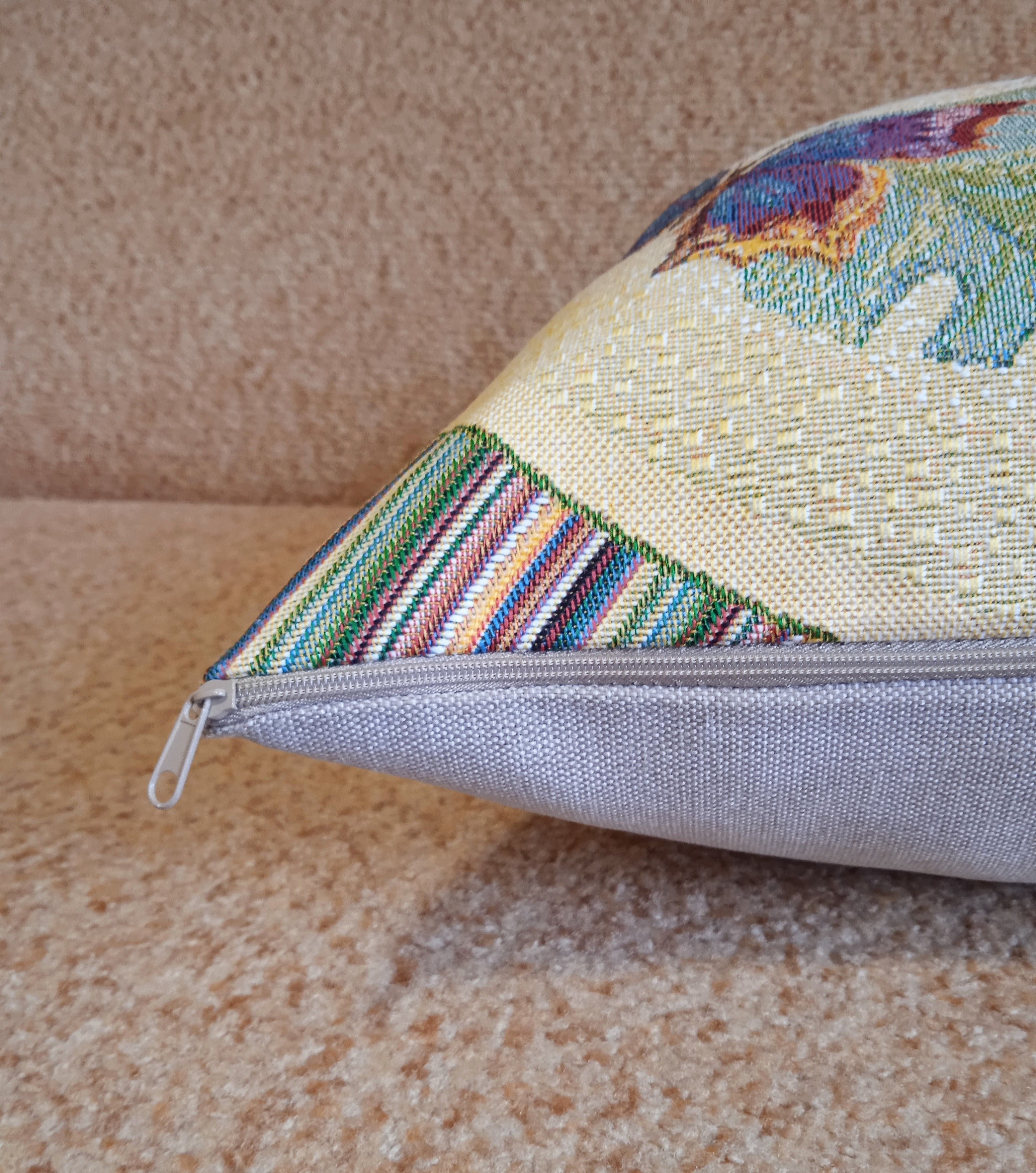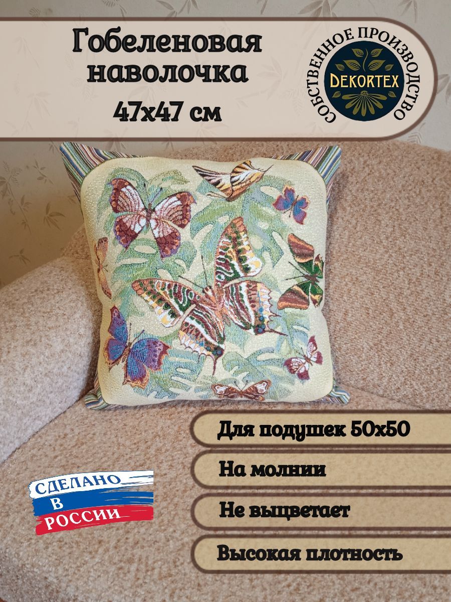 Гобеленовая наволочка для декоративной подушки. Размер наволочки: 47x47см. производство Россия. Изделие собственного производства сшито из отечественной жаккардовой ткани. Задняя часть выполнена из мебельной рогожки так же Российского производства. Все ткани используемые для производства декоративной наволочки производятся с соблюдением ТУ и ГОСТ РФ. Собственное швейное производство позволяет контролировать качество продукции на всех этапах до поступления на склад и предлагать покупателям товары высокого качества по выгодным ценам. Состав ткани 100% полиэстер. Плотность гобелена 380 г/кв.м. Наволочка подходит для подушек размером 50х50 см. Продается без подушки-наполнителя. Подушку-наполнитель так же можно купит у нас. Размер наволочки может отличаться от заявленного +/- 2 см. Допускается деликатная машинная стирка при температуре 30 градусов. Гладить при средней температуре.