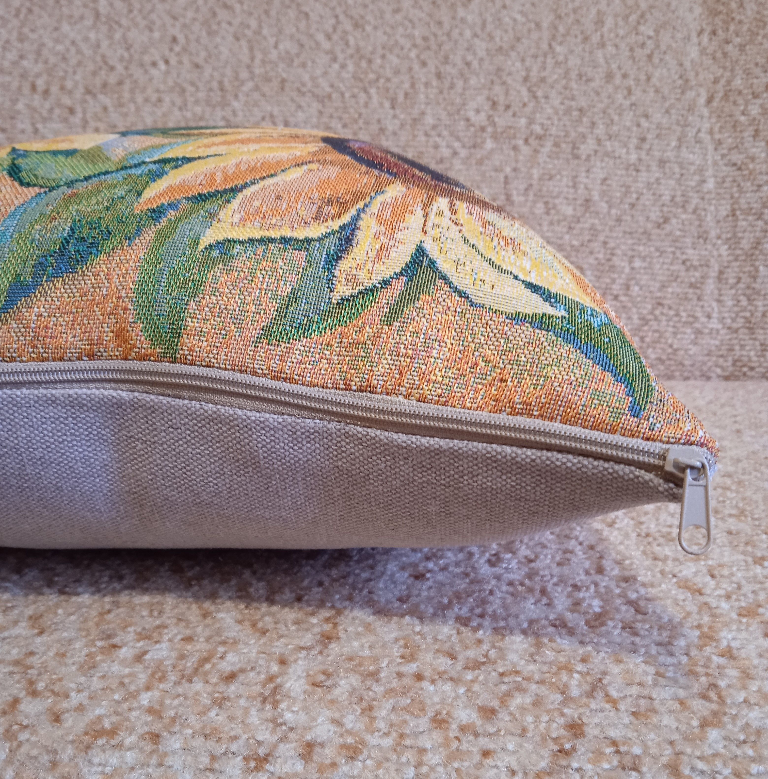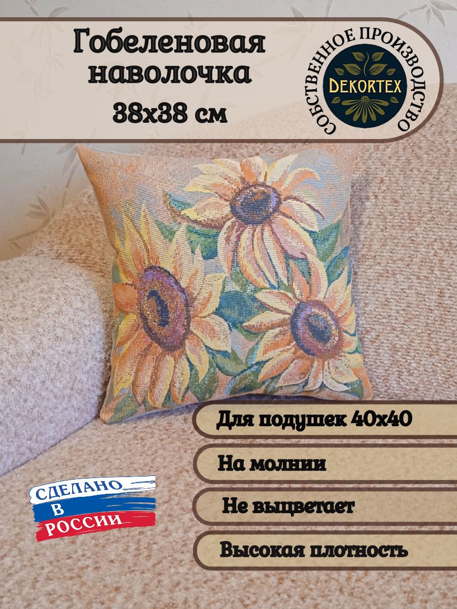 Гобеленовая наволочка для декоративной подушки. Размер наволочки: 38x38см. производство Россия. Изделие собственного производства сшито из отечественной жаккардовой ткани. Задняя часть выполнена из мебельной рогожки так же Российского производства. Все ткани используемые для производства декоративной наволочки производятся с соблюдением ТУ и ГОСТ РФ. Собственное швейное производство позволяет контролировать качество продукции на всех этапах до поступления на склад и предлагать покупателям товары высокого качества по выгодным ценам. Состав гобелена: 60% полиэстер, 40% хлопок. Плотность гобелена 380 г/кв.м. Наволочка подходит для подушек размером 40х40 см. Продается без подушки-наполнителя. Подушку-наполнитель так же можно купит у нас. Размер наволочки может отличаться от заявленного +/- 2 см. Допускается деликатная машинная стирка при температуре 30 градусов. Гладить при средней температуре.