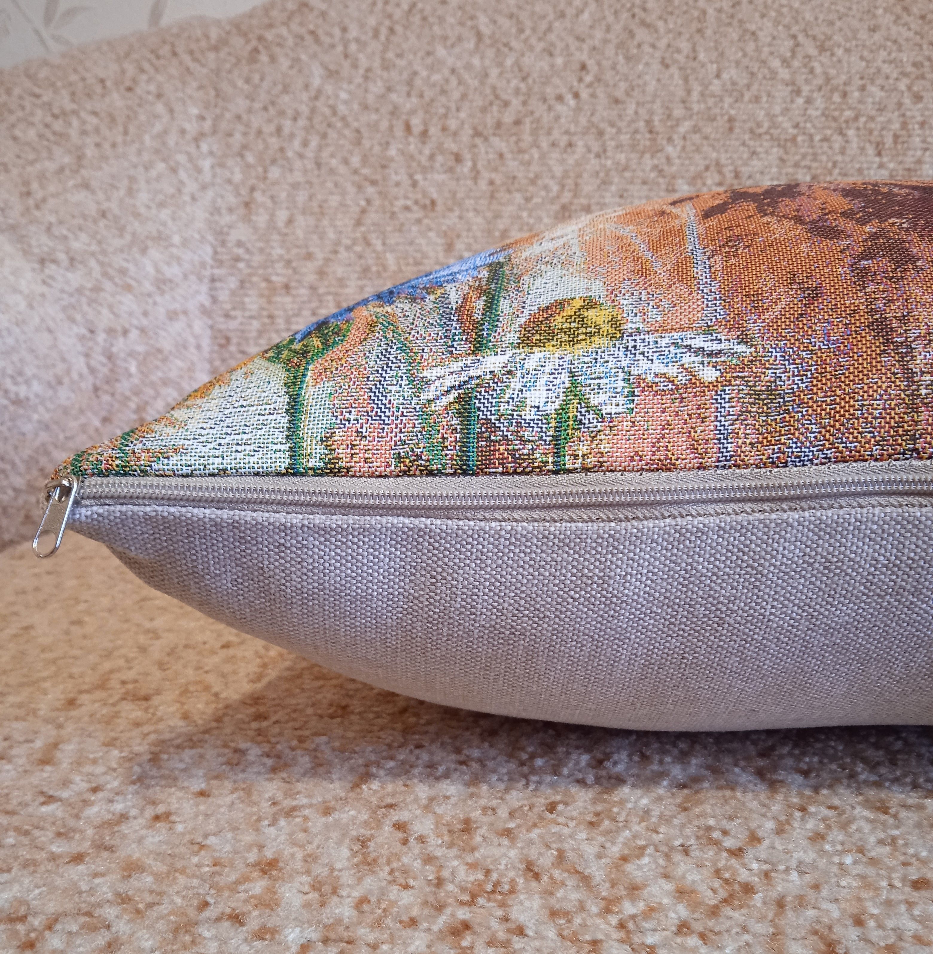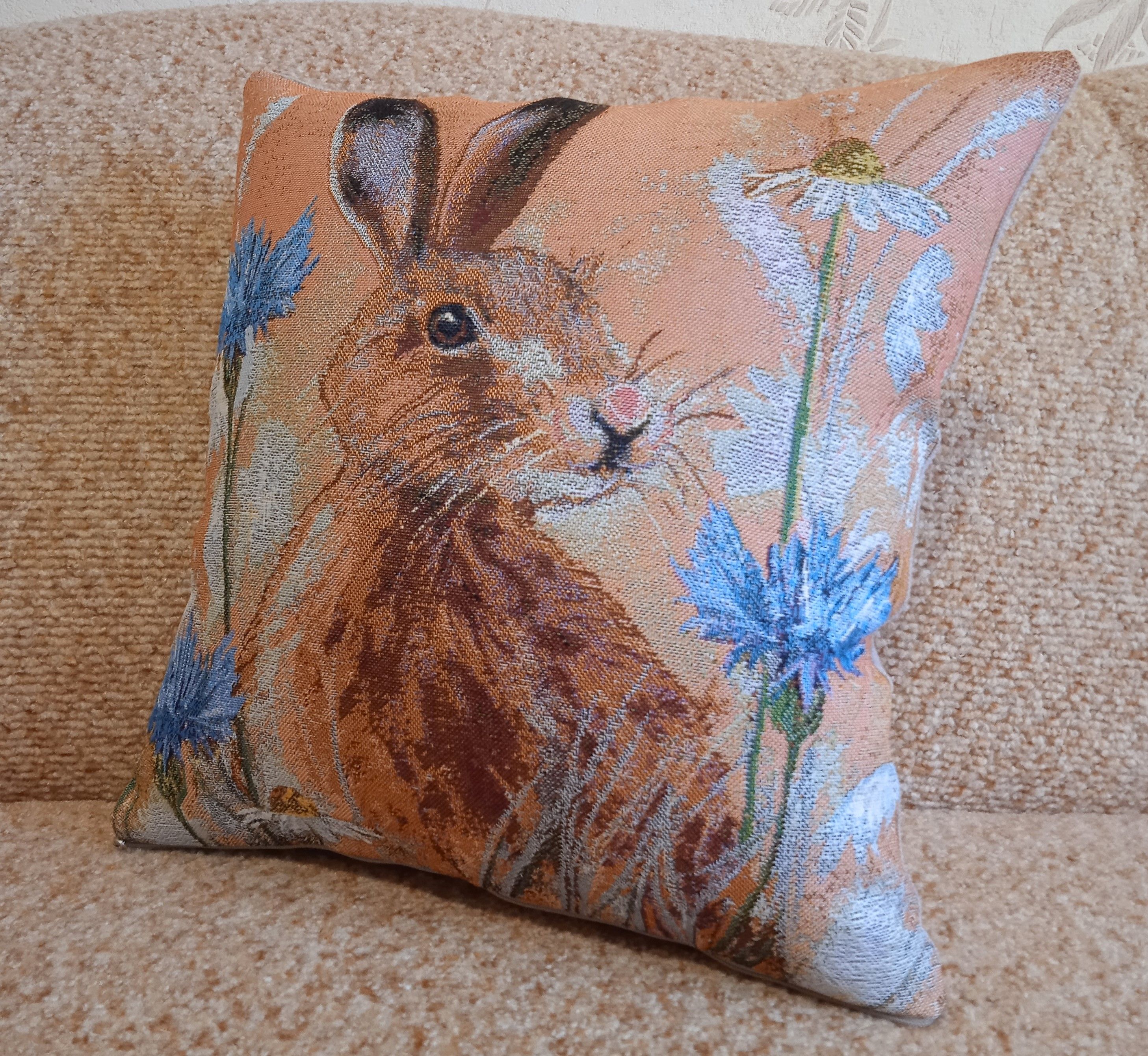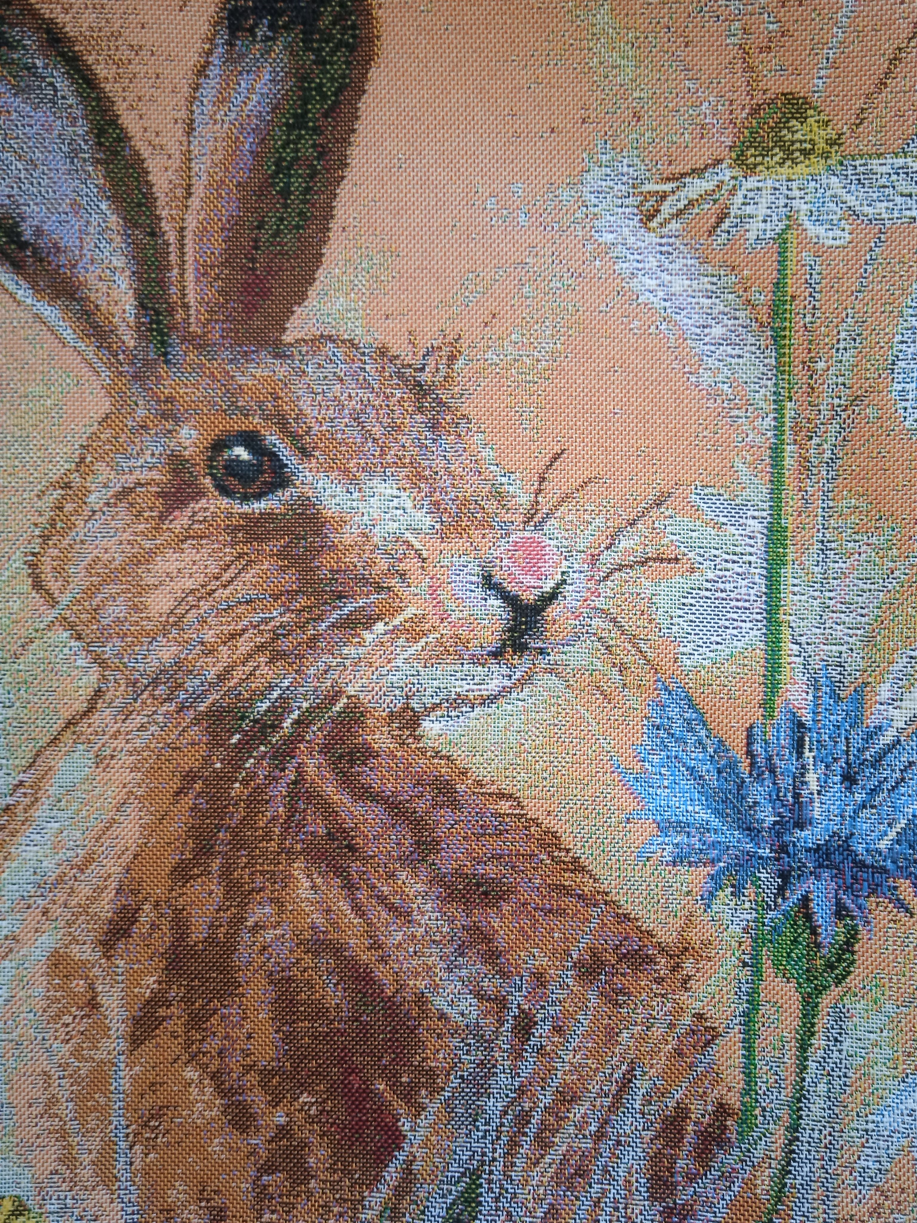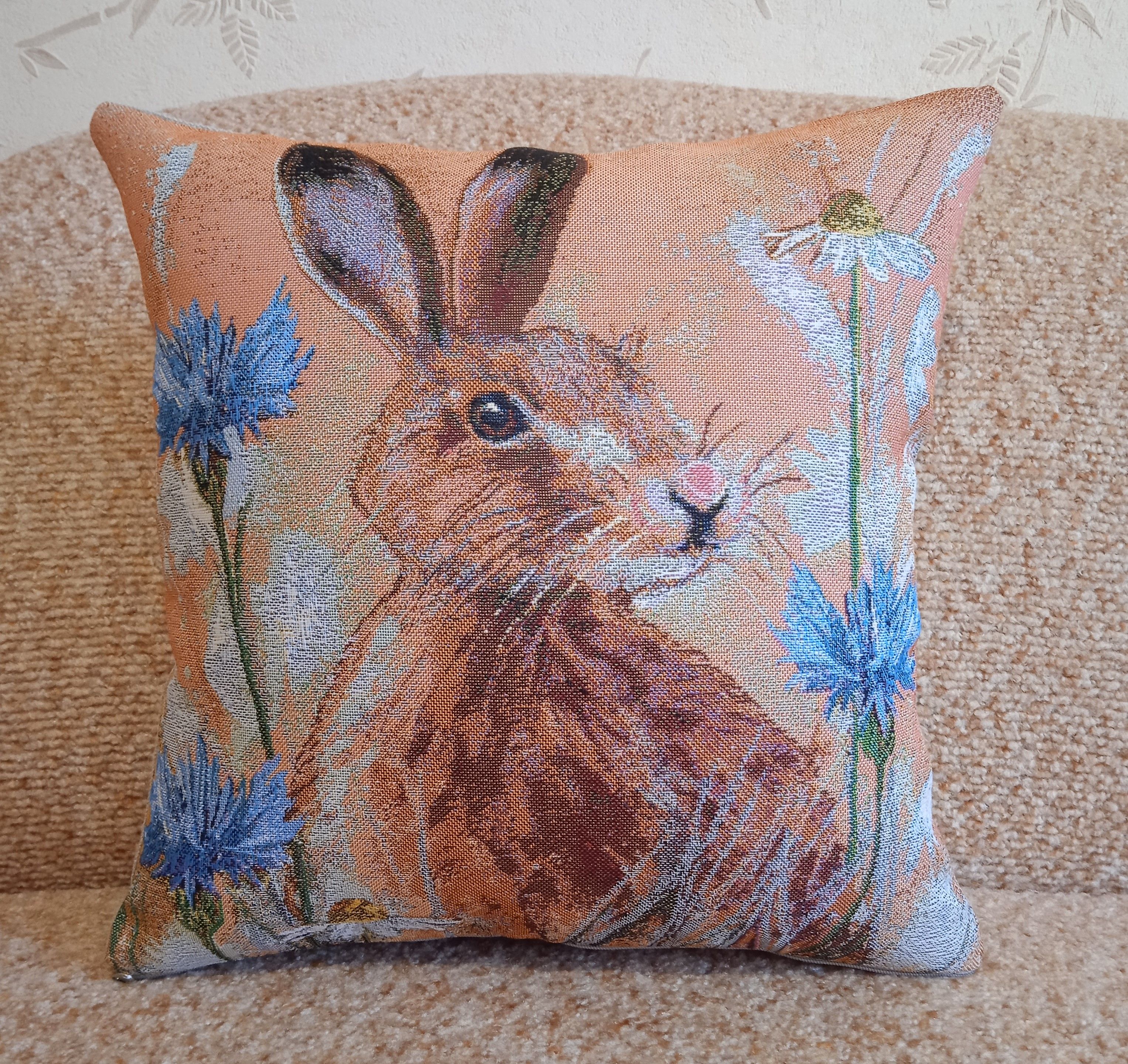 Гобеленовая декоративная наволочка с изображением зайчика на фоне цветов васильков подойдет для оформления домашнего интерьера в Новогодние праздники. Можно использовать для украшения гостиной, спальни, детской комнаты, кафе, отеля, гостиницы. Можно использовать как дополнительные подушки на диван, кресло, кровать, дачная лавка на веранде. Отличный подарок или сувенир для родных и близких, друзей, коллег по работе, маме, бабушке, теще, тете, сестре, сослуживцам на новый год, новоселье, день рождения, корпоративный подарок, 8 марта.