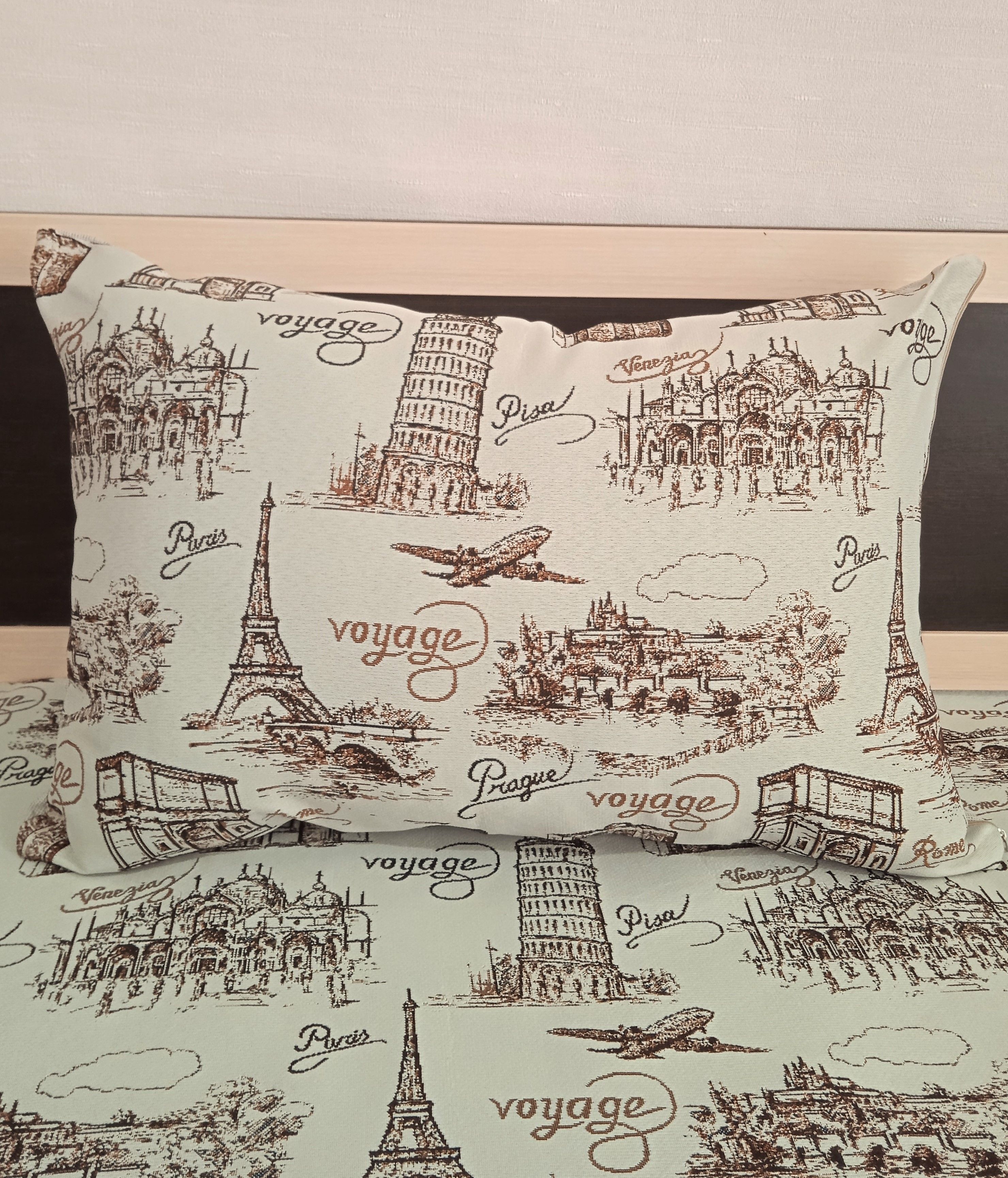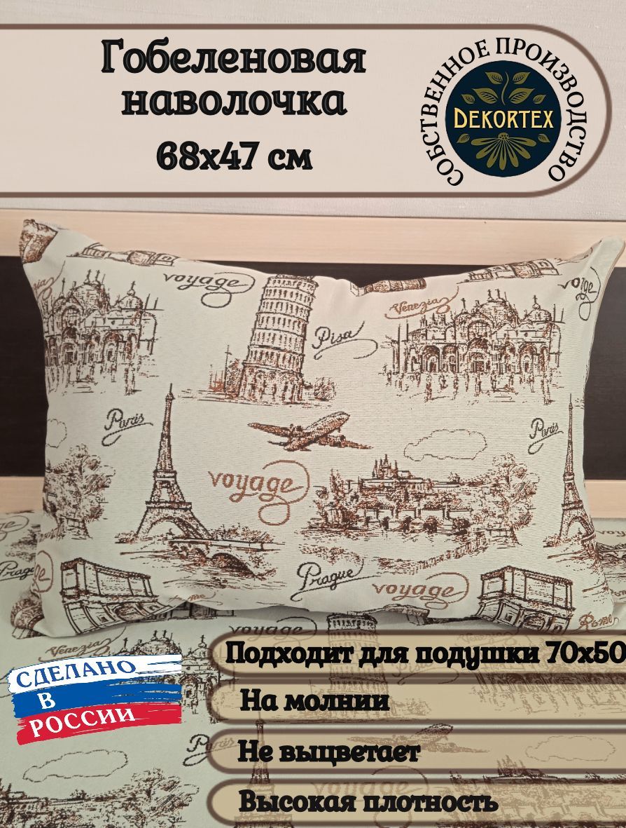 Гобеленовый чехол для декоративной подушки. Размер чехла: 68x47 см. производство Россия. Изделие собственного производства сшито из отечественной жаккардовой ткани. Задняя часть выполнена из мебельной рогожки так же Российского производства. Все ткани используемые для производства декоративного чехла производятся с соблюдением ТУ и ГОСТ Р.Ф. Собственное швейное производство позволяет контролировать качество продукции на всех этапах до поступления на склад и предлагать покупателям товары высокого качества по выгодным ценам. Состав ткани 100% полиэстер. Плотность гобелена 380 г/кв.м. Продается без подушки-наполнителя. Подушку-наполнитель так же можно купить у нас. Размер чехла может отличаться от заявленного +/- 2 см. Допускается деликатная машинная стирка при температуре 30 градусов. Гладить при средней температуре.
