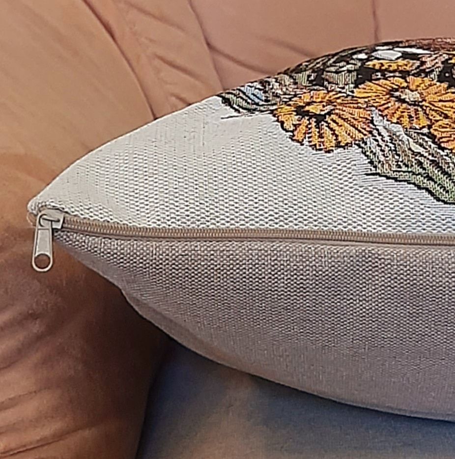 Гобеленовая наволочка для декоративной подушки. Размер наволочки: 47x47см. производство Россия. Изделие собственного производства сшито из отечественной жаккардовой ткани. Задняя часть выполнена из мебельной рогожки так же Российского производства. Все ткани используемые для производства декоративной наволочки производятся с соблюдением ТУ и ГОСТ Р.Ф. Собственное швейное производство позволяет контролировать качество продукции на всех этапах до поступления на склад и предлагать покупателям товары высокого качества по выгодным ценам. Состав ткани 100% полиэстер. Плотность гобелена 380 г/кв.м. Наволочка подходит для подушек размером 50х50 см. Продается без подушки-наполнителя. Подушку-наполнитель так же можно купит у нас. Размер наволочки может отличаться от заявленного +/- 2 см. Допускается деликатная машинная стирка при температуре 30 градусов. Гладить при средней температуре.