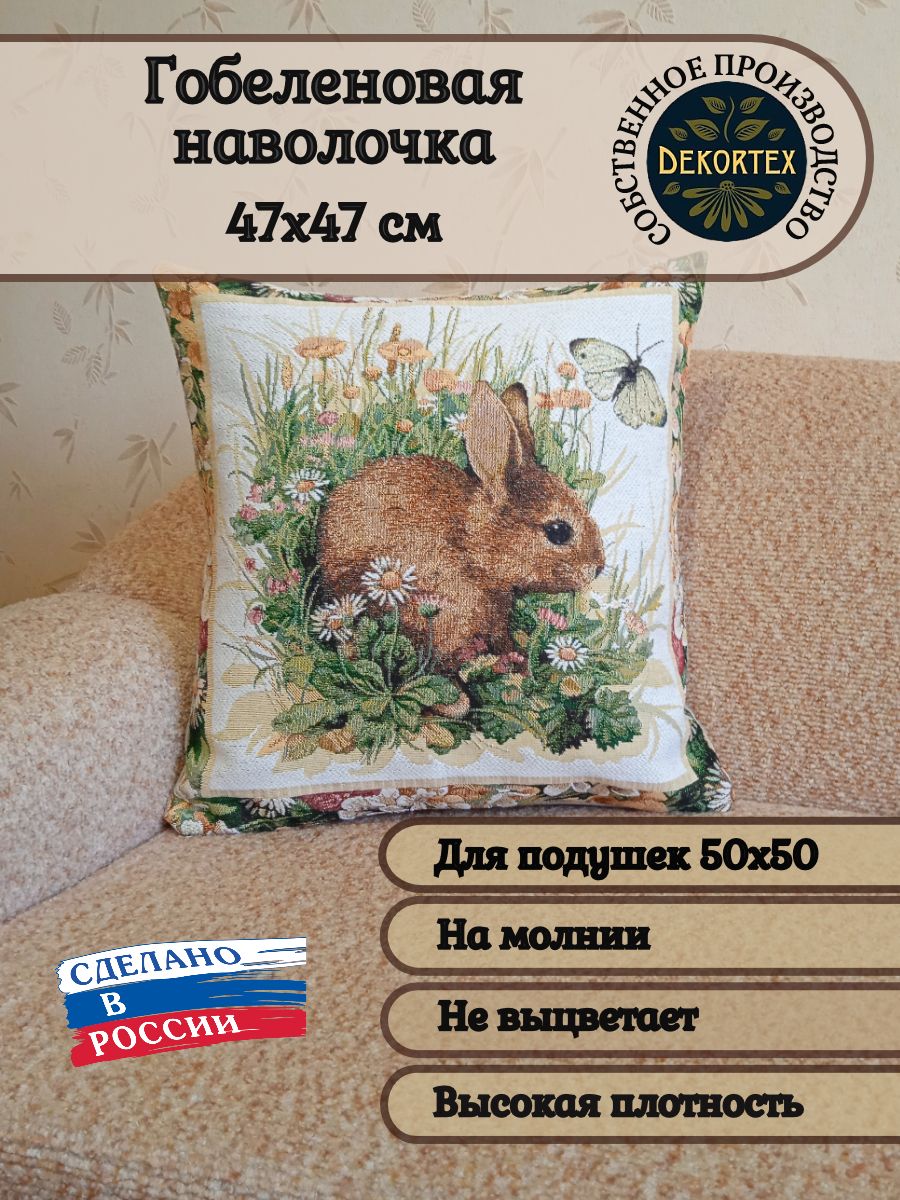Гобеленовый чехол для декоративной подушки. Размер чехла: 47x47см. производство Россия. Изделие собственного производства сшито из отечественной жаккардовой ткани. Задняя часть выполнена из мебельной рогожки так же Российского производства. Все ткани используемые для производства декоративного чехла производятся с соблюдением ТУ и ГОСТ Р.Ф. Собственное швейное производство позволяет контролировать качество продукции на всех этапах до поступления на склад, и предлагать покупателям товары высокого качества по выгодным ценам. Состав ткани 100% полиэстер. Плотность гобелена 380 г/кв.м. Чехол подходит для подушек размером от 45 до 50 см. Продается без подушки-наполнителя. Подушку-наполнитель так же можно купит у нас. Размер чехла может отличаться от заявленного +/- 2 см. Допускается деликатная машинная стирка при температуре 30 градусов. Гладить при средней температуре.