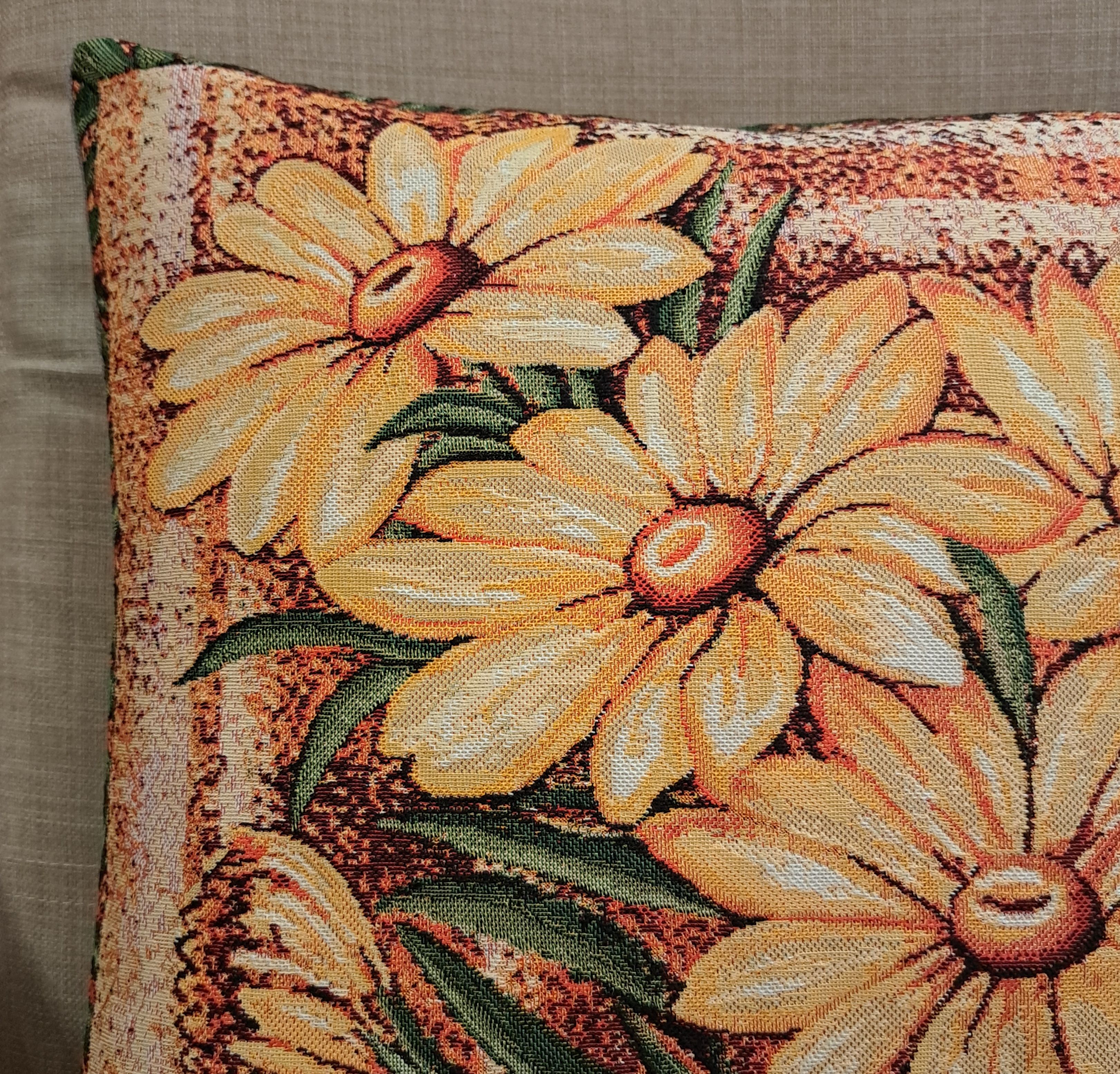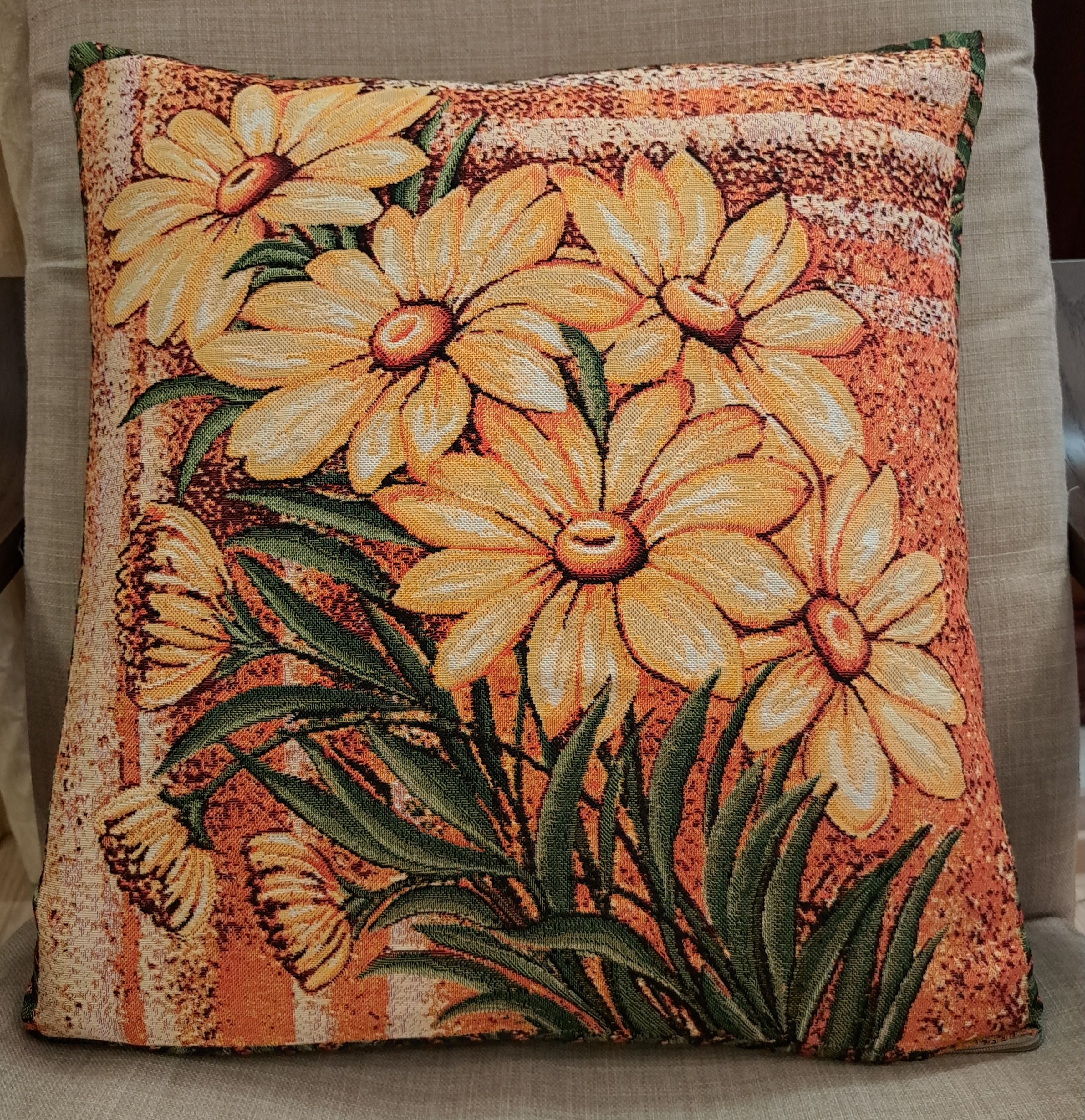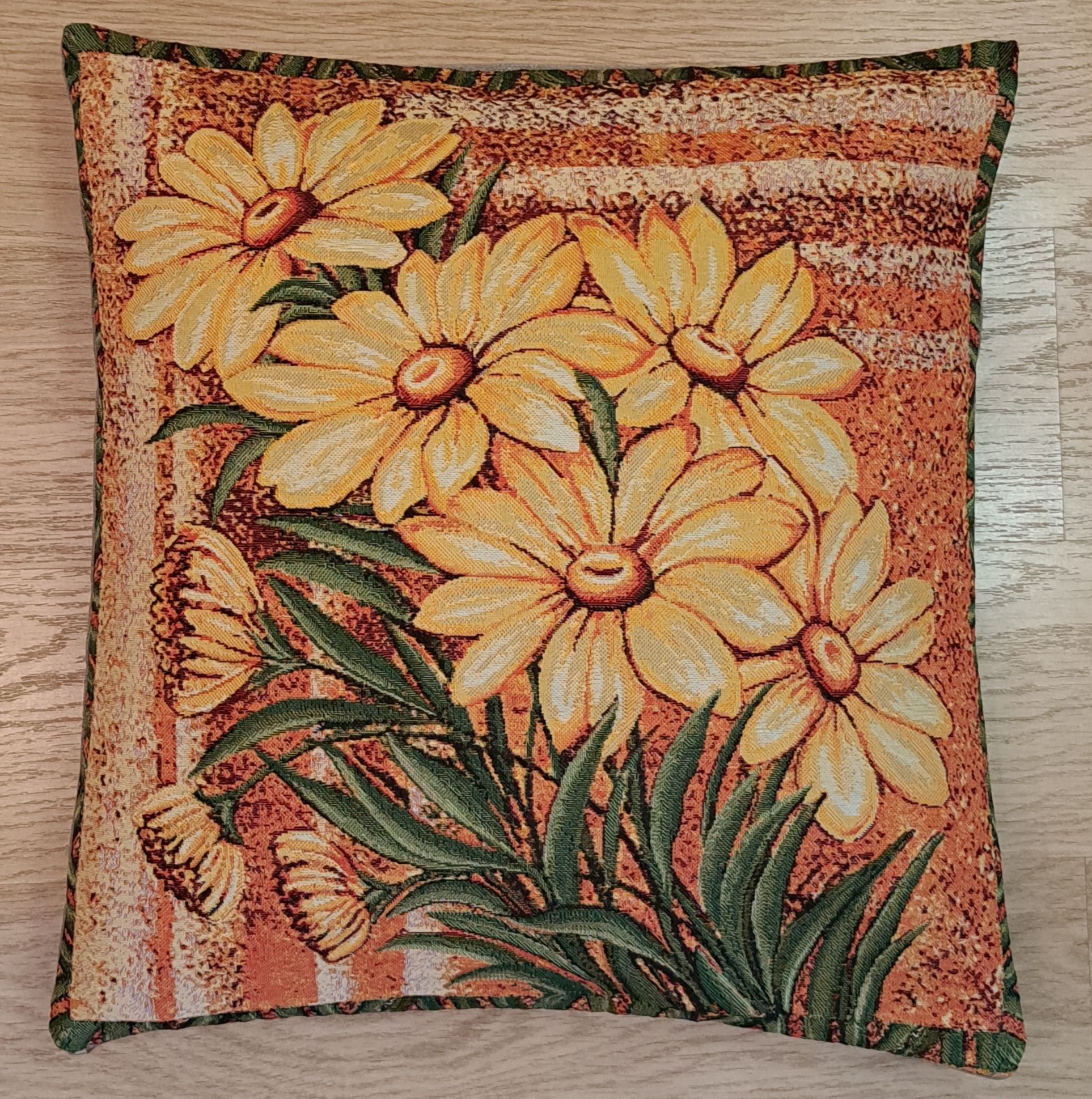 Гобеленовая декоративная наволочка с изображением цветов Желтых Ромашек подойдет для оформления домашнего интерьера в Новогодние праздники. Можно использовать для украшения гостиной, спальни, детской комнаты, кафе, отеля, гостиницы. Можно использовать как дополнительные подушки на диван, кресло, кровать, дачная лавка на веранде. Отличный подарок или сувенир для родных и близких, друзей, коллег по работе, маме, бабушке, теще, тете, сестре, сослуживцам на новый год, новоселье, день рождения, корпоративный подарок, 8 марта.