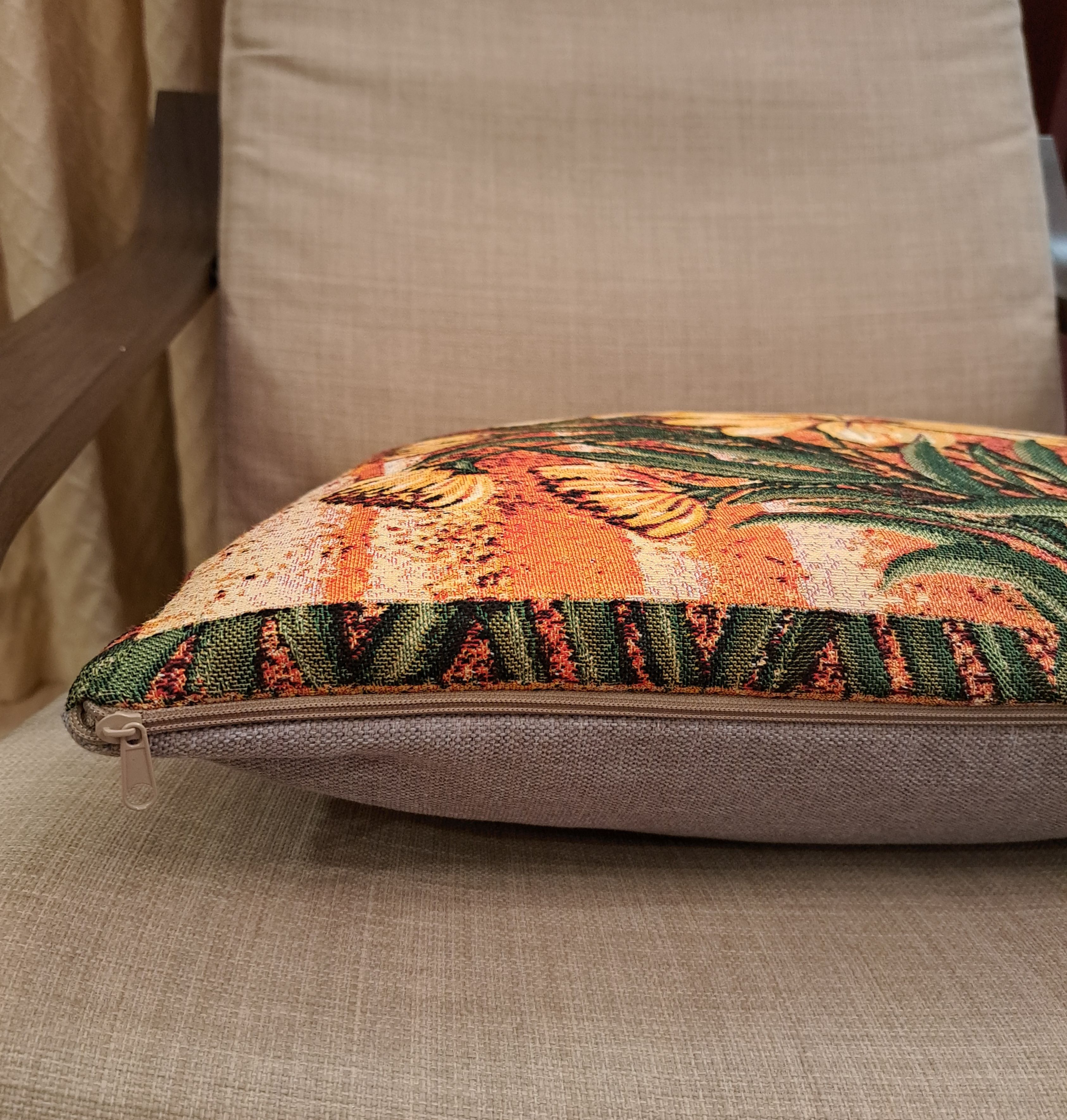 Гобеленовая наволочка для декоративной подушки. Размер наволочки: 47x47см. производство Россия. Изделие собственного производства сшито из отечественной жаккардовой ткани. Задняя часть выполнена из мебельной рогожки так же Российского производства. Все ткани используемые для производства декоративной наволочки производятся с соблюдением ТУ и ГОСТ РФ. Собственное швейное производство позволяет контролировать качество продукции на всех этапах до поступления на склад и предлагать покупателям товары высокого качества по выгодным ценам. Состав ткани 100% полиэстер. Плотность гобелена 380 г/кв.м. Наволочка подходит для подушек размером 50х50 см. Продается без подушки-наполнителя. Подушку-наполнитель так же можно купит у нас. Размер наволочки может отличаться от заявленного +/- 2 см. Допускается деликатная машинная стирка при температуре 30 градусов. Гладить при средней температуре.