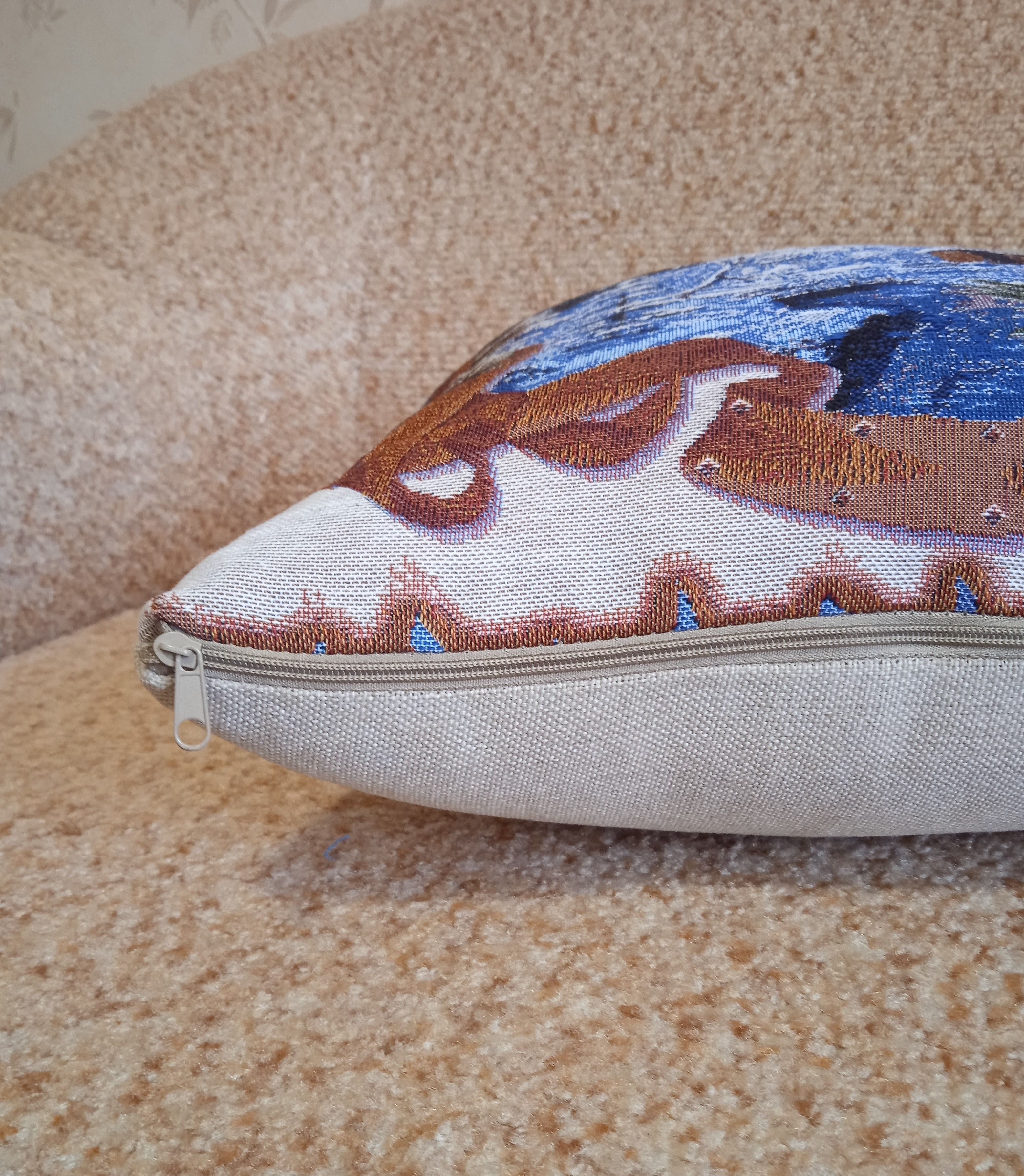 Гобеленовая наволочка для декоративной подушки. Размер наволочки: 38x38см. производство Россия. Изделие собственного производства сшито из отечественной жаккардовой ткани. Задняя часть выполнена из мебельной рогожки так же Российского производства. Все ткани используемые для производства декоративной наволочки производятся с соблюдением ТУ и ГОСТ РФ. Собственное швейное производство позволяет контролировать качество продукции на всех этапах до поступления на склад и предлагать покупателям товары высокого качества по выгодным ценам. Состав ткани 100% полиэстер. Плотность гобелена 380 г/кв.м. Наволочка подходит для подушек размером 40х40 см. Продается без подушки-наполнителя. Подушку-наполнитель так же можно купит у нас. Размер наволочки может отличаться от заявленного +/- 2 см. Допускается деликатная машинная стирка при температуре 30 градусов. Гладить при средней температуре.