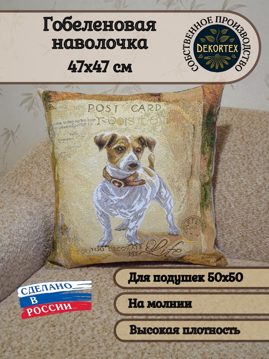 Гобеленовая наволочка для декоративной подушки. Размер наволочки: 47x47см. производство Россия. Изделие собственного производства сшито из отечественной жаккардовой ткани. Задняя часть выполнена из мебельной рогожки так же Российского производства. Все ткани используемые для производства декоративной наволочки производятся с соблюдением ТУ и ГОСТ РФ. Собственное швейное производство позволяет контролировать качество продукции на всех этапах до поступления на склад и предлагать покупателям товары высокого качества по выгодным ценам. Состав ткани 100% полиэстер. Плотность гобелена 380 г/кв.м. Наволочка подходит для подушек размером 50х50 см. Продается без подушки-наполнителя. Подушку-наполнитель так же можно купит у нас. Размер наволочки может отличаться от заявленного +/- 2 см. Допускается деликатная машинная стирка при температуре 30 градусов. Гладить при средней температуре.