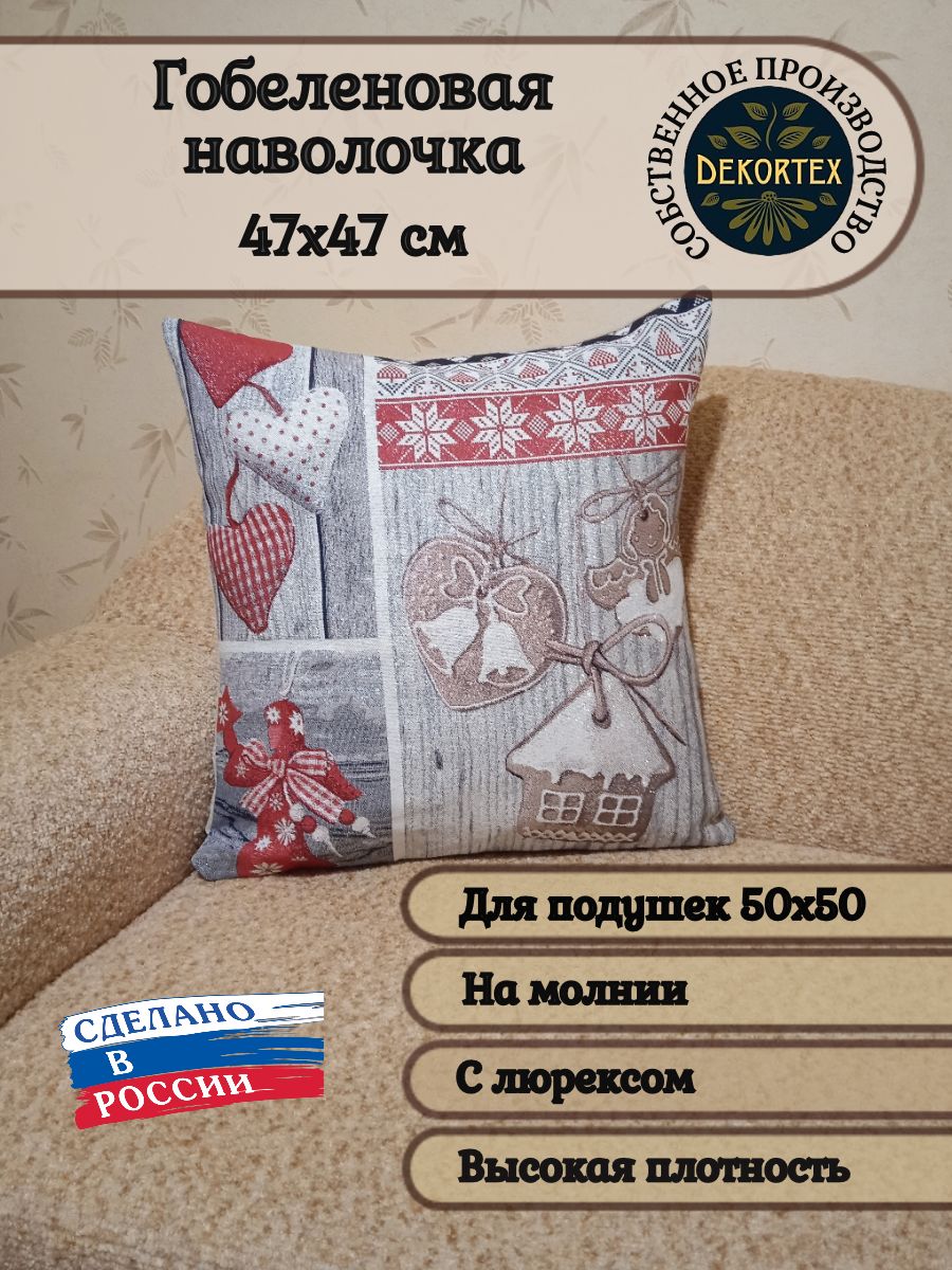 Гобеленовая наволочка для декоративной подушки. Размер наволочки: 47x47см. производство Россия. Изделие собственного производства сшито из отечественной жаккардовой ткани. Задняя часть выполнена из мебельной рогожки так же Российского производства. Все ткани используемые для производства декоративной наволочки производятся с соблюдением ТУ и ГОСТ РФ. Собственное швейное производство позволяет контролировать качество продукции на всех этапах до поступления на склад и предлагать покупателям товары высокого качества по выгодным ценам. Состав ткани 100% полиэстер. Плотность гобелена 380 г/кв.м. Наволочка подходит для подушек размером 50х50 см. Продается без подушки-наполнителя. Подушку-наполнитель так же можно купит у нас. Размер наволочки может отличаться от заявленного +/- 2 см. Допускается деликатная машинная стирка при температуре 30 градусов. Гладить при средней температуре.