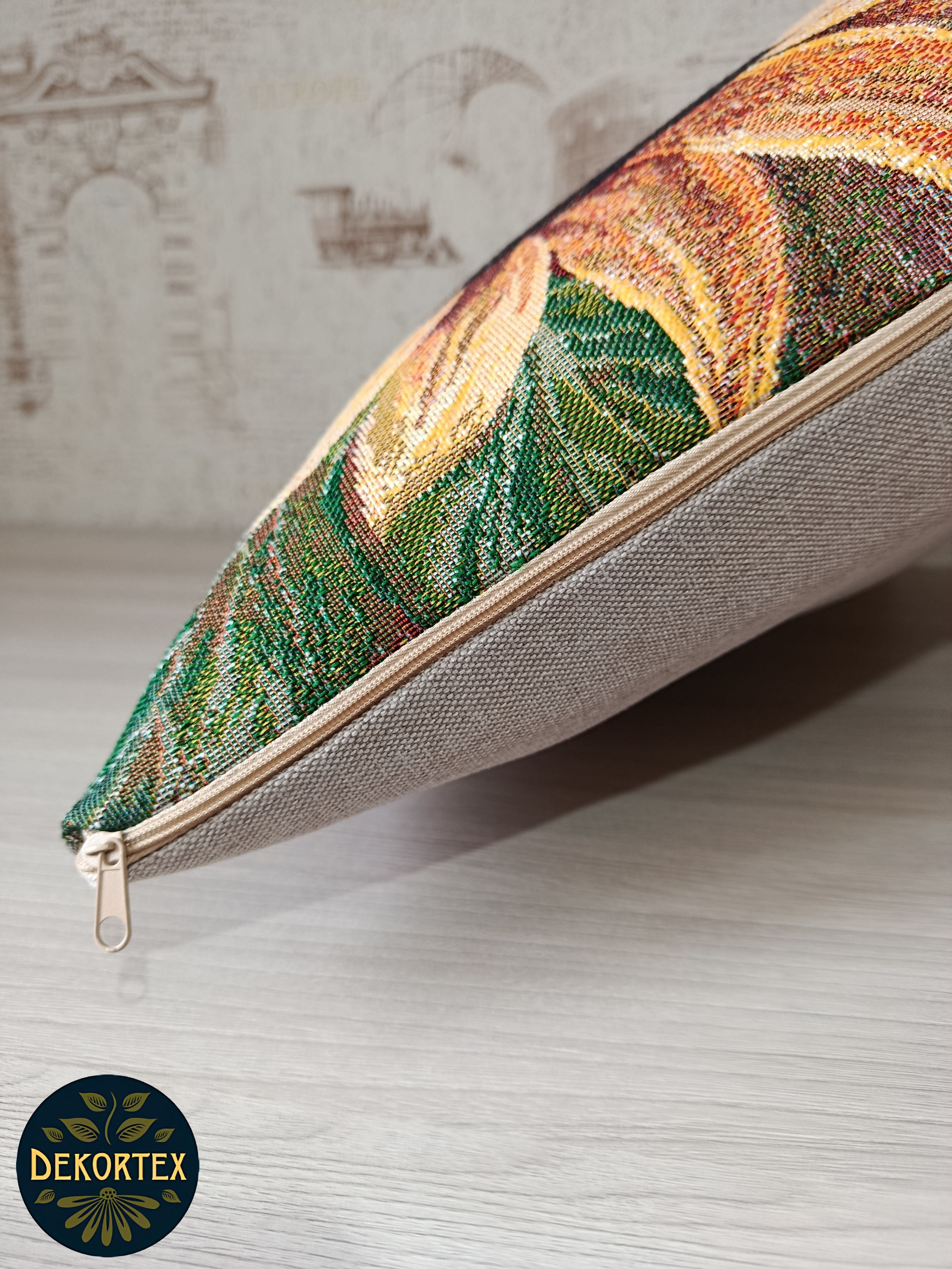 Гобеленовая наволочка для декоративной подушки. Размер наволочки: 47x47см. производство Россия. Изделие собственного производства сшито из отечественной жаккардовой ткани. Задняя часть выполнена из мебельной рогожки так же Российского производства. Все ткани используемые для производства декоративной наволочки производятся с соблюдением ТУ и ГОСТ РФ. Собственное швейное производство позволяет контролировать качество продукции на всех этапах до поступления на склад и предлагать покупателям товары высокого качества по выгодным ценам. Состав ткани 100% полиэстер. Плотность гобелена 380 г/кв.м. Наволочка подходит для подушек размером 50х50 см. Продается без подушки-наполнителя. Подушку-наполнитель так же можно купит у нас. Размер наволочки может отличаться от заявленного +/- 2 см. Допускается деликатная машинная стирка при температуре 30 градусов. Гладить при средней температуре.