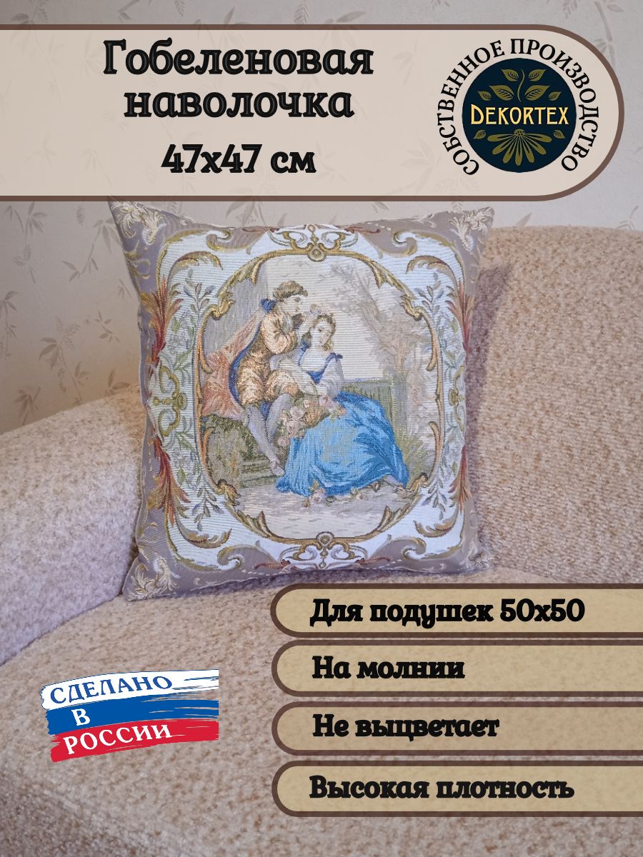 Гобеленовая наволочка для декоративной подушки. Размер наволочки: 47x47см. производство Россия. Изделие собственного производства сшито из отечественной жаккардовой ткани. Задняя часть выполнена из мебельной рогожки так же Российского производства. Все ткани используемые для производства декоративной наволочки производятся с соблюдением ТУ и ГОСТ РФ. Собственное швейное производство позволяет контролировать качество продукции на всех этапах до поступления на склад и предлагать покупателям товары высокого качества по выгодным ценам. Состав ткани 100% полиэстер. Плотность гобелена 380 г/кв.м. Наволочка подходит для подушек размером 50х50 см. Продается без подушки-наполнителя. Подушку-наполнитель так же можно купит у нас. Размер наволочки может отличаться от заявленного +/- 2 см. Допускается деликатная машинная стирка при температуре 30 градусов. Гладить при средней температуре.