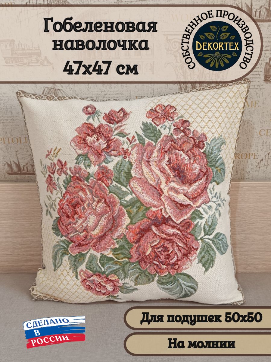Гобеленовая наволочка для декоративной подушки. Размер наволочки: 47x47см. производство Россия. Изделие собственного производства сшито из отечественной жаккардовой ткани. Задняя часть выполнена из мебельной рогожки так же Российского производства. Все ткани используемые для производства декоративной наволочки производятся с соблюдением ТУ и ГОСТ РФ. Собственное швейное производство позволяет контролировать качество продукции на всех этапах до поступления на склад и предлагать покупателям товары высокого качества по выгодным ценам. Состав ткани 100% полиэстер. Плотность гобелена 380 г/кв.м. Наволочка подходит для подушек размером 50х50 см. Продается без подушки-наполнителя. Подушку-наполнитель так же можно купит у нас. Размер наволочки может отличаться от заявленного +/- 2 см. Допускается деликатная машинная стирка при температуре 30 градусов. Гладить при средней температуре.