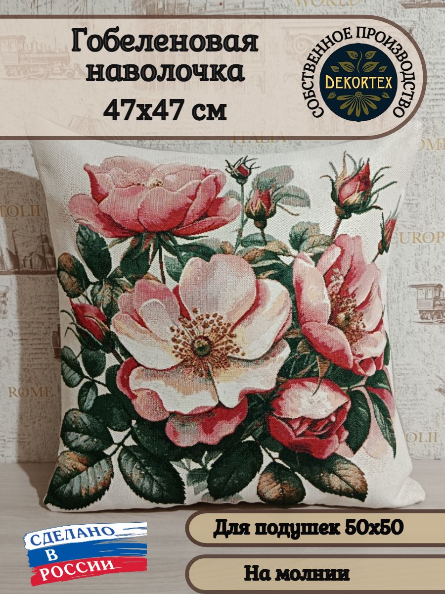 Гобеленовая наволочка для декоративной подушки. Размер наволочки: 47x47см. производство Россия. Изделие собственного производства сшито из отечественной жаккардовой ткани. Задняя часть выполнена из мебельной рогожки так же Российского производства. Все ткани используемые для производства декоративной наволочки производятся с соблюдением ТУ и ГОСТ РФ. Собственное швейное производство позволяет контролировать качество продукции на всех этапах до поступления на склад и предлагать покупателям товары высокого качества по выгодным ценам. Состав ткани 100% полиэстер. Плотность гобелена 380 г/кв.м. Наволочка подходит для подушек размером 50х50 см. Продается без подушки-наполнителя. Подушку-наполнитель так же можно купит у нас. Размер наволочки может отличаться от заявленного +/- 2 см. Допускается деликатная машинная стирка при температуре 30 градусов. Гладить при средней температуре.