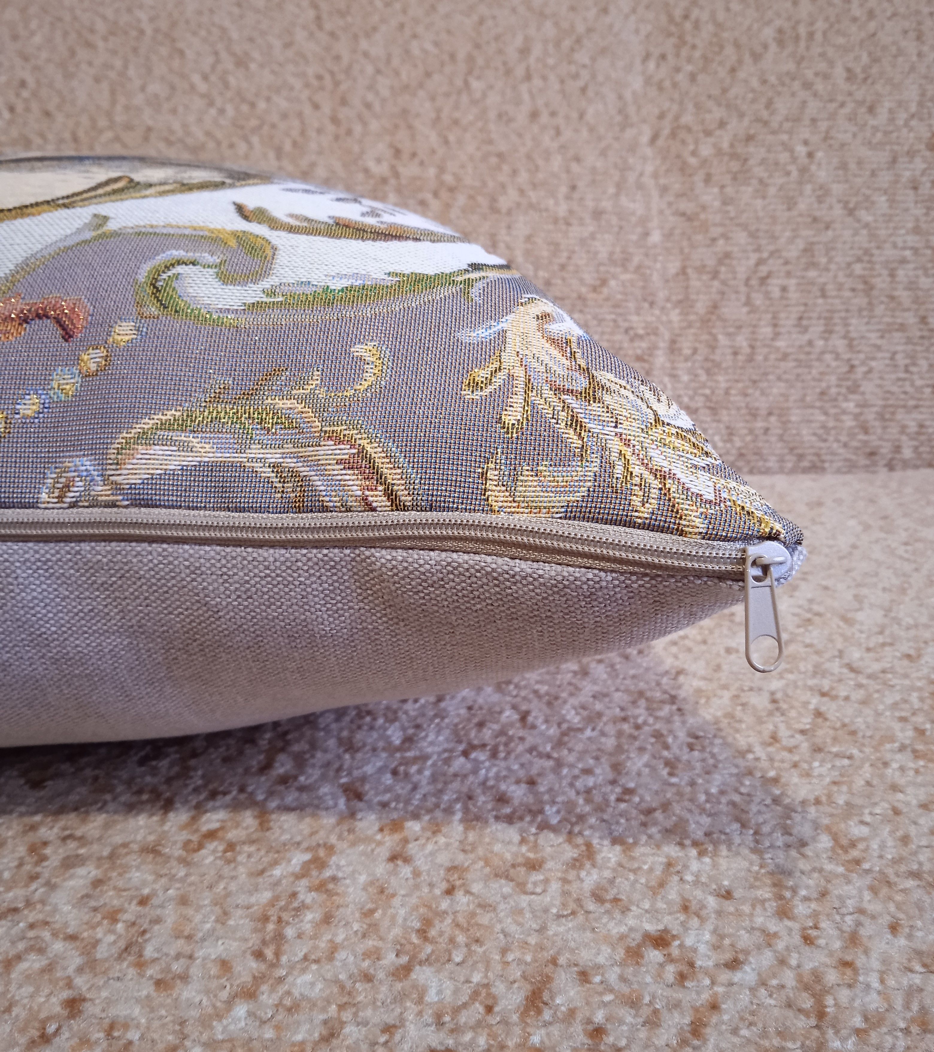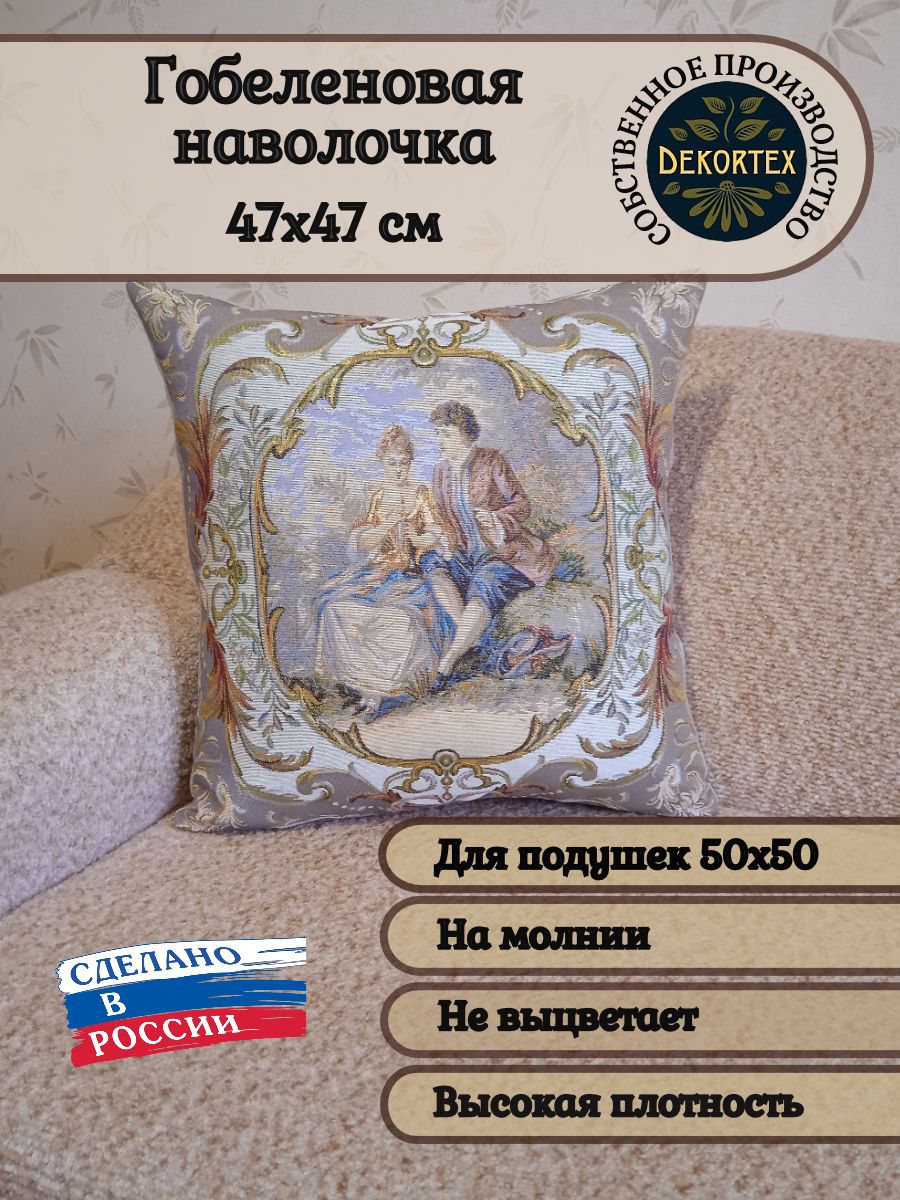 Гобеленовая наволочка для декоративной подушки. Размер наволочки: 47x47см. производство Россия. Изделие собственного производства сшито из отечественной жаккардовой ткани. Задняя часть выполнена из мебельной рогожки так же Российского производства. Все ткани используемые для производства декоративной наволочки производятся с соблюдением ТУ и ГОСТ РФ. Собственное швейное производство позволяет контролировать качество продукции на всех этапах до поступления на склад и предлагать покупателям товары высокого качества по выгодным ценам. Состав ткани 100% полиэстер. Плотность гобелена 380 г/кв.м. Наволочка подходит для подушек размером 50х50 см. Продается без подушки-наполнителя. Подушку-наполнитель так же можно купит у нас. Размер наволочки может отличаться от заявленного +/- 2 см. Допускается деликатная машинная стирка при температуре 30 градусов. Гладить при средней температуре.