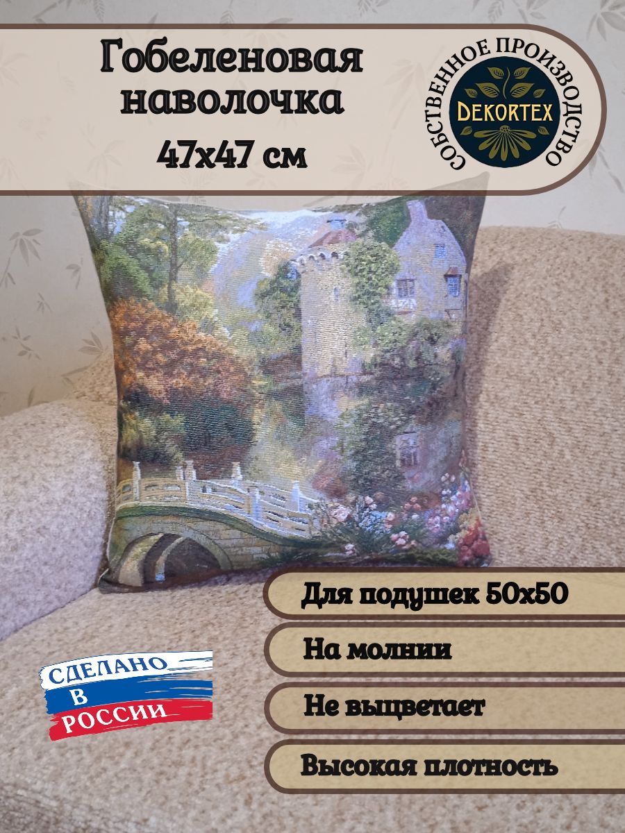 Гобеленовая наволочка для декоративной подушки. Размер наволочки: 47x47см. производство Россия. Изделие собственного производства сшито из отечественной жаккардовой ткани. Задняя часть выполнена из мебельной рогожки так же Российского производства. Все ткани используемые для производства декоративной наволочки производятся с соблюдением ТУ и ГОСТ РФ. Собственное швейное производство позволяет контролировать качество продукции на всех этапах до поступления на склад и предлагать покупателям товары высокого качества по выгодным ценам. Состав ткани 100% полиэстер. Плотность гобелена 380 г/кв.м. Наволочка подходит для подушек размером 50х50 см. Продается без подушки-наполнителя. Подушку-наполнитель так же можно купит у нас. Размер наволочки может отличаться от заявленного +/- 2 см. Допускается деликатная машинная стирка при температуре 30 градусов. Гладить при средней температуре.