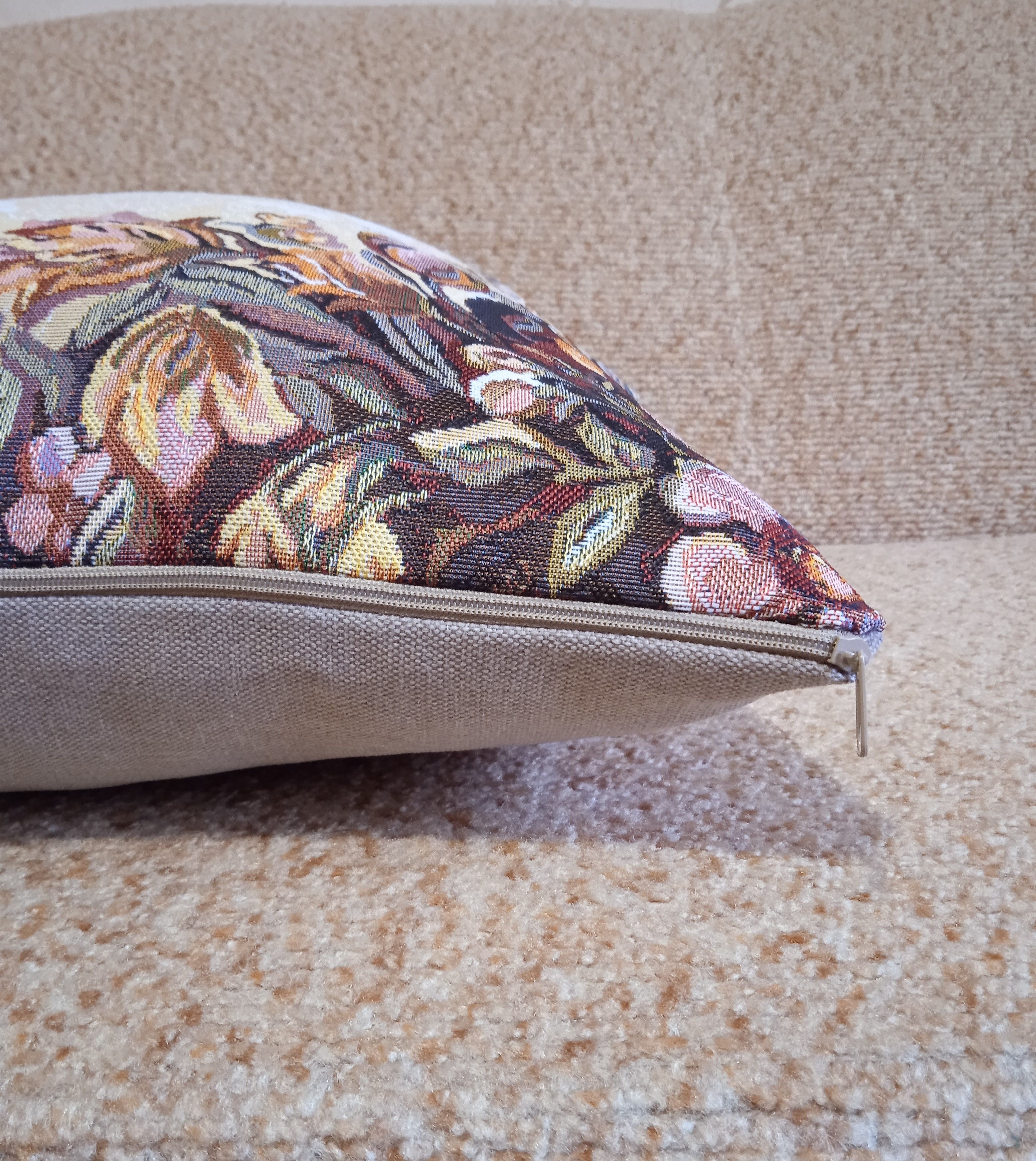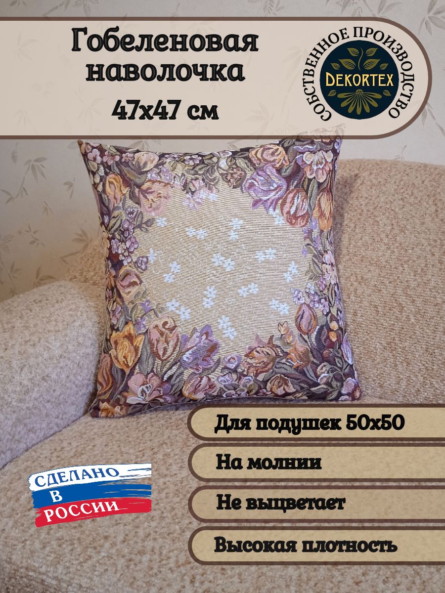 Гобеленовая наволочка для декоративной подушки. Размер наволочки: 47x47см. производство Россия. Изделие собственного производства сшито из отечественной жаккардовой ткани. Задняя часть выполнена из мебельной рогожки так же Российского производства. Все ткани используемые для производства декоративной наволочки производятся с соблюдением ТУ и ГОСТ РФ. Собственное швейное производство позволяет контролировать качество продукции на всех этапах до поступления на склад и предлагать покупателям товары высокого качества по выгодным ценам. Состав ткани 100% полиэстер. Плотность гобелена 380 г/кв.м. Наволочка подходит для подушек размером 50х50 см. Продается без подушки-наполнителя. Подушку-наполнитель так же можно купит у нас. Размер наволочки может отличаться от заявленного +/- 2 см. Допускается деликатная машинная стирка при температуре 30 градусов. Гладить при средней температуре.