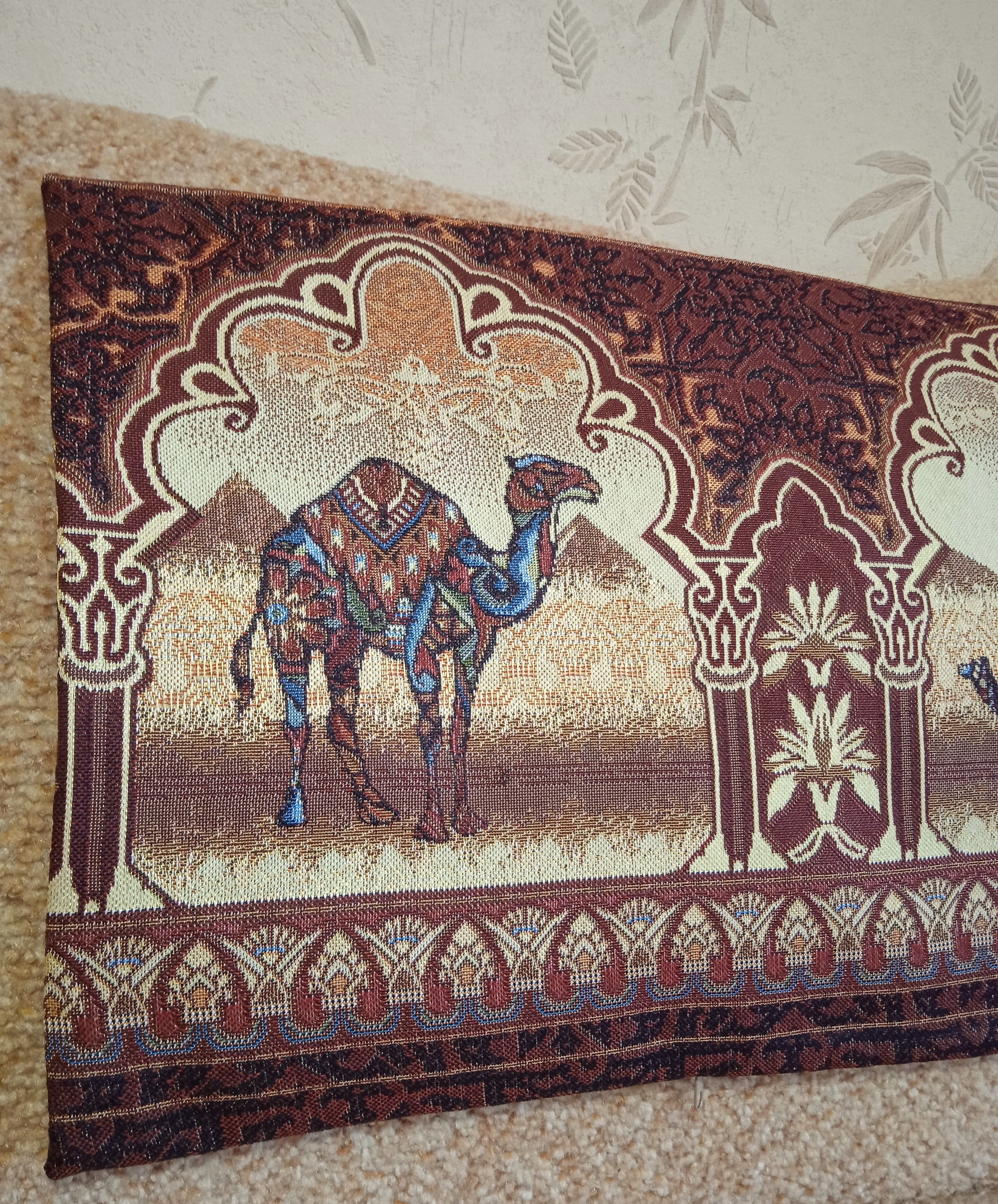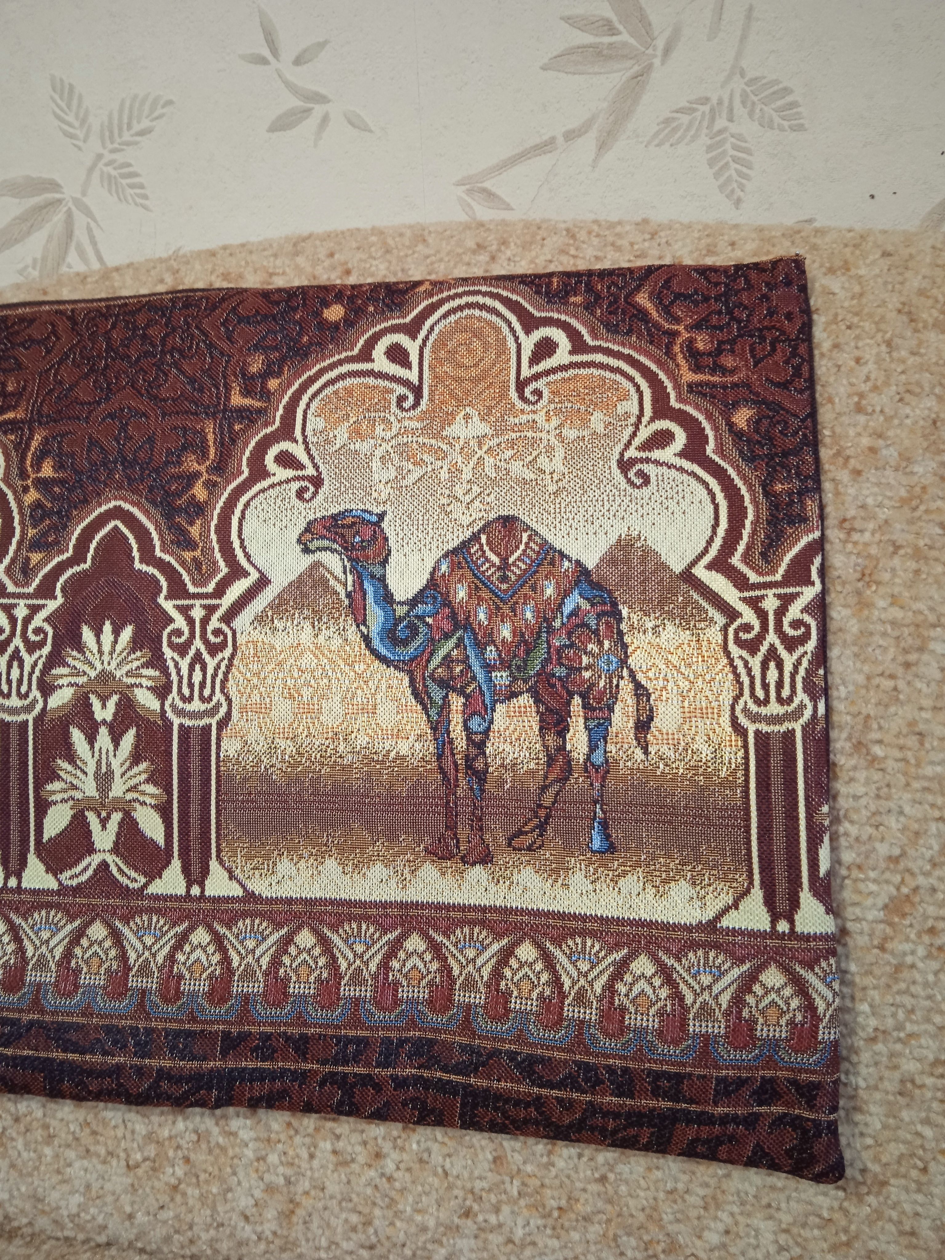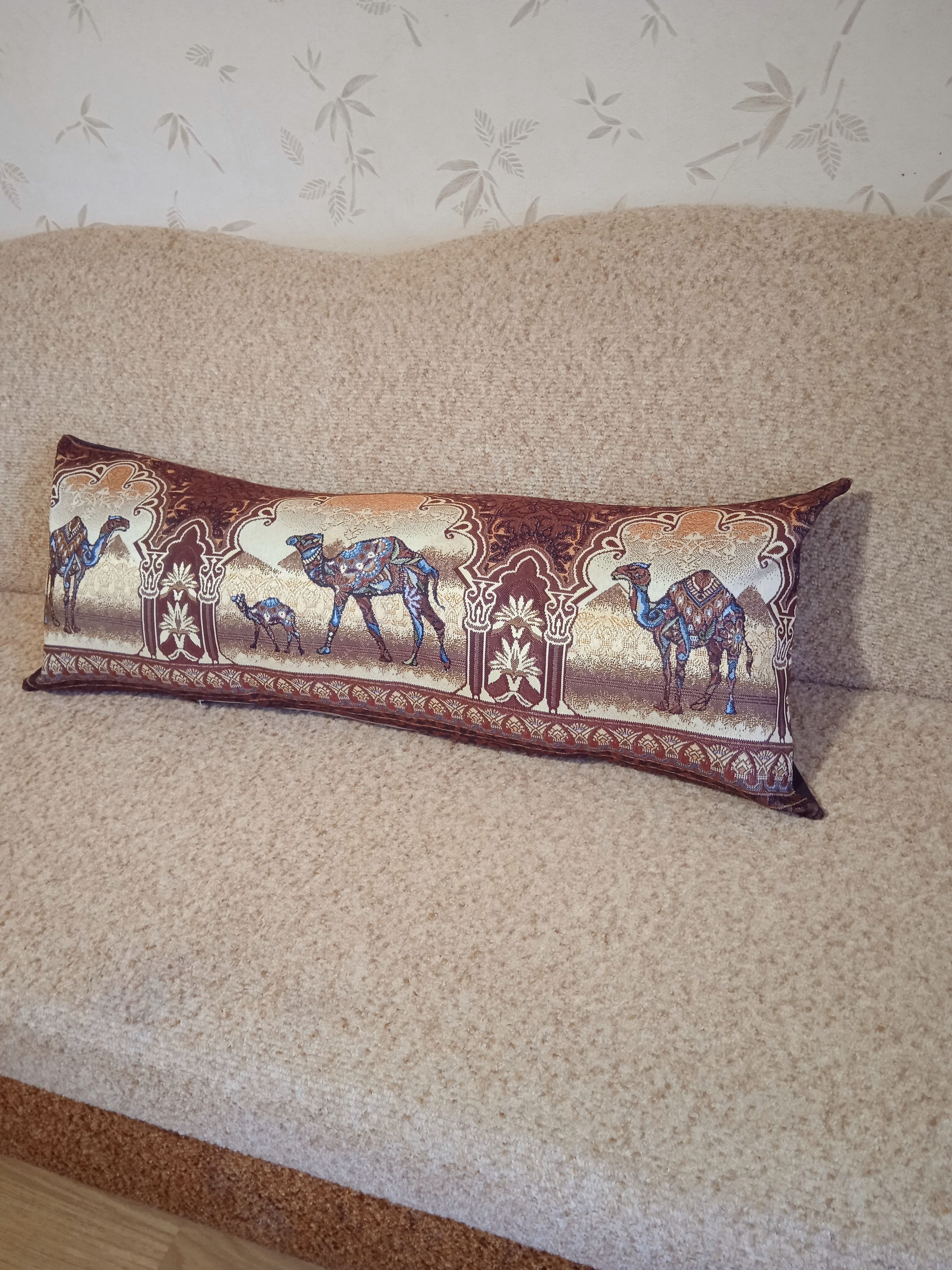 Гобеленовая декоративная наволочка с изображением верблюдов в индийском стиле подойдет для оформления домашнего интерьера в Новогодние праздники. Можно использовать для украшения гостиной, спальни, детской комнаты, кафе, отеля, гостиницы. Можно использовать как дополнительные подушки на диван, кресло, кровать, дачная лавка на веранде. Отличный подарок или сувенир для родных и близких, друзей, коллег по работе, маме, бабушке, теще, тете, сестре, сослуживцам на новый год, новоселье, день рождения, корпоративный подарок, 8 марта.