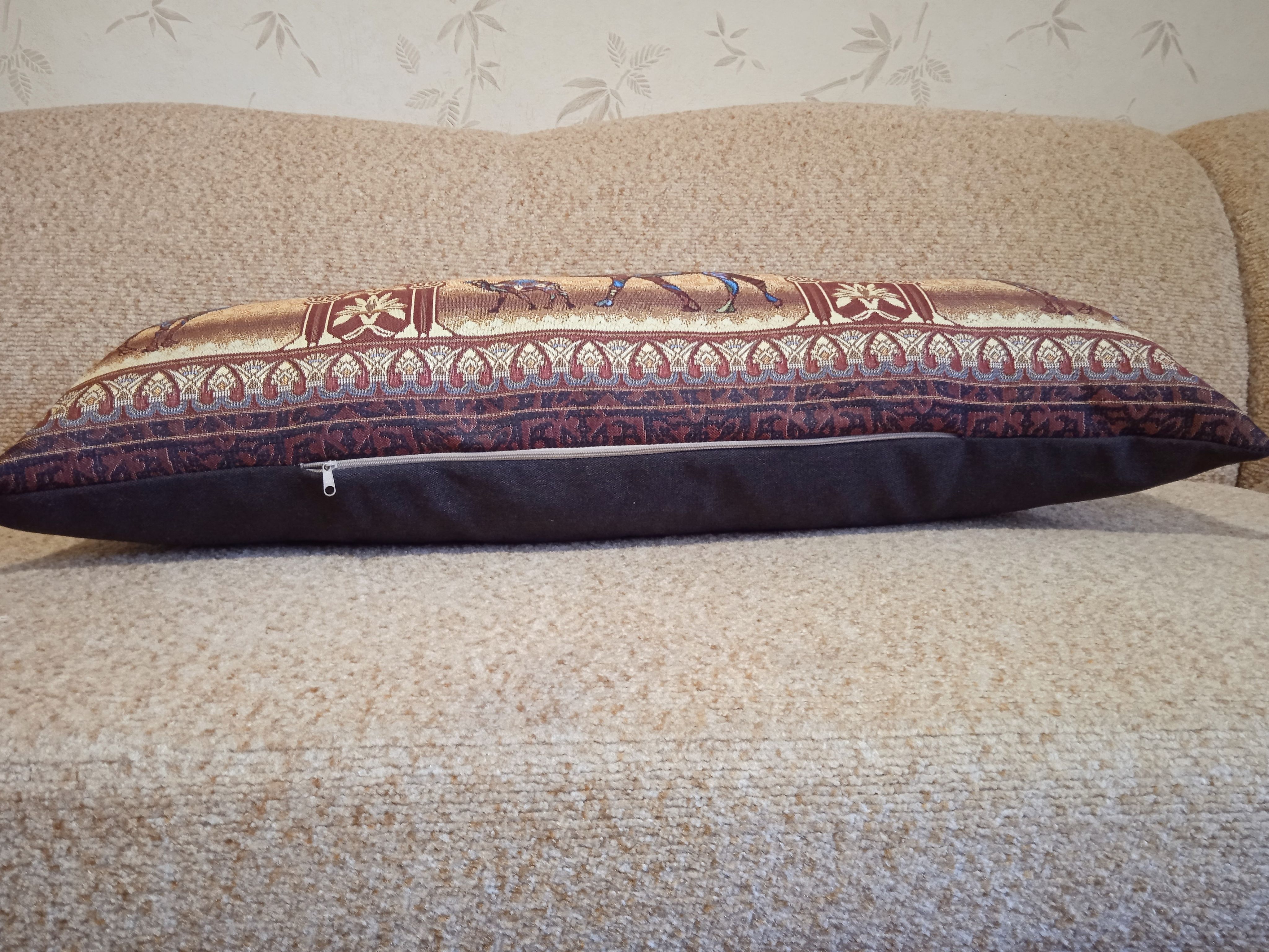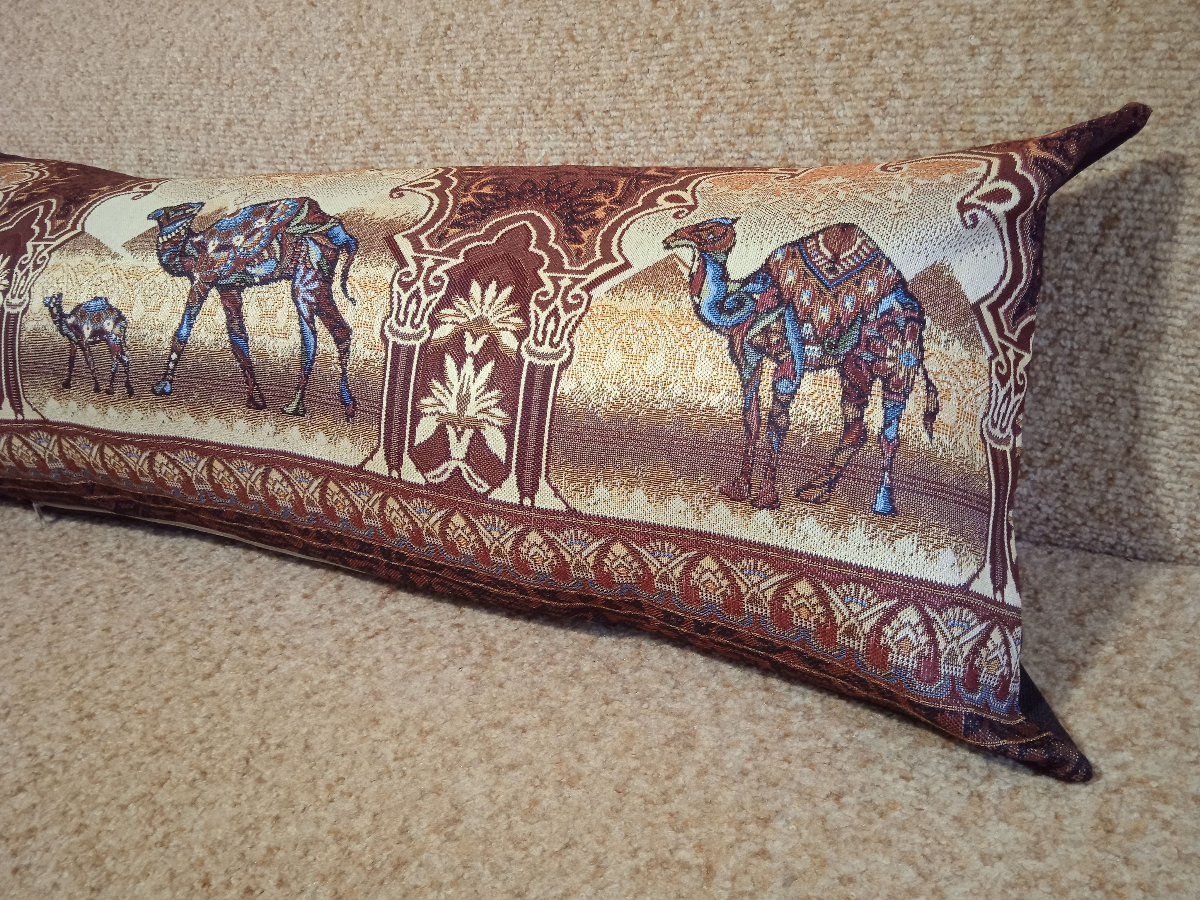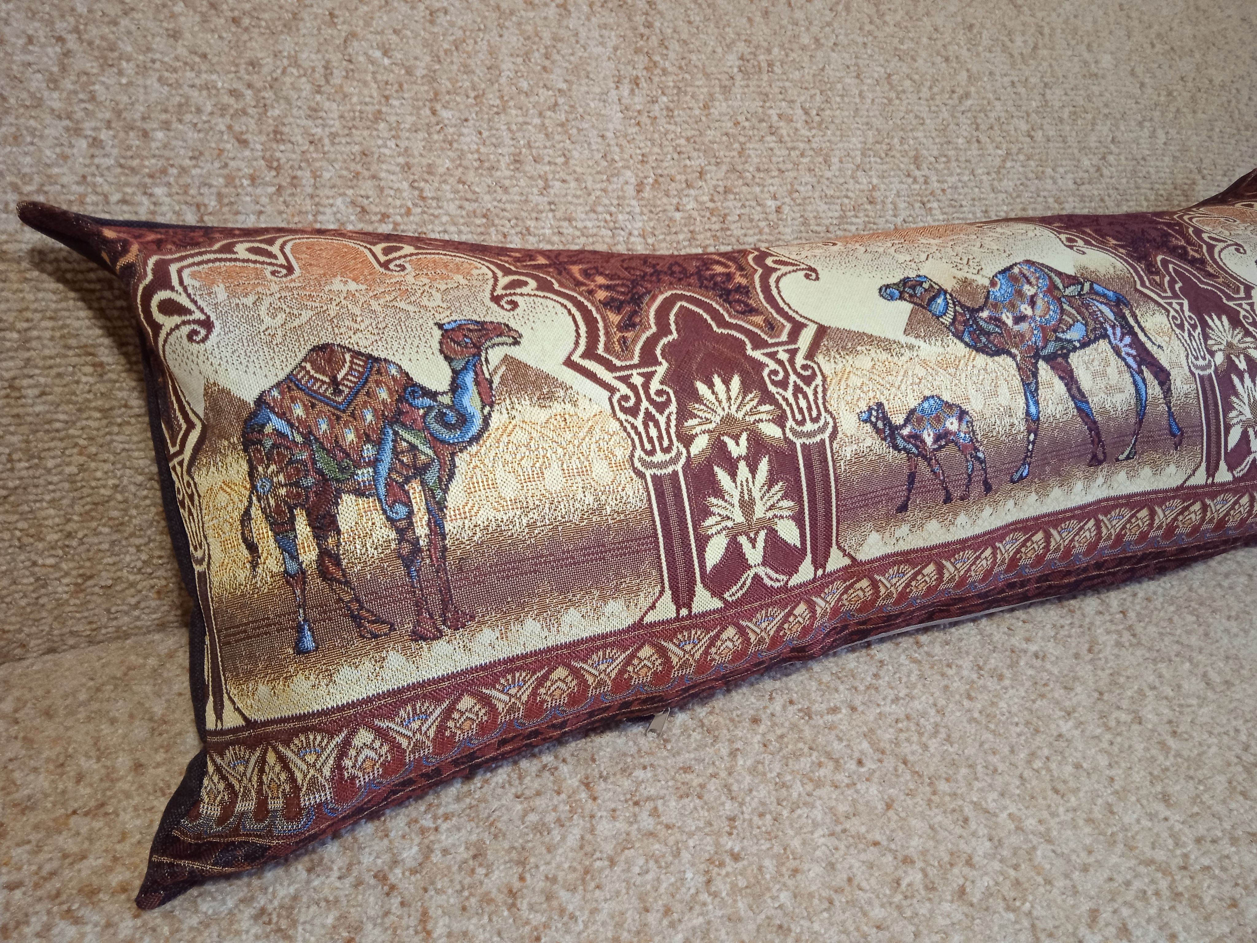 Гобеленовая декоративная наволочка с изображением верблюдов в индийском стиле подойдет для оформления домашнего интерьера в Новогодние праздники. Можно использовать для украшения гостиной, спальни, детской комнаты, кафе, отеля, гостиницы. Можно использовать как дополнительные подушки на диван, кресло, кровать, дачная лавка на веранде. Отличный подарок или сувенир для родных и близких, друзей, коллег по работе, маме, бабушке, теще, тете, сестре, сослуживцам на новый год, новоселье, день рождения, корпоративный подарок, 8 марта.