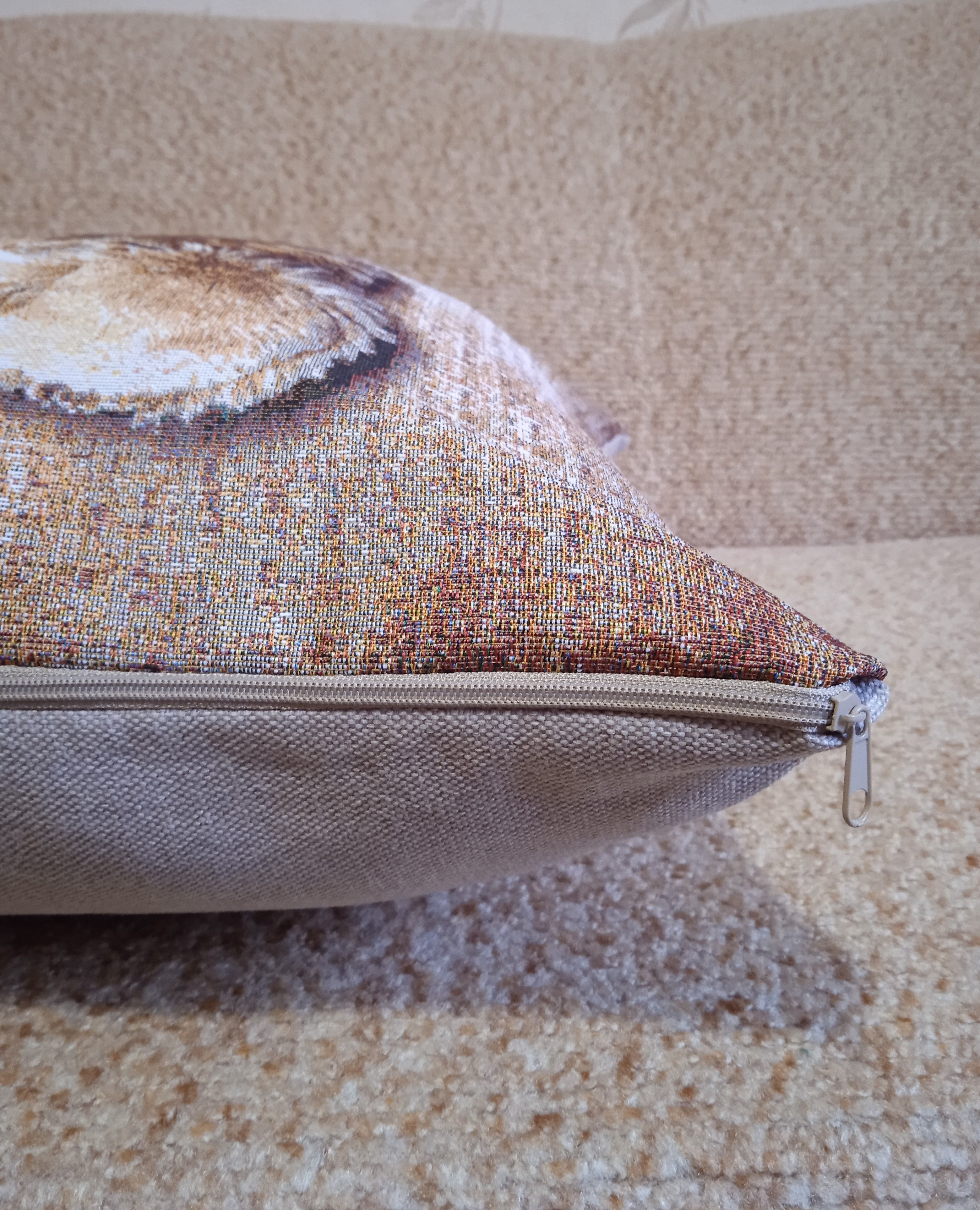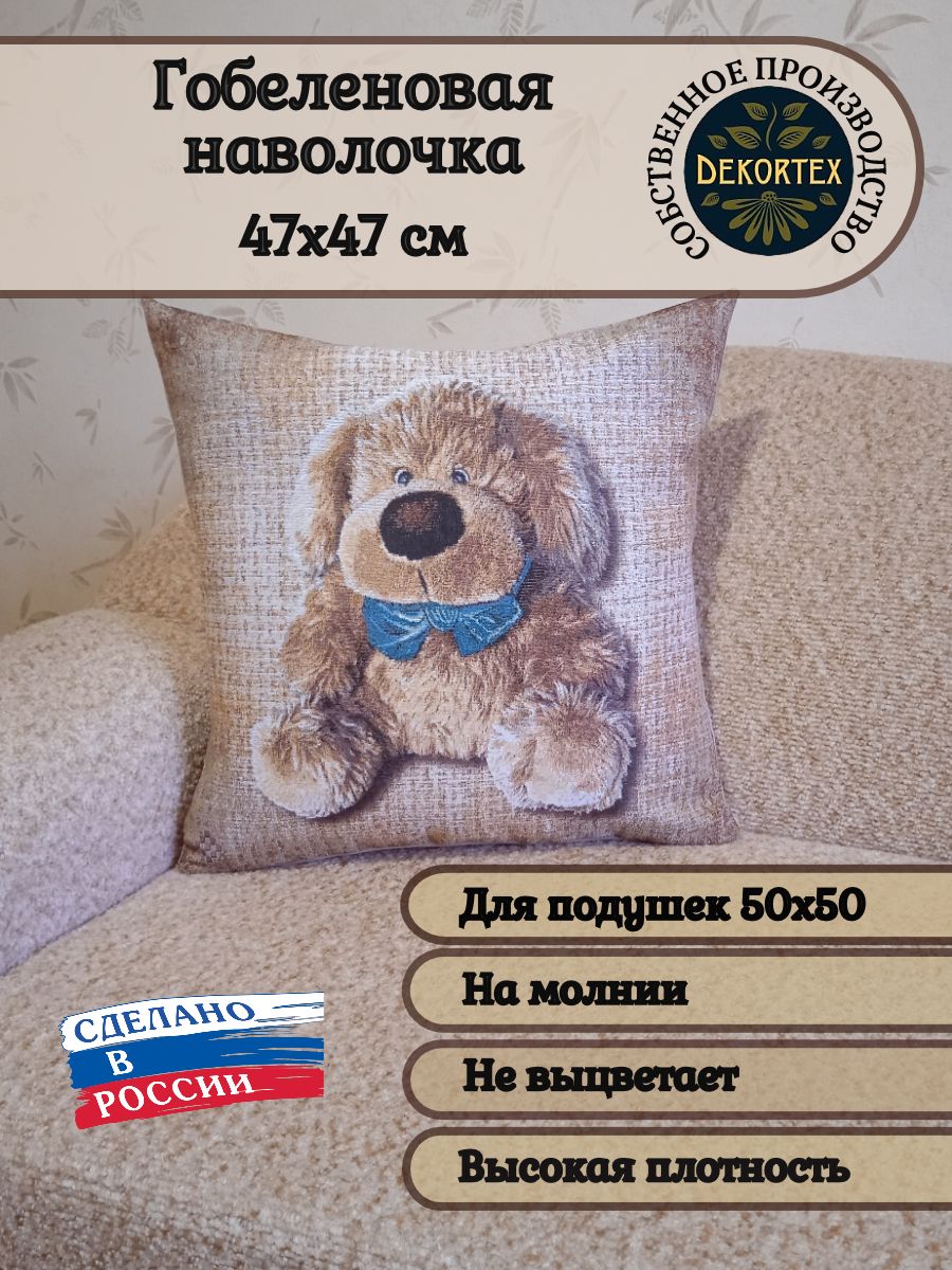 Гобеленовая наволочка для декоративной подушки. Размер наволочки: 47x47см. производство Россия. Изделие собственного производства сшито из отечественной жаккардовой ткани. Задняя часть выполнена из мебельной рогожки так же Российского производства. Все ткани используемые для производства декоративной наволочки производятся с соблюдением ТУ и ГОСТ РФ. Собственное швейное производство позволяет контролировать качество продукции на всех этапах до поступления на склад и предлагать покупателям товары высокого качества по выгодным ценам. Состав ткани 100% полиэстер. Плотность гобелена 380 г/кв.м. Наволочка подходит для подушек размером 50х50 см. Продается без подушки-наполнителя. Подушку-наполнитель так же можно купит у нас. Размер наволочки может отличаться от заявленного +/- 2 см. Допускается деликатная машинная стирка при температуре 30 градусов. Гладить при средней температуре.