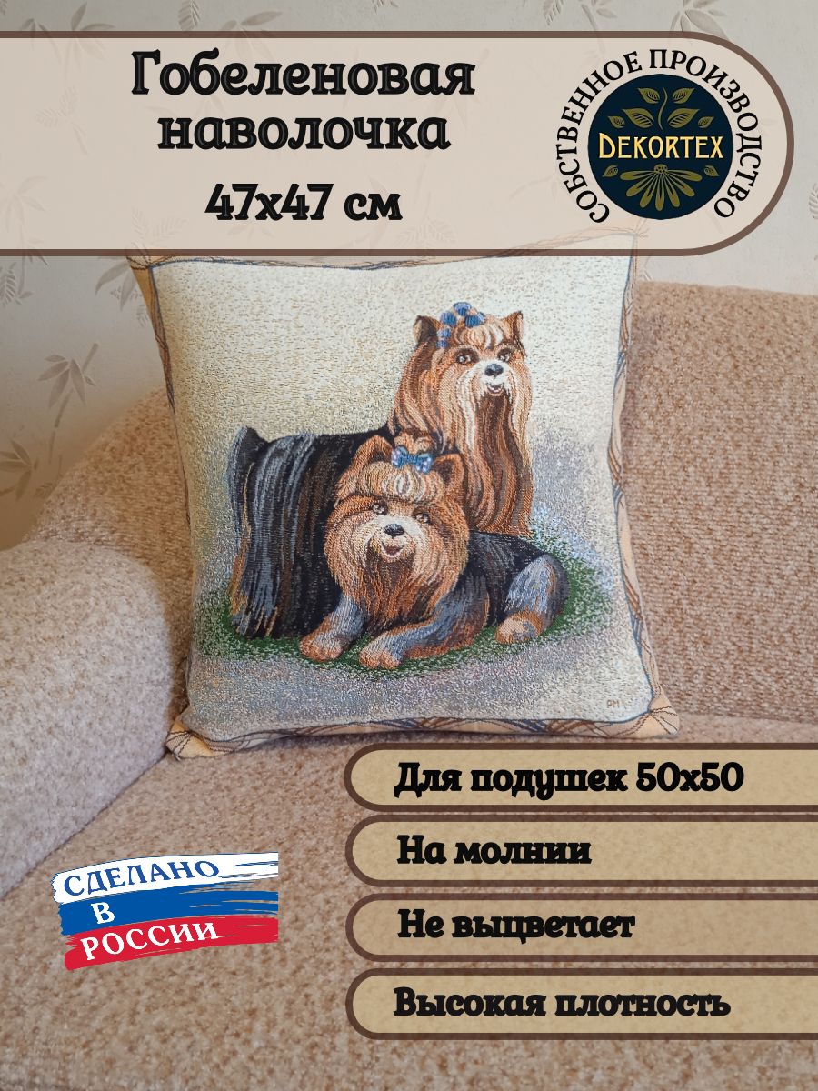 Гобеленовая наволочка для декоративной подушки. Размер наволочки: 47x47см. производство Россия. Изделие собственного производства сшито из отечественной жаккардовой ткани. Задняя часть выполнена из мебельной рогожки так же Российского производства. Все ткани используемые для производства декоративной наволочки производятся с соблюдением ТУ и ГОСТ РФ. Собственное швейное производство позволяет контролировать качество продукции на всех этапах до поступления на склад и предлагать покупателям товары высокого качества по выгодным ценам. Состав ткани 100% полиэстер. Плотность гобелена 380 г/кв.м. Наволочка подходит для подушек размером 50х50 см. Продается без подушки-наполнителя. Подушку-наполнитель так же можно купит у нас. Размер наволочки может отличаться от заявленного +/- 2 см. Допускается деликатная машинная стирка при температуре 30 градусов. Гладить при средней температуре.