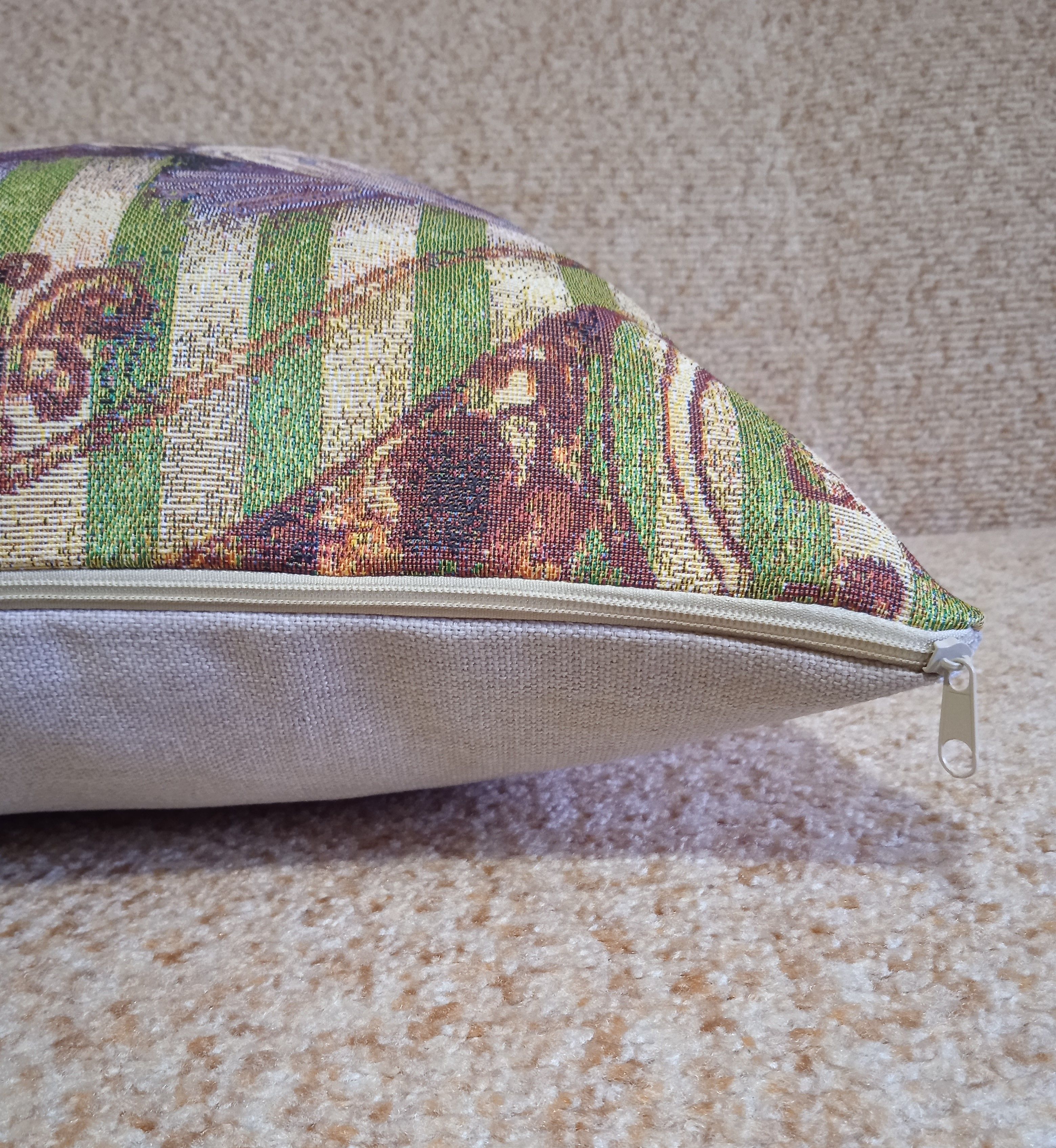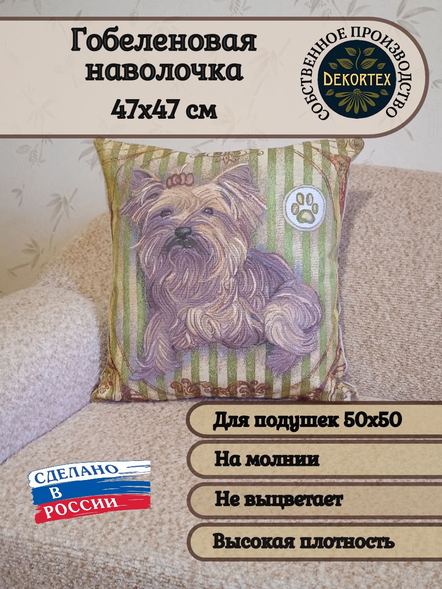 Гобеленовая наволочка для декоративной подушки. Размер наволочки: 47x47см. производство Россия. Изделие собственного производства сшито из отечественной жаккардовой ткани. Задняя часть выполнена из мебельной рогожки так же Российского производства. Все ткани используемые для производства декоративной наволочки производятся с соблюдением ТУ и ГОСТ РФ. Собственное швейное производство позволяет контролировать качество продукции на всех этапах до поступления на склад и предлагать покупателям товары высокого качества по выгодным ценам. Состав ткани 100% полиэстер. Плотность гобелена 380 г/кв.м. Наволочка подходит для подушек размером 50х50 см. Продается без подушки-наполнителя. Подушку-наполнитель так же можно купит у нас. Размер наволочки может отличаться от заявленного +/- 2 см. Допускается деликатная машинная стирка при температуре 30 градусов. Гладить при средней температуре.